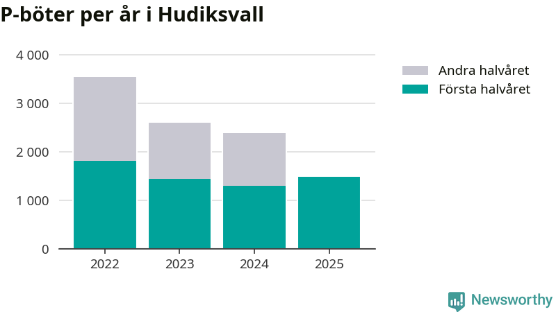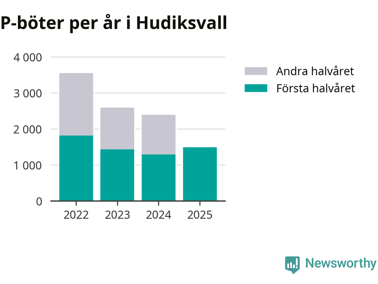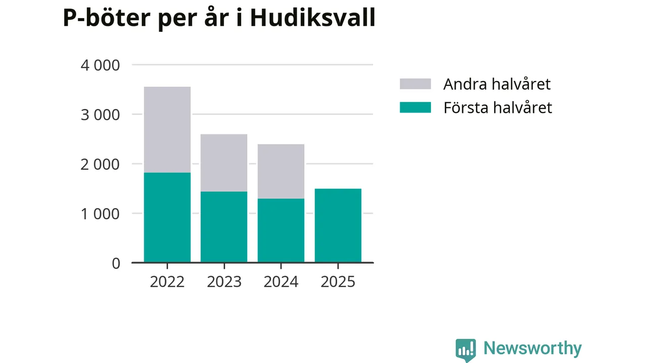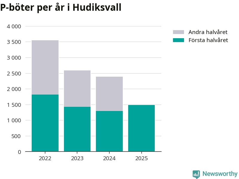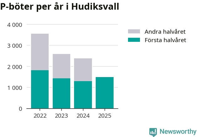 Under första halvåret 2025 har 1 488 parkeringsanmärkningar, med en total felparkeringsavgift på omkring 1,3 miljoner kronor, delats ut på gatumark i Hudiksvalls kommun. Det är 193 fler än under första halvåret 2024.