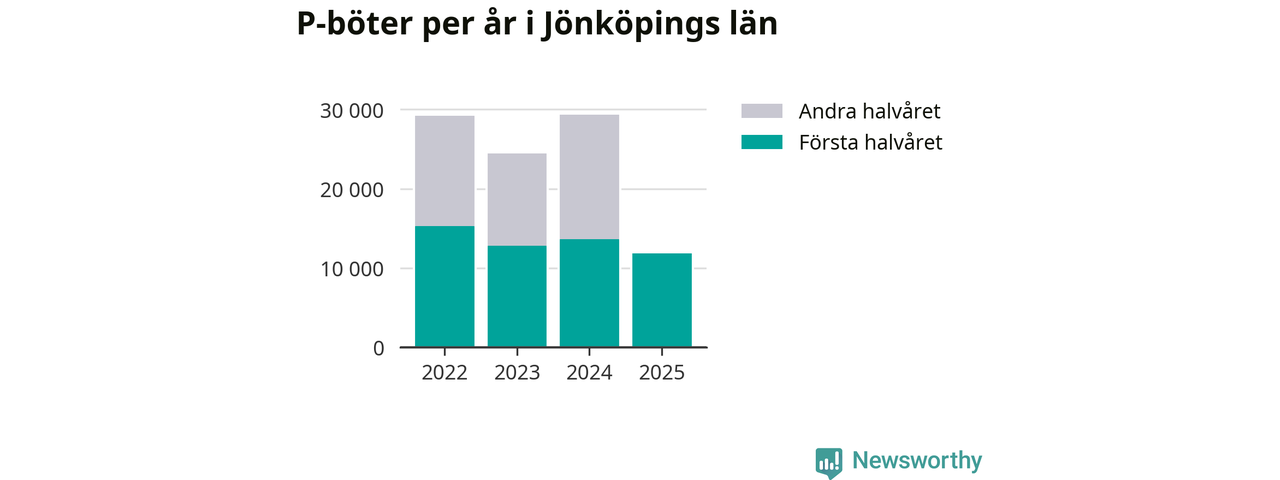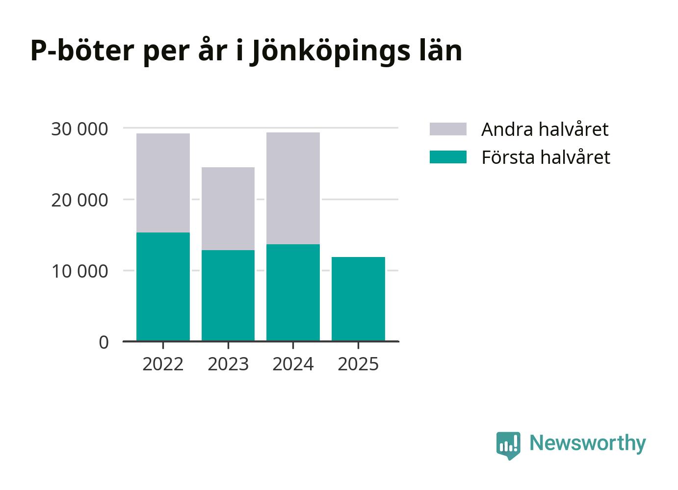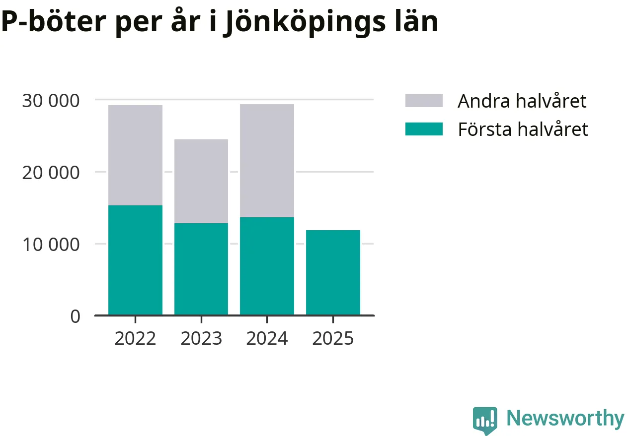 Totalt, från 1 januari 2022 till och med juni 2025, rör det sig om 94 888 parkeringsförsyndelser med ett totalt bötesbelopp på omkring 68,7 miljoner kronor i länet, visar Newsworthys genomgång av kommunernas parkeringsanmärkningar i Transportstyrelsens databas. Flest parkeringsanmärkningar i Jönköpings län har delats ut i Jönköpings kommun under de senaste tre och ett halvt åren.
