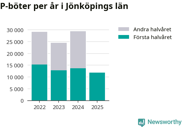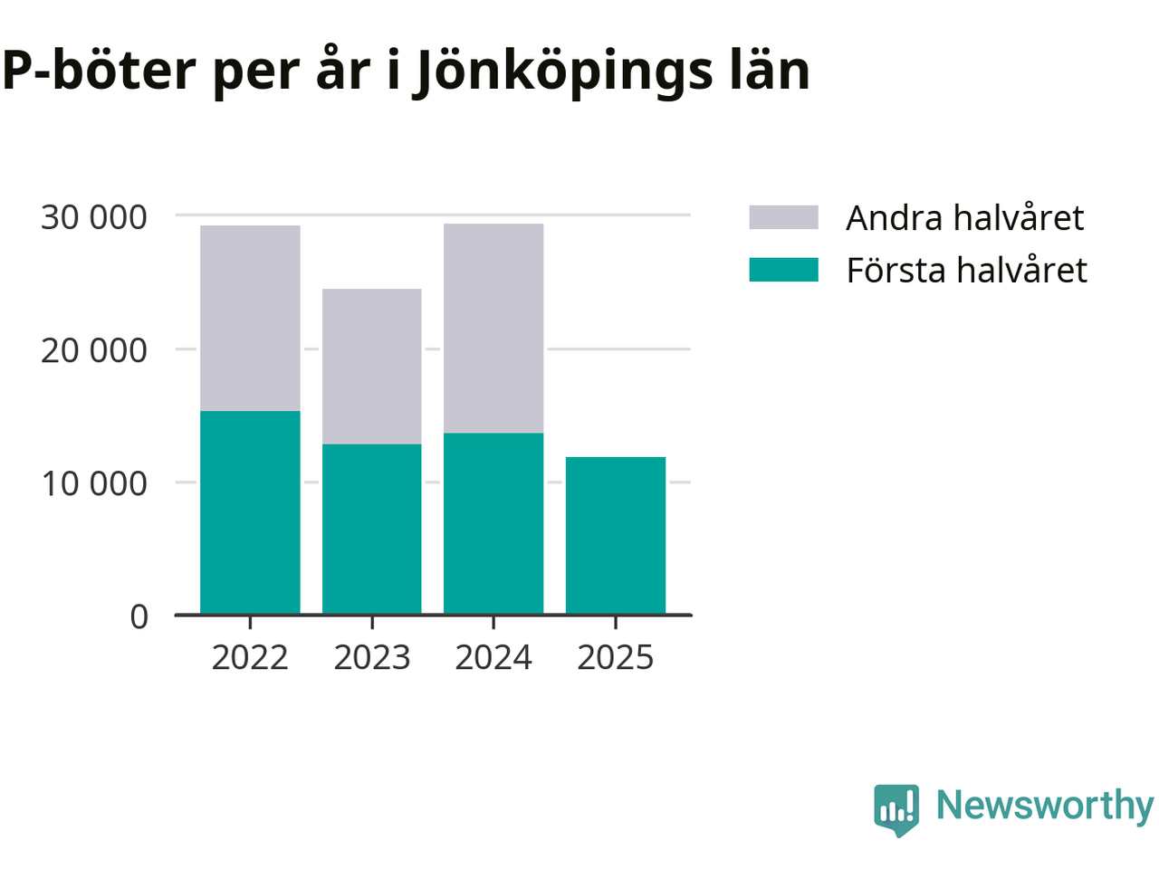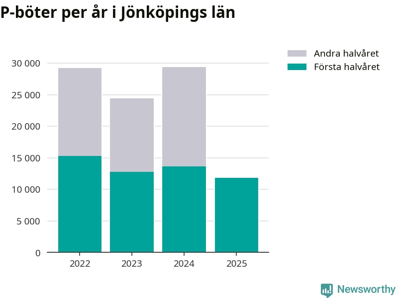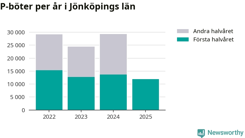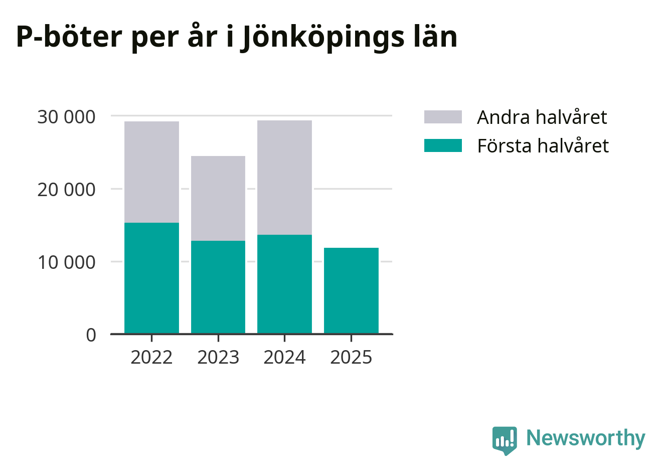 Totalt, från 1 januari 2022 till och med juni 2025, rör det sig om 94 888 parkeringsförsyndelser med ett totalt bötesbelopp på omkring 68,7 miljoner kronor i länet, visar Newsworthys genomgång av kommunernas parkeringsanmärkningar i Transportstyrelsens databas. Flest parkeringsanmärkningar i Jönköpings län har delats ut i Jönköpings kommun under de senaste tre och ett halvt åren.