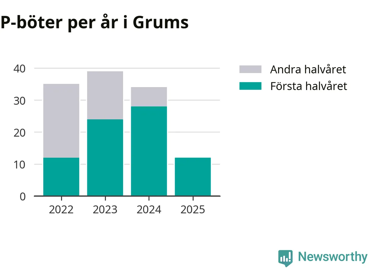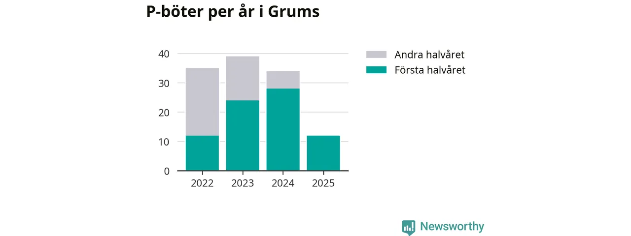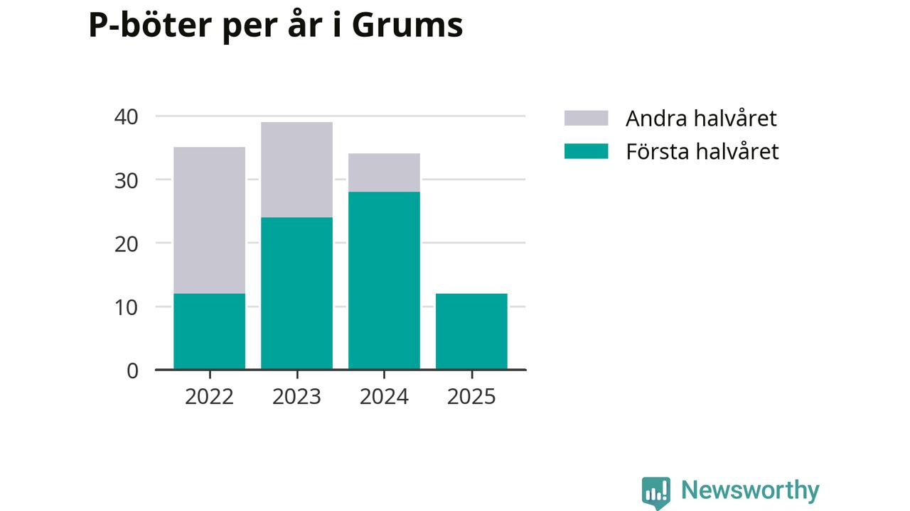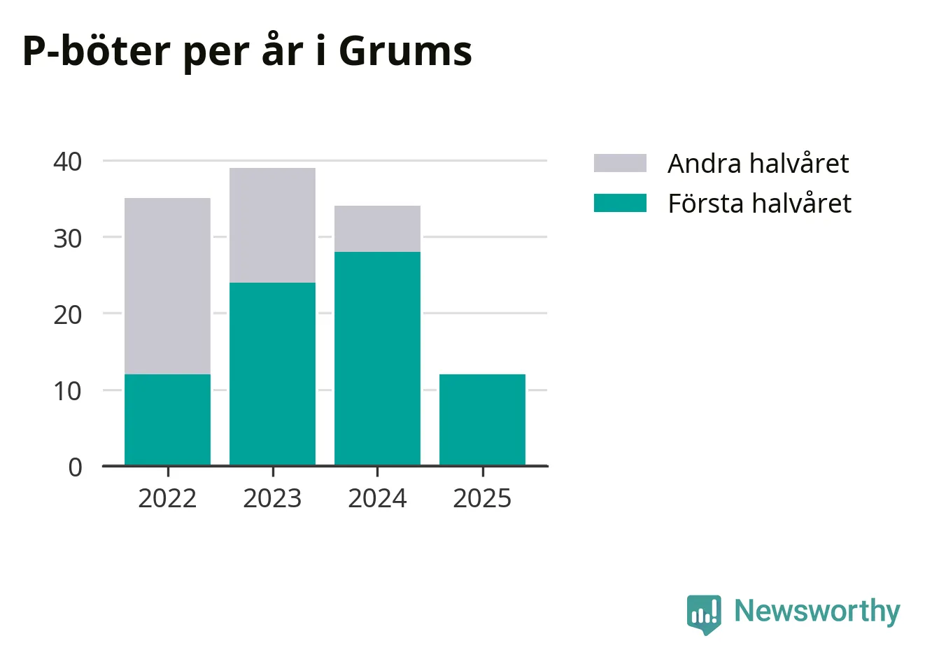 Under första halvåret 2025 har tolv parkeringsanmärkningar, med en total felparkeringsavgift på 6 000 kronor, delats ut på gatumark i Grums kommun. Det är 16 färre än under första halvåret 2024.