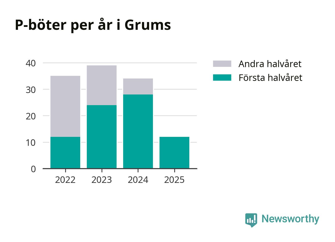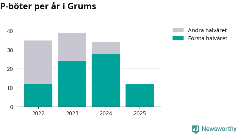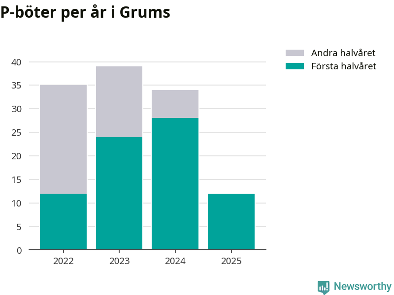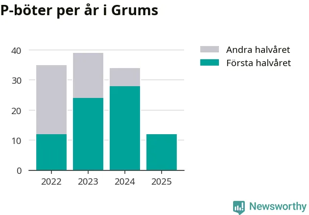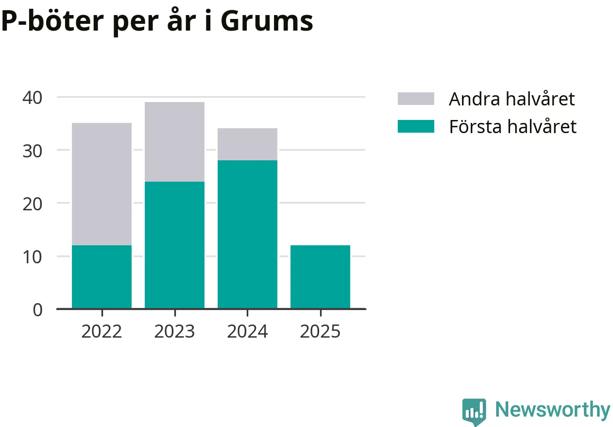 Under första halvåret 2025 har tolv parkeringsanmärkningar, med en total felparkeringsavgift på 6 000 kronor, delats ut på gatumark i Grums kommun. Det är 16 färre än under första halvåret 2024.
