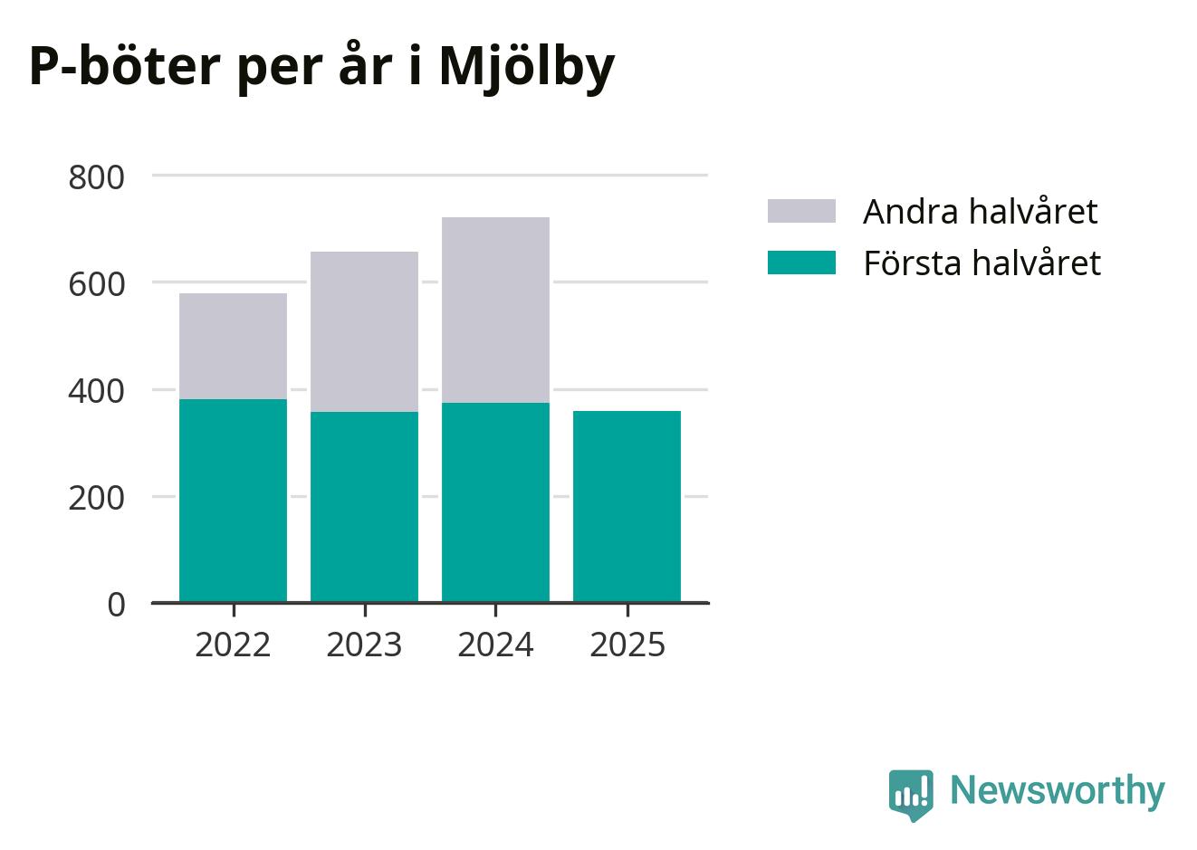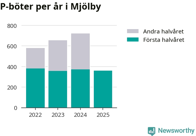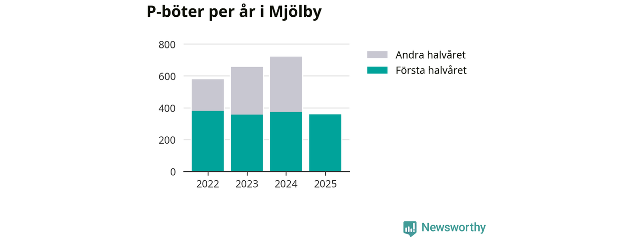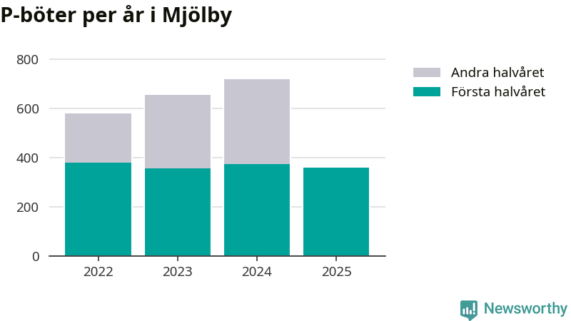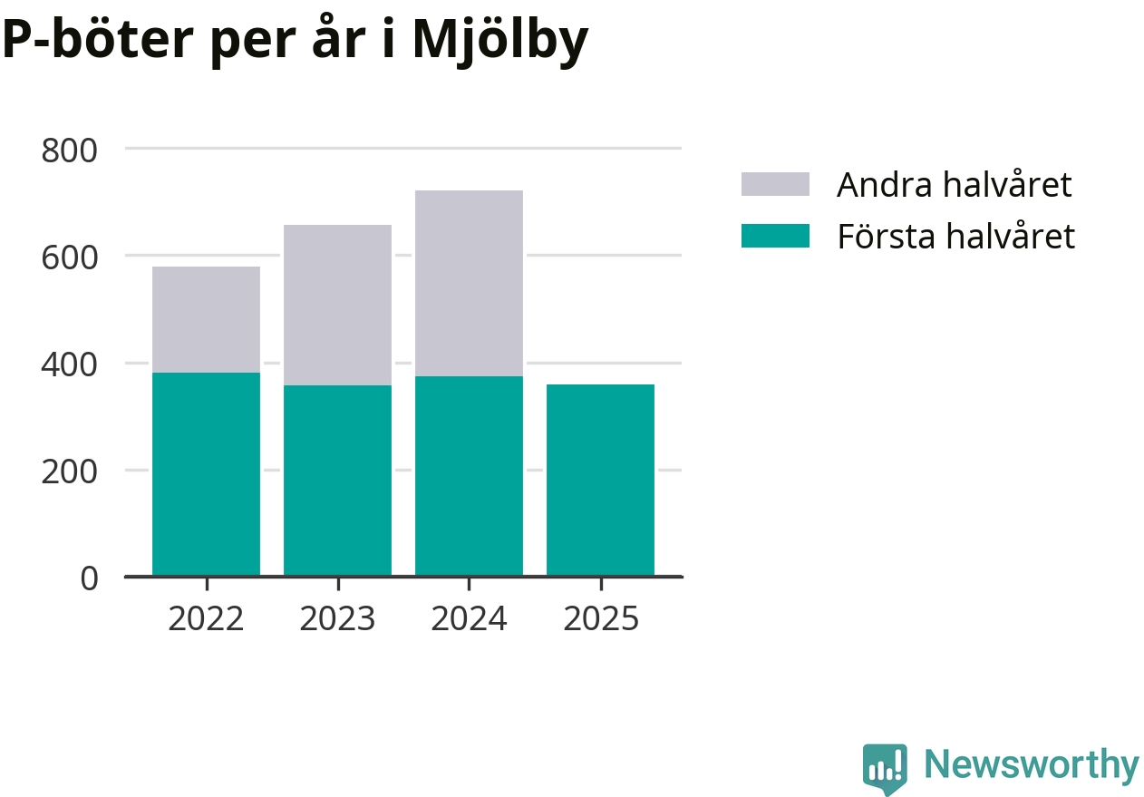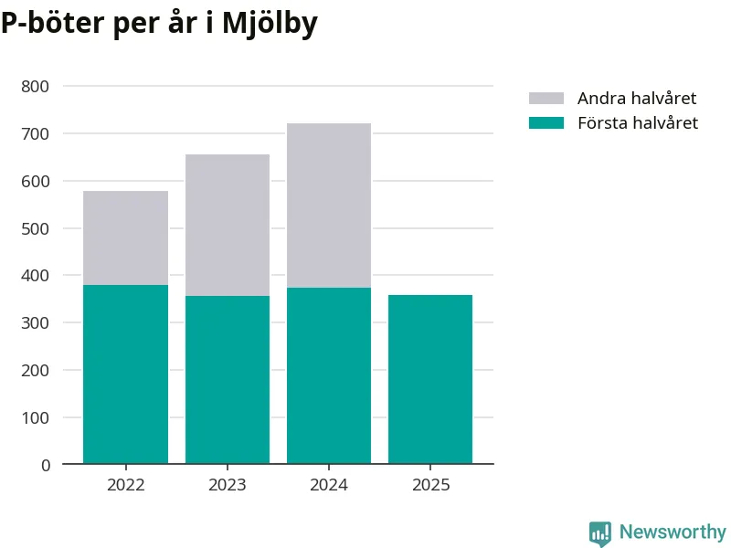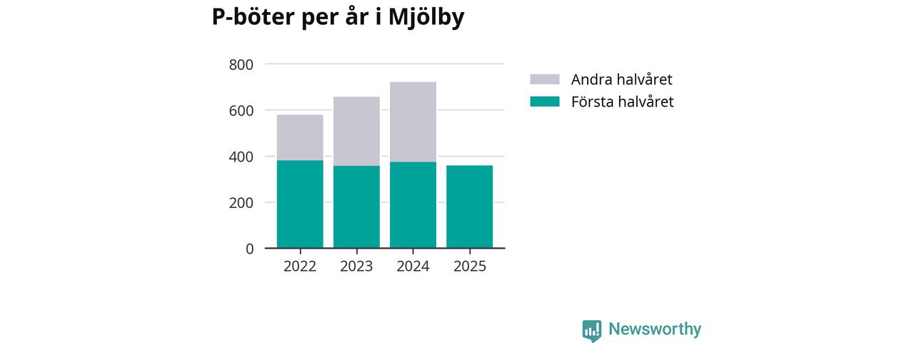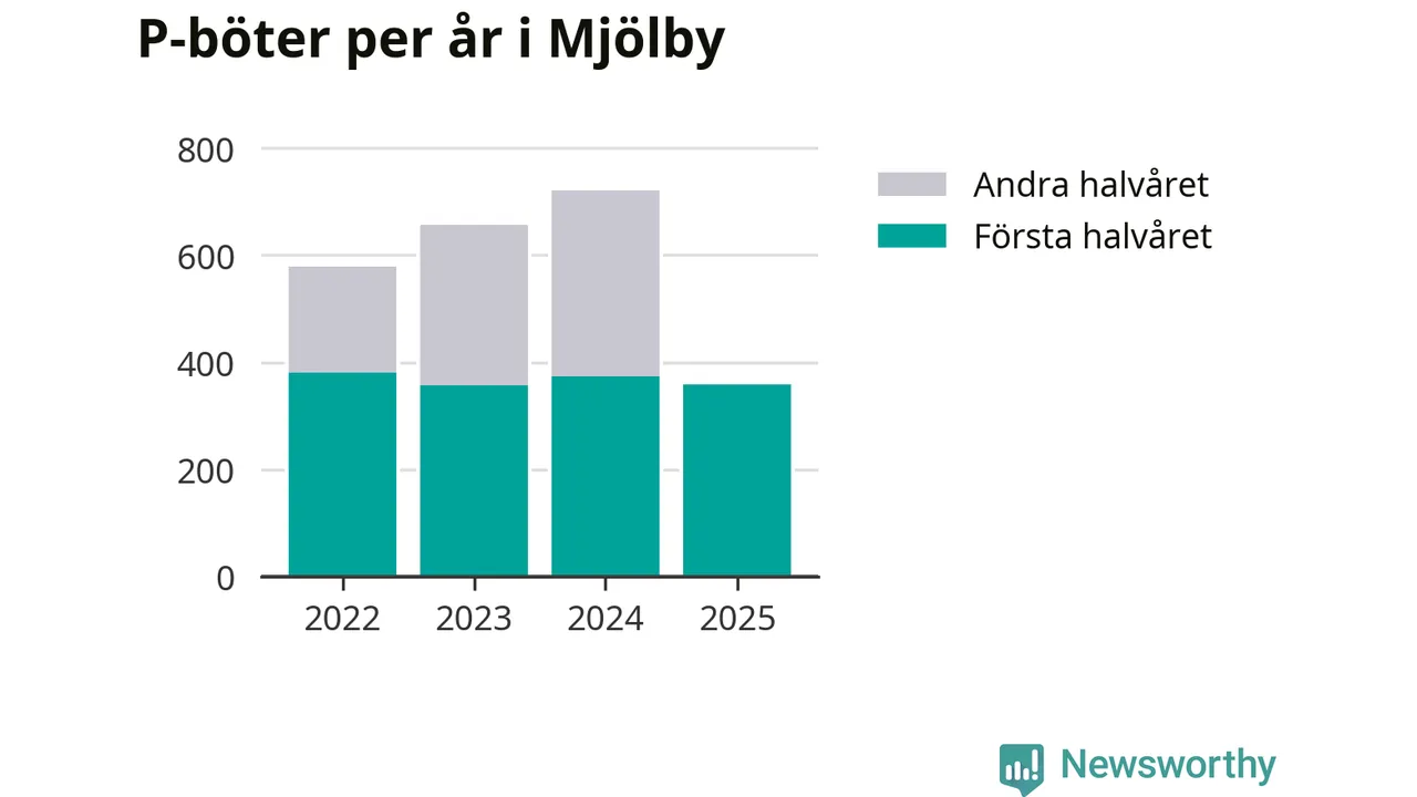 Under första halvåret 2025 har 359 parkeringsanmärkningar, med en total felparkeringsavgift på 265 600 kronor, delats ut på gatumark i Mjölby kommun. Det är 14 färre än under första halvåret 2024.
