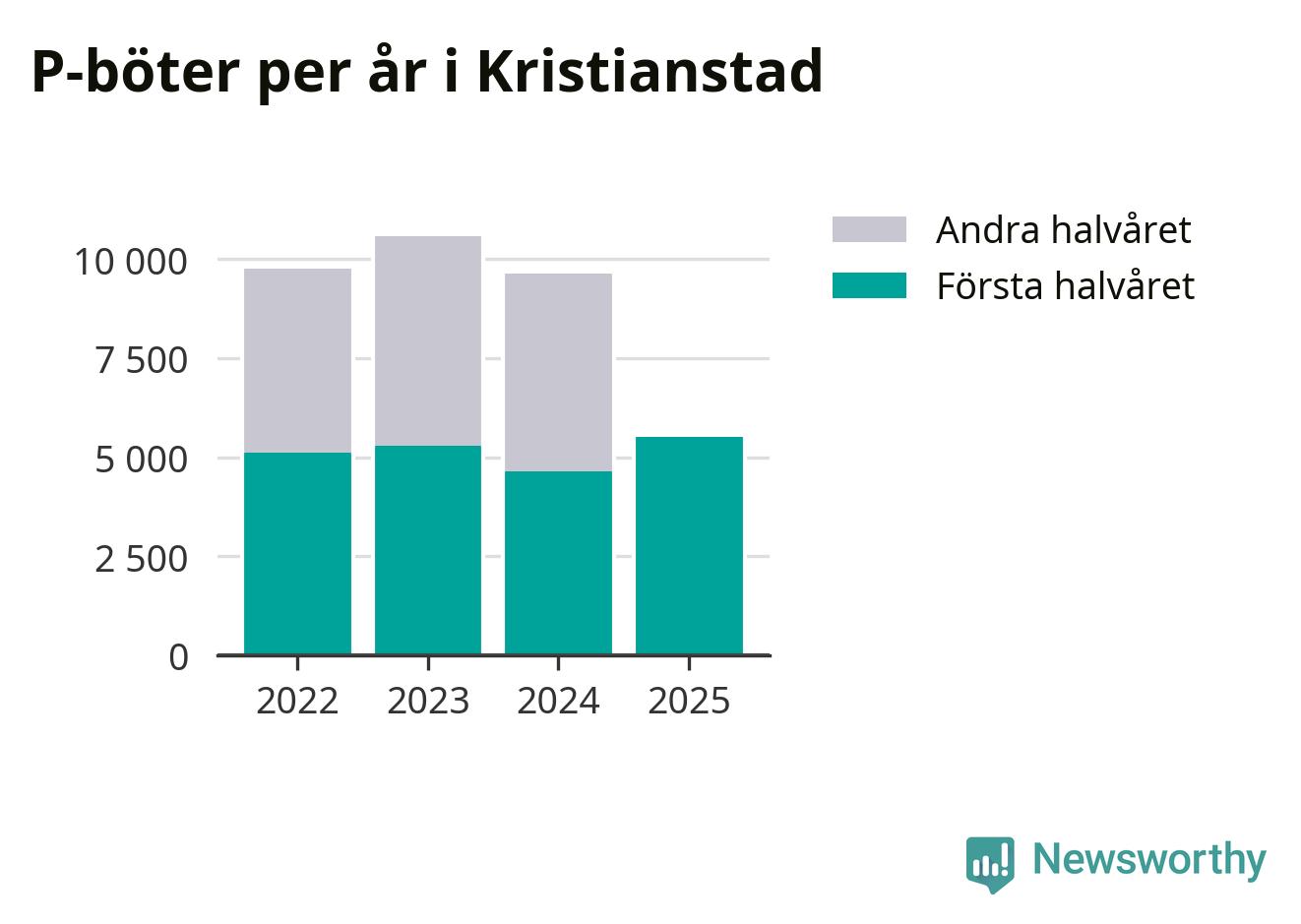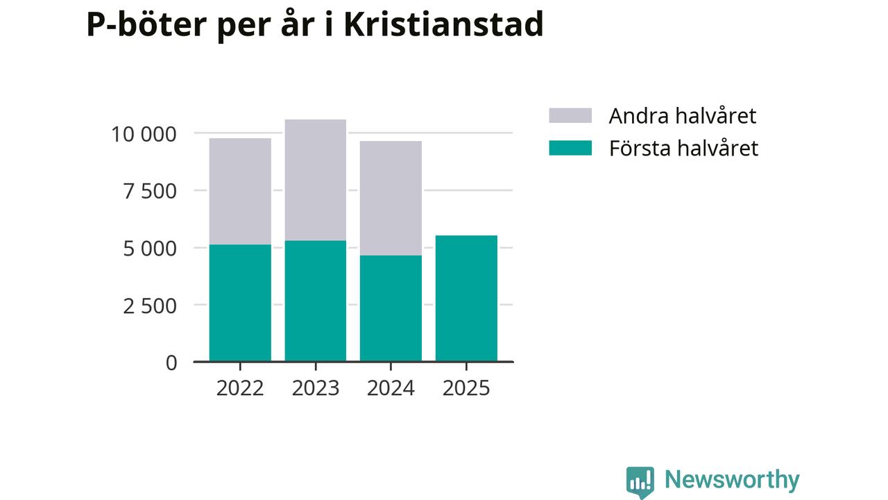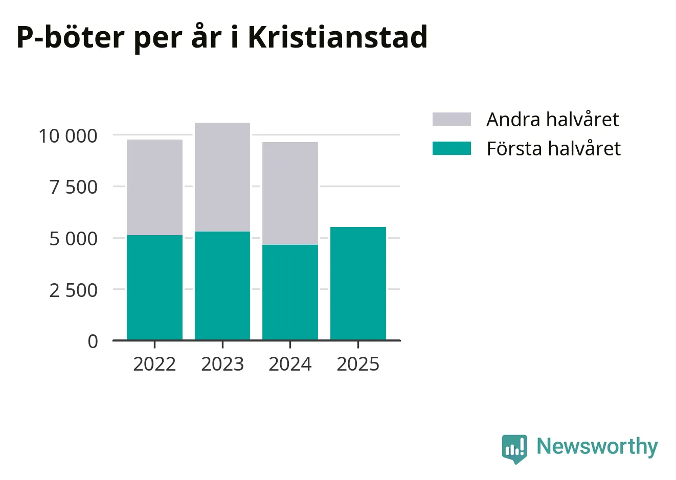 Under första halvåret 2025 har 5 499 parkeringsanmärkningar, med en total felparkeringsavgift på omkring 2,8 miljoner kronor, delats ut på gatumark i Kristianstads kommun. Det är 865 fler än under första halvåret 2024.