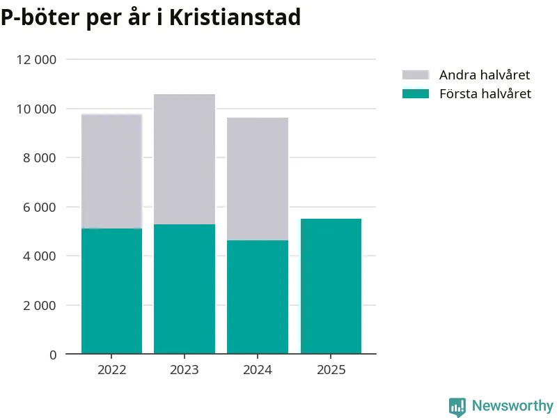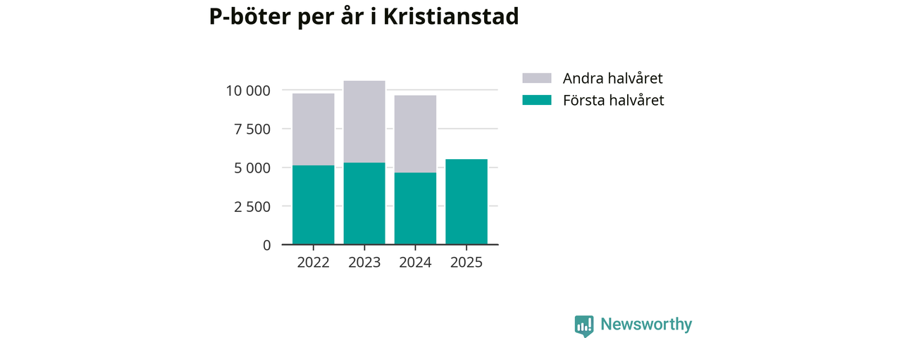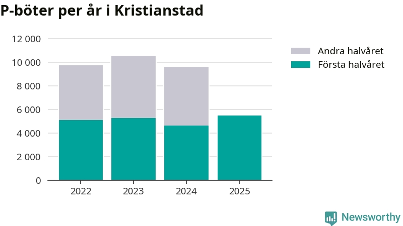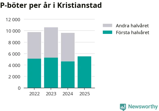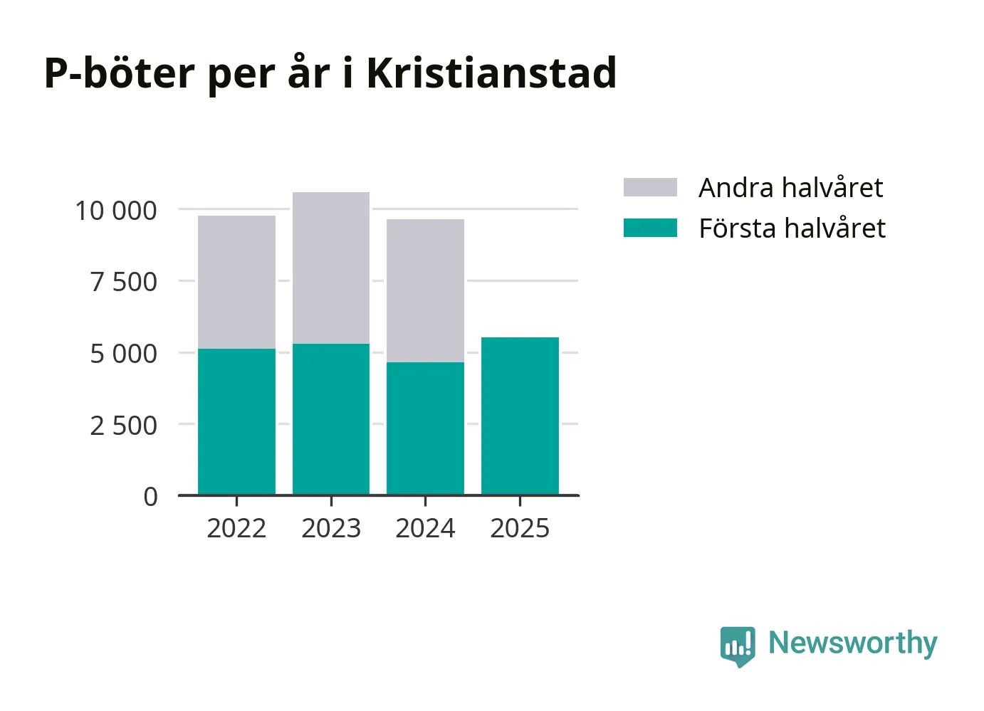 Under första halvåret 2025 har 5 499 parkeringsanmärkningar, med en total felparkeringsavgift på omkring 2,8 miljoner kronor, delats ut på gatumark i Kristianstads kommun. Det är 865 fler än under första halvåret 2024.