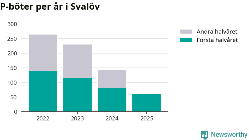 Totalt, från 1 januari 2022 till och med juni 2025, rör det sig om 696 parkeringsförsyndelser med ett totalt bötesbelopp på 360 300 kronor i kommunen, visar Newsworthys genomgång av kommunernas parkeringsanmärkningar i Transportstyrelsens databas.