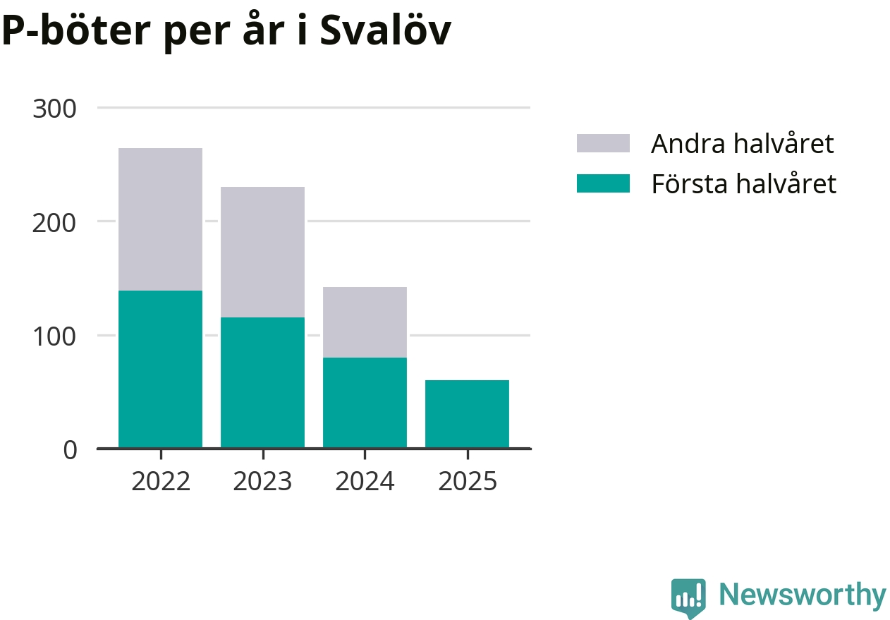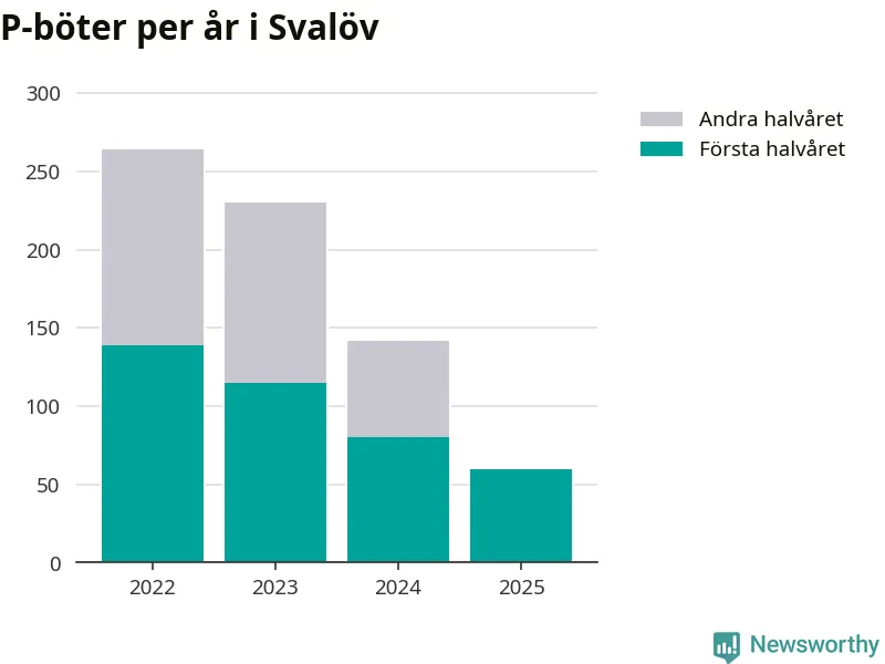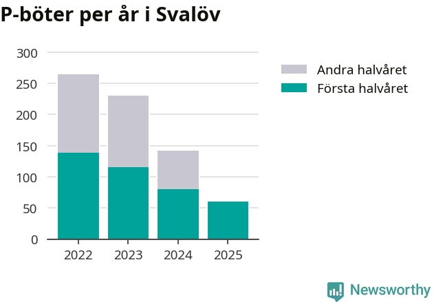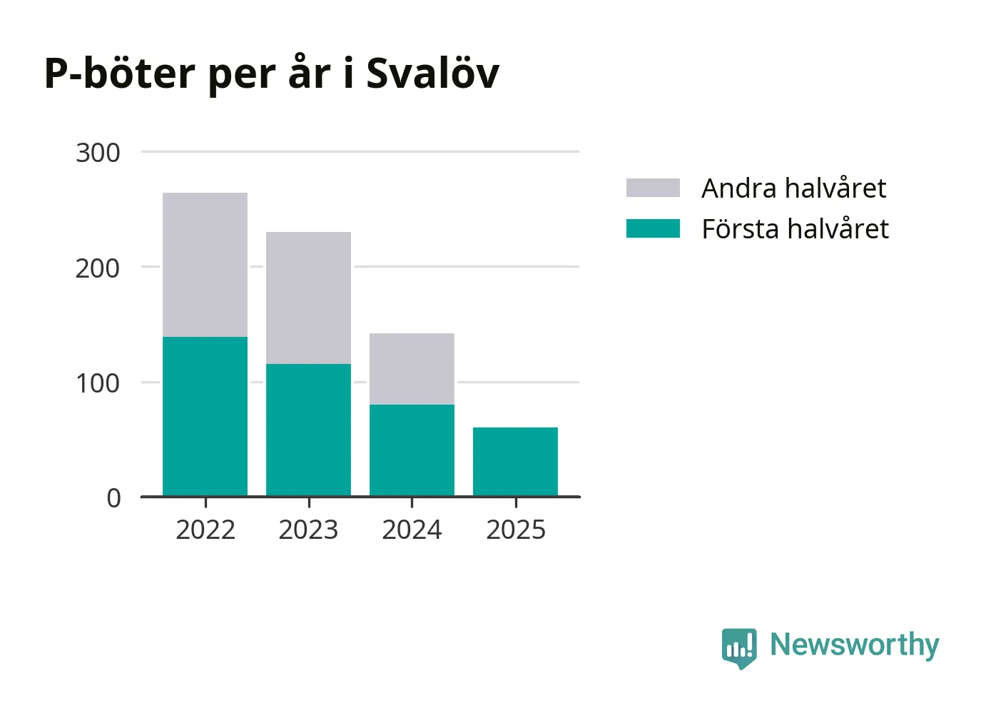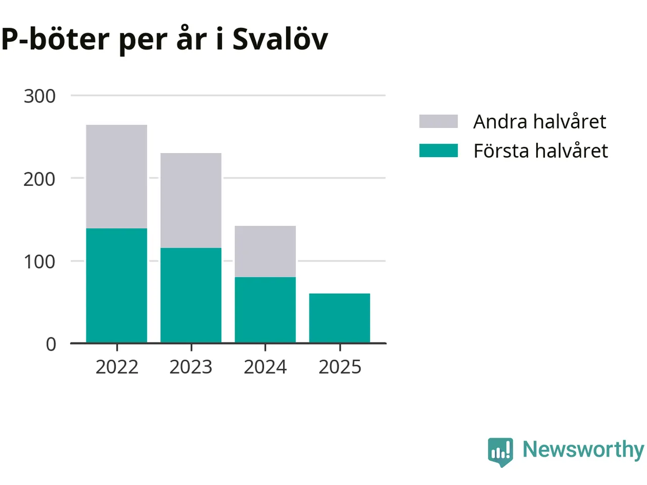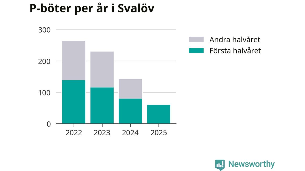 Under första halvåret 2025 har 60 parkeringsanmärkningar, med en total felparkeringsavgift på 28 500 kronor, delats ut på gatumark i Svalövs kommun. Det är 20 färre än under första halvåret 2024.