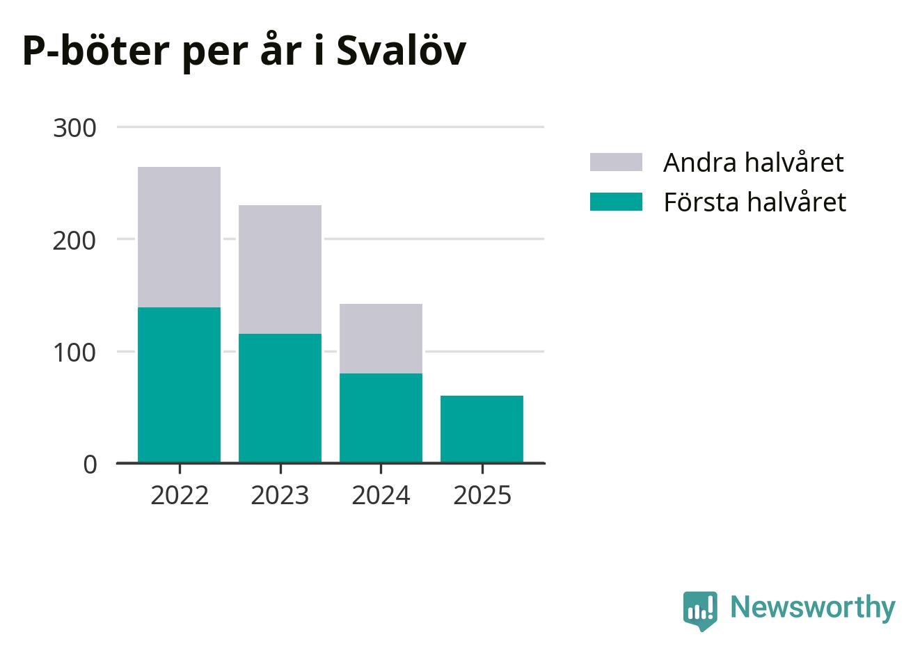 Därmed ser det ut som om trenden fortsätter i Svalöv. Böterna har blivit färre varje år sedan 2022. 2024 handlade det om totalt 142 parkeringsanmärkningar, till ett totalt värde av 71 700 kronor.