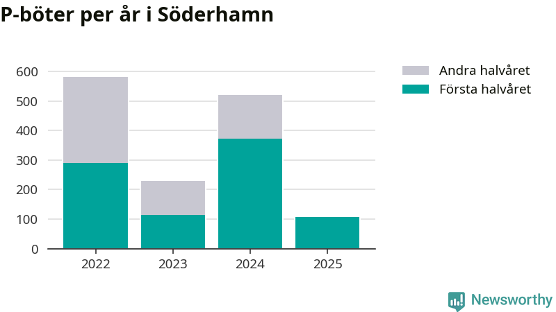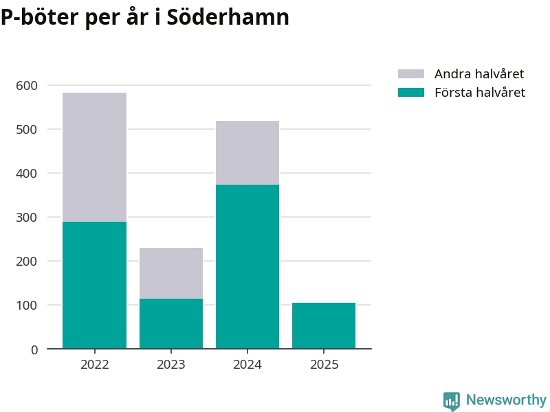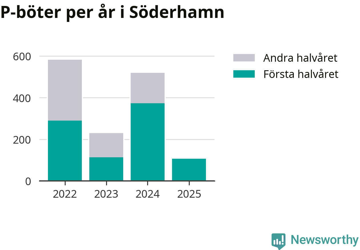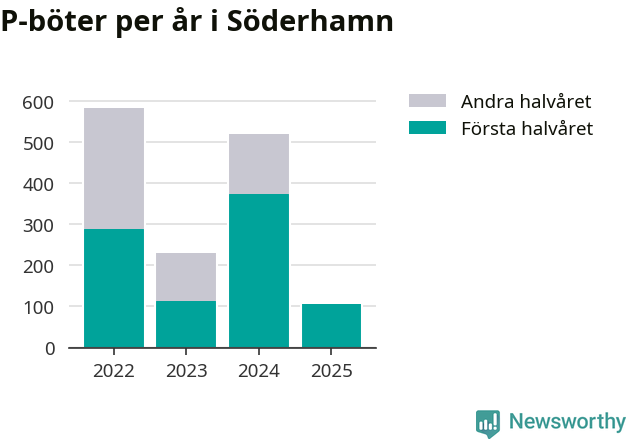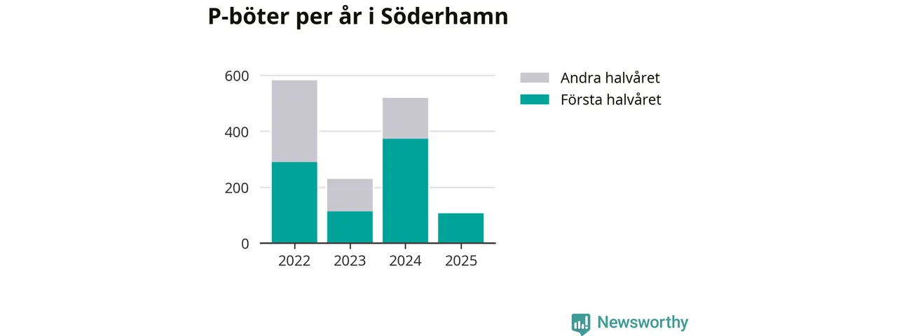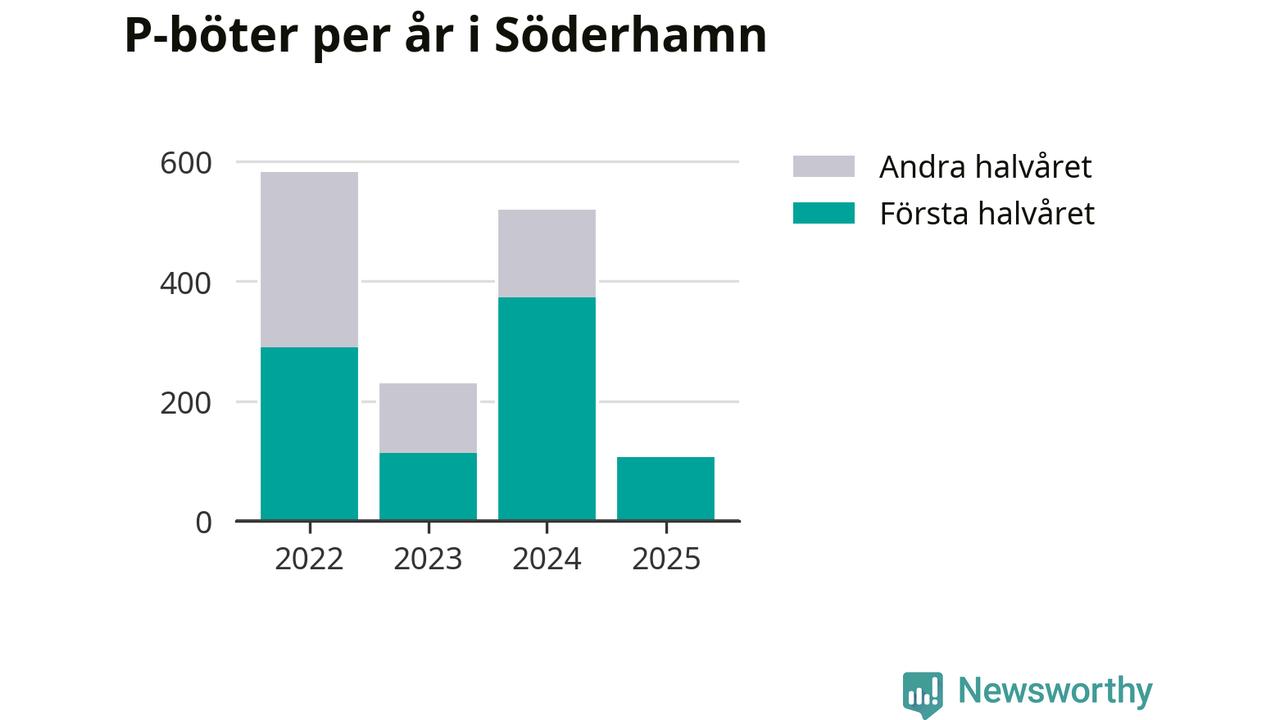 Under första halvåret 2025 har 106 parkeringsanmärkningar, med en total felparkeringsavgift på 86 600 kronor, delats ut på gatumark i Söderhamns kommun. Det är mindre än hälften så många som under första halvåret i fjol, då 373 böter utfärdades.
