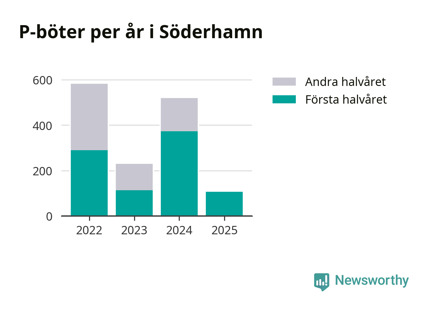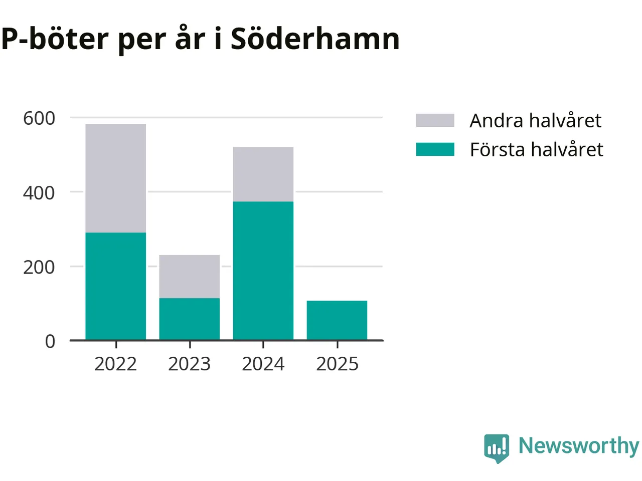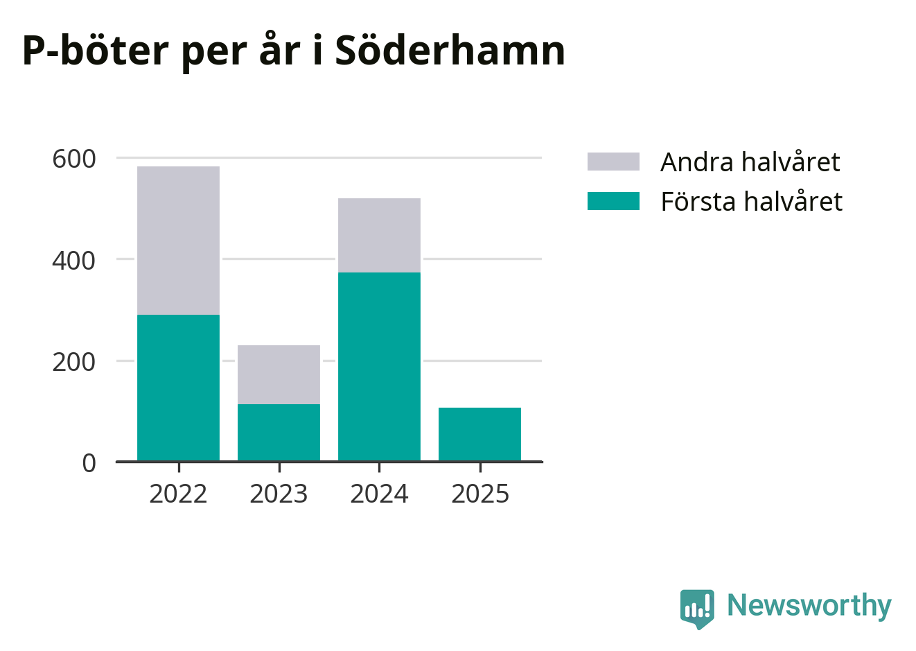 Under första halvåret 2025 har 106 parkeringsanmärkningar, med en total felparkeringsavgift på 86 600 kronor, delats ut på gatumark i Söderhamns kommun. Det är mindre än hälften så många som under första halvåret i fjol, då 373 böter utfärdades.
