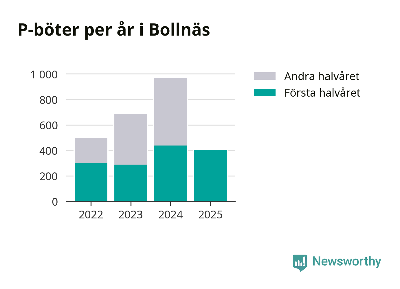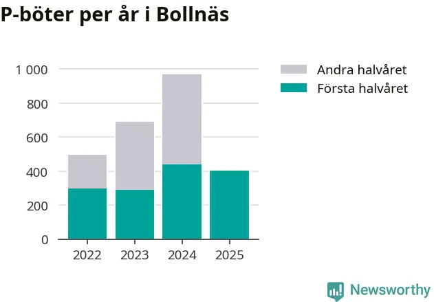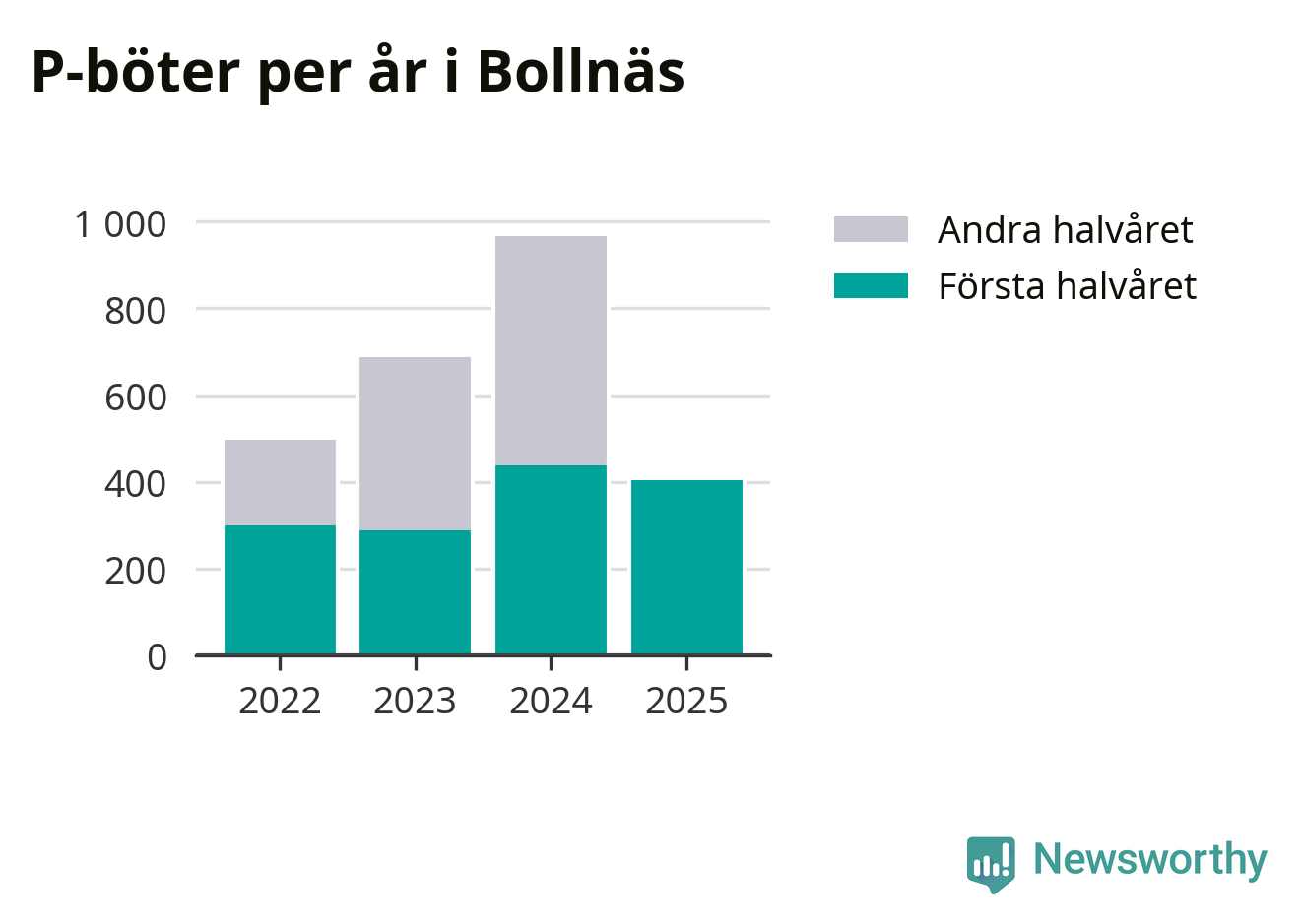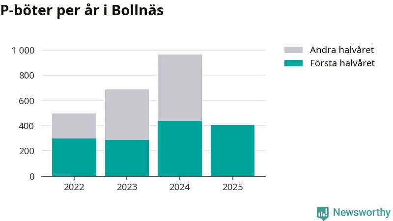 Under första halvåret 2025 har 404 parkeringsanmärkningar, med en total felparkeringsavgift på 305 600 kronor, delats ut på gatumark i Bollnäs kommun. Det är 34 färre än under första halvåret 2024.