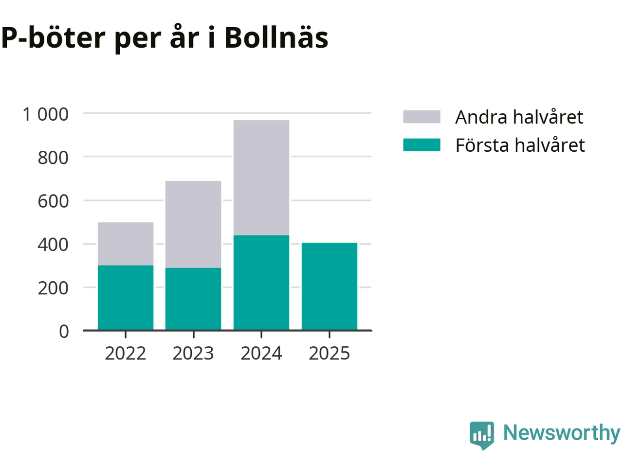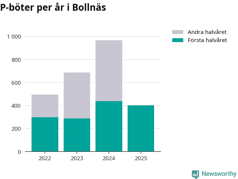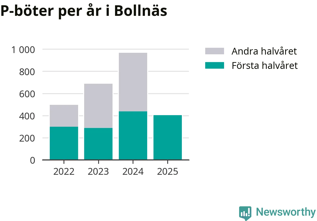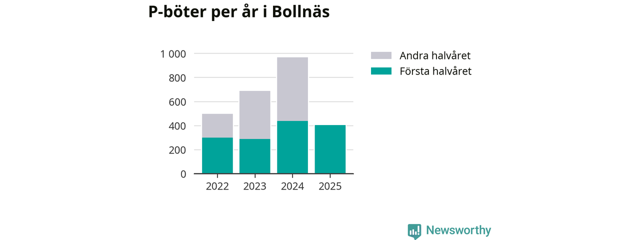 Under första halvåret 2025 har 404 parkeringsanmärkningar, med en total felparkeringsavgift på 305 600 kronor, delats ut på gatumark i Bollnäs kommun. Det är 34 färre än under första halvåret 2024.