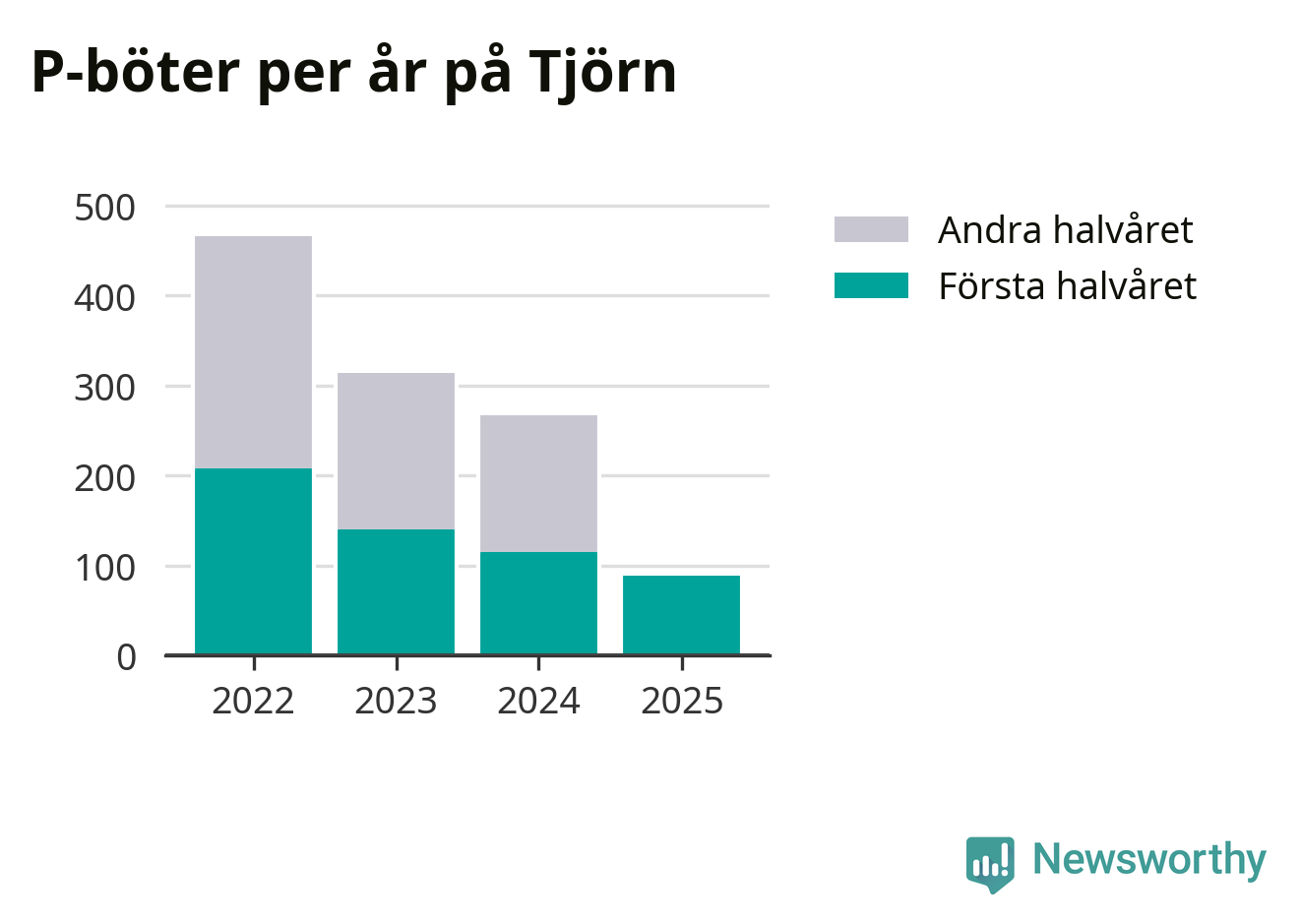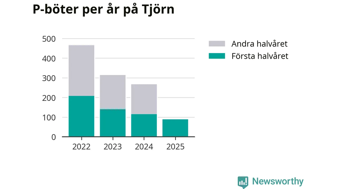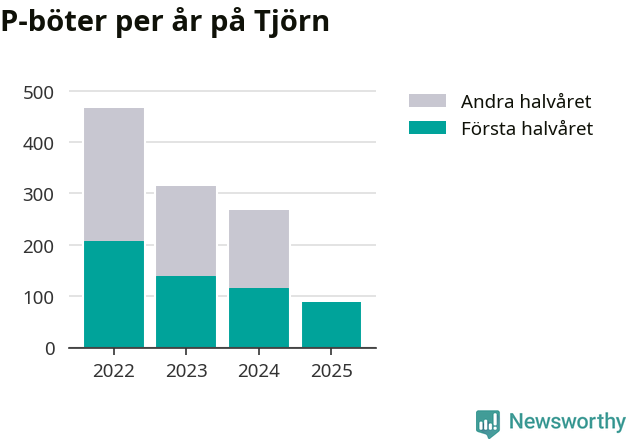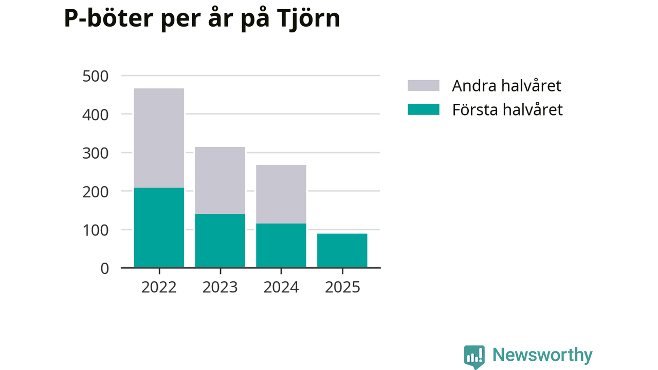Under första halvåret 2025 har 89 parkeringsanmärkningar, med en total felparkeringsavgift på 50 200 kronor, delats ut på gatumark i Tjörns kommun. Det är 26 färre än under första halvåret 2024.