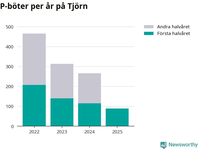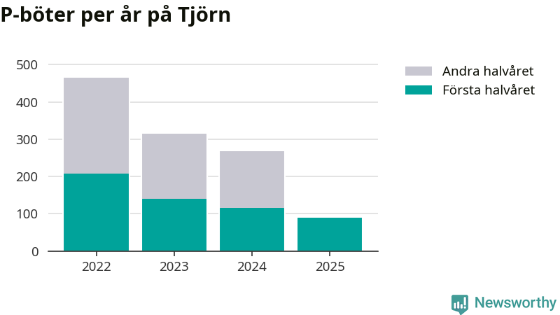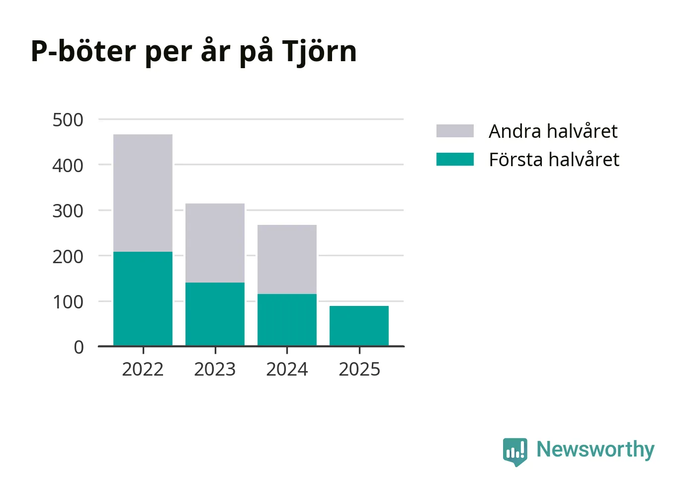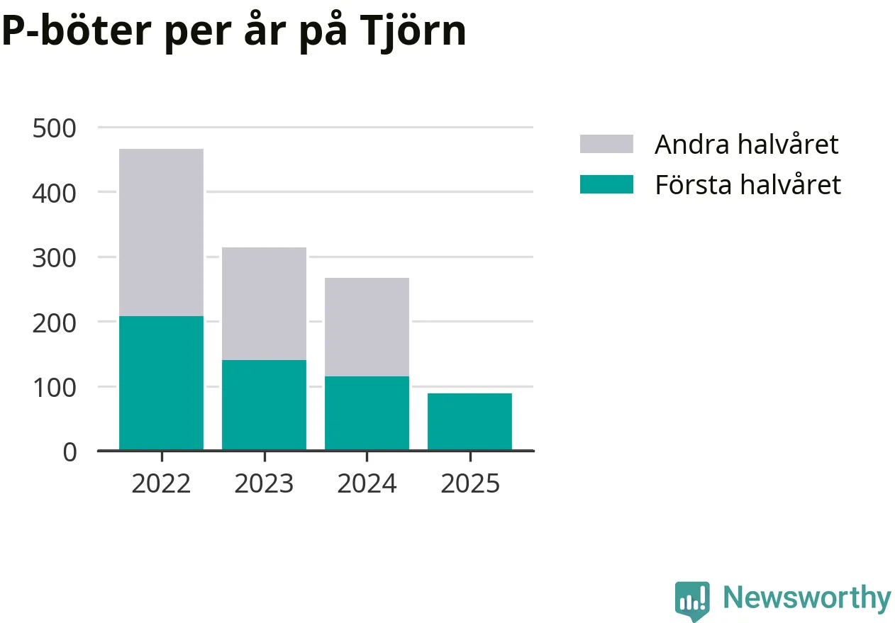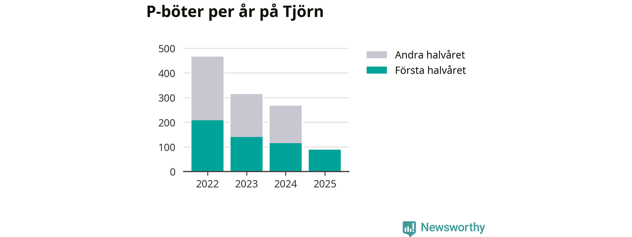 Under första halvåret 2025 har 89 parkeringsanmärkningar, med en total felparkeringsavgift på 50 200 kronor, delats ut på gatumark i Tjörns kommun. Det är 26 färre än under första halvåret 2024.