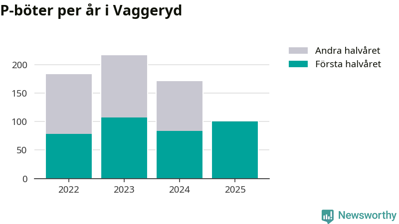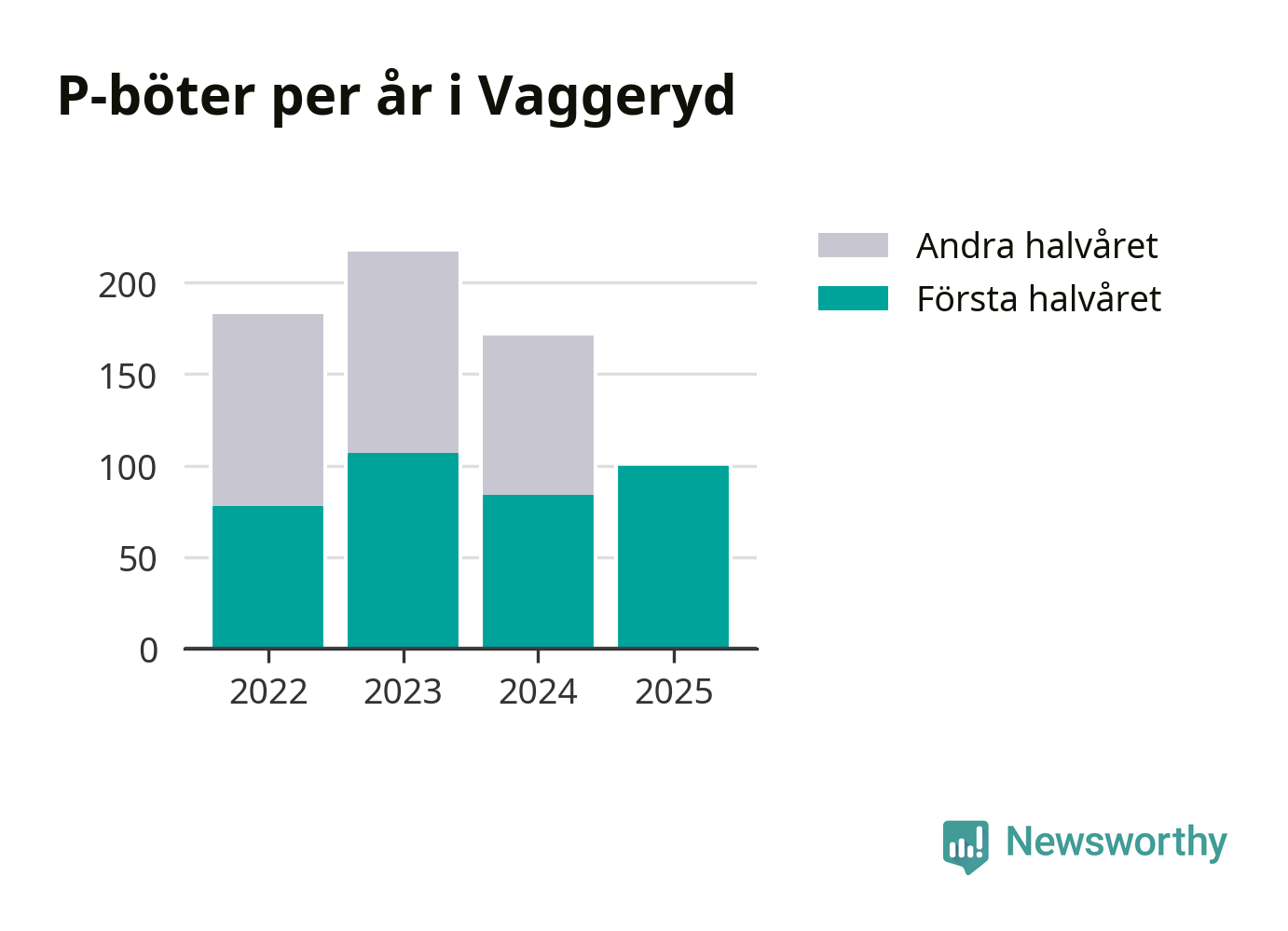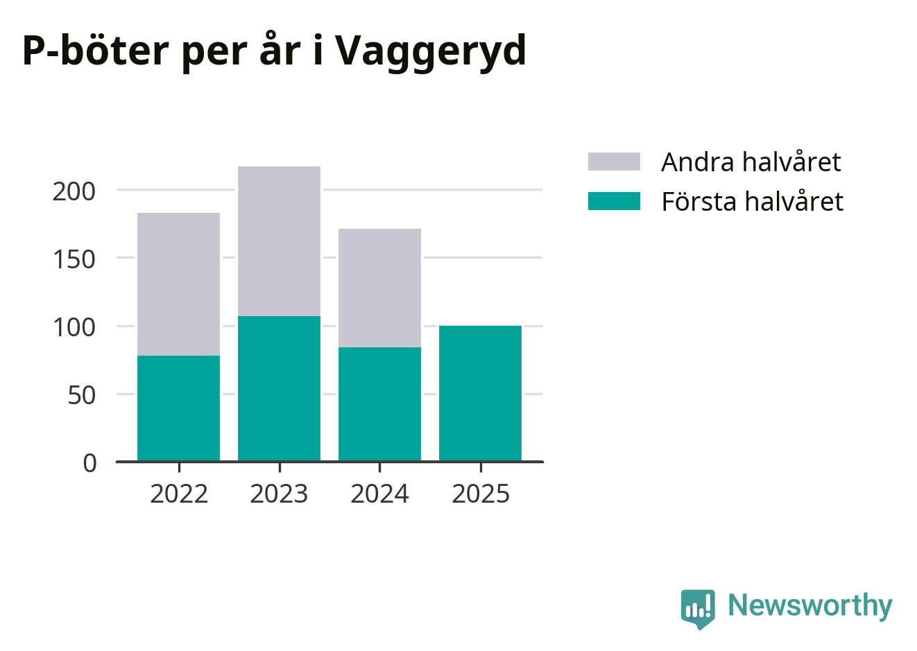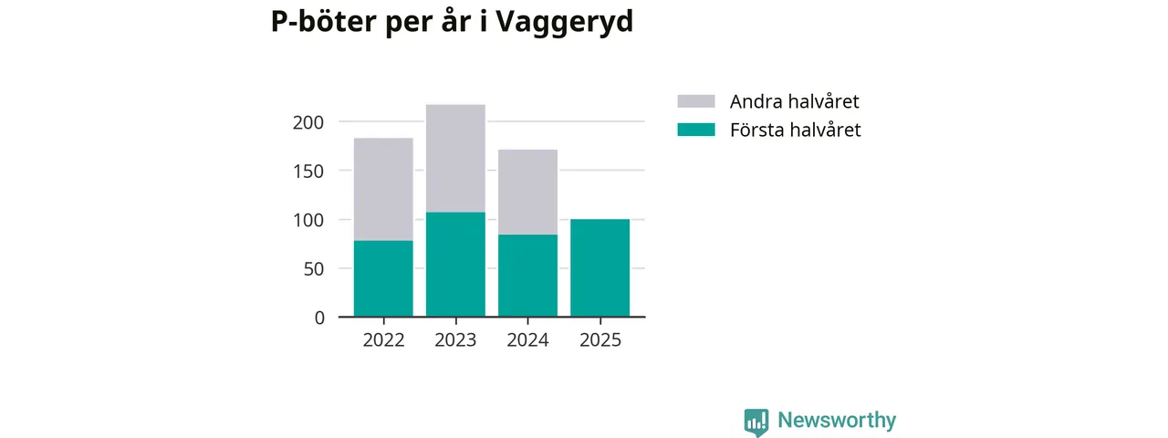 Under första halvåret 2025 har 100 parkeringsanmärkningar, med en total felparkeringsavgift på 71 800 kronor, delats ut på gatumark i Vaggeryds kommun. Det är 16 fler än under första halvåret 2024.