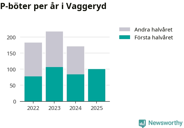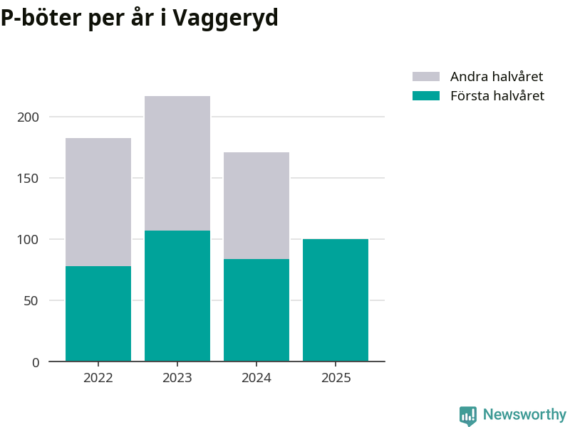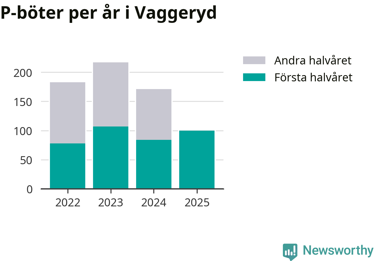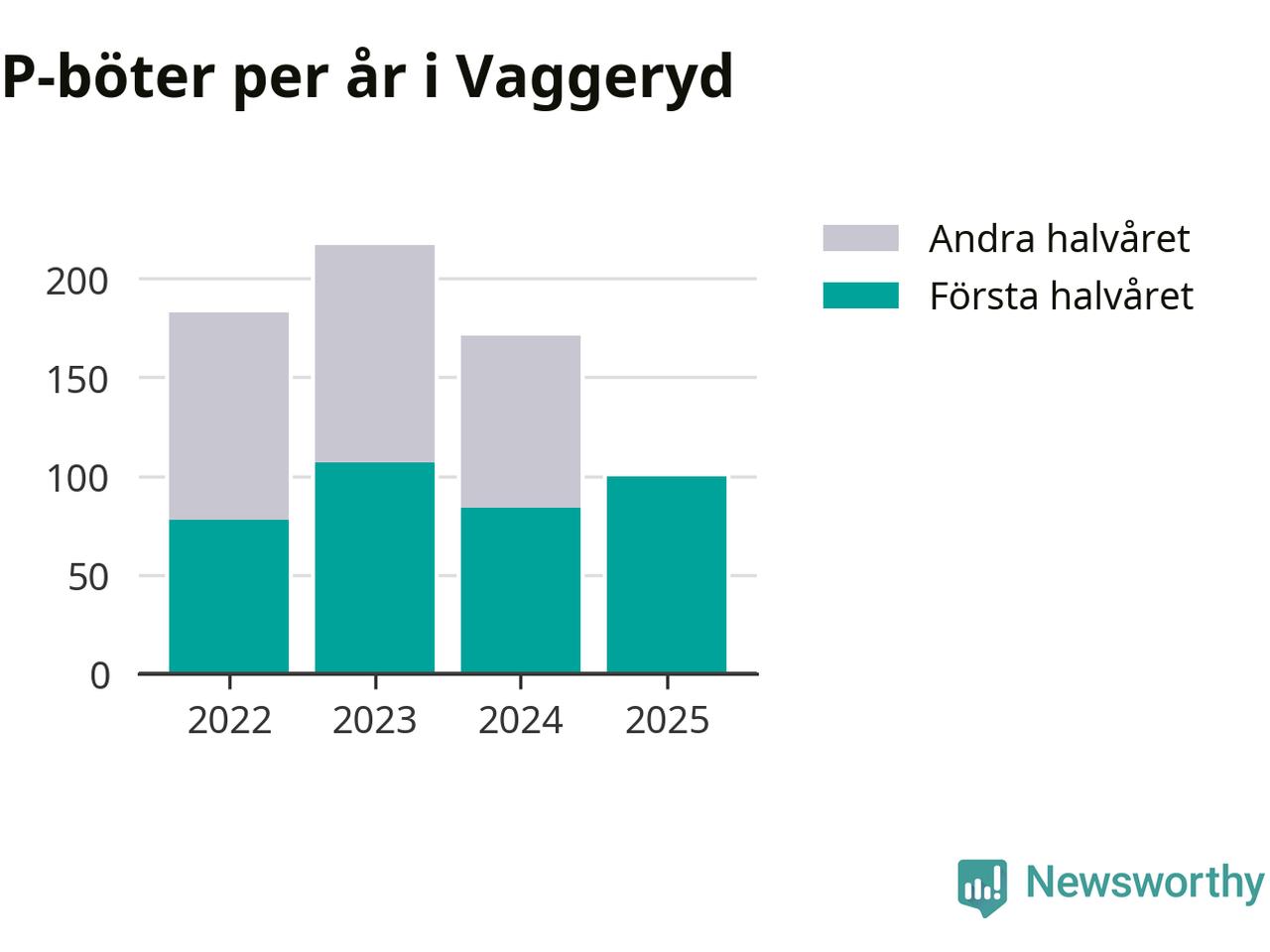Under första halvåret 2025 har 100 parkeringsanmärkningar, med en total felparkeringsavgift på 71 800 kronor, delats ut på gatumark i Vaggeryds kommun. Det är 16 fler än under första halvåret 2024.