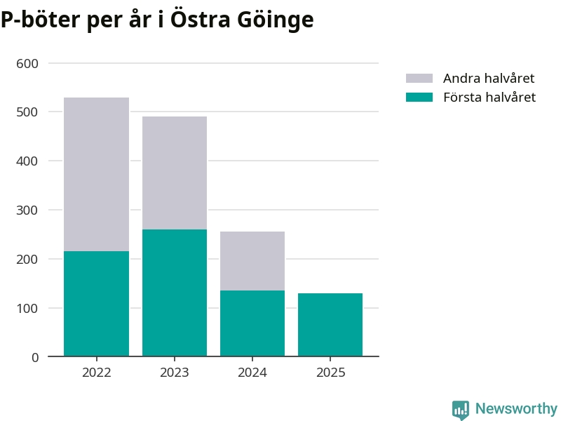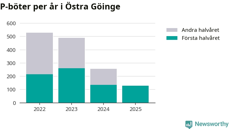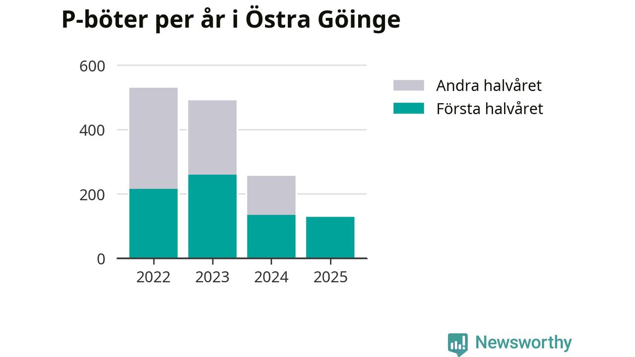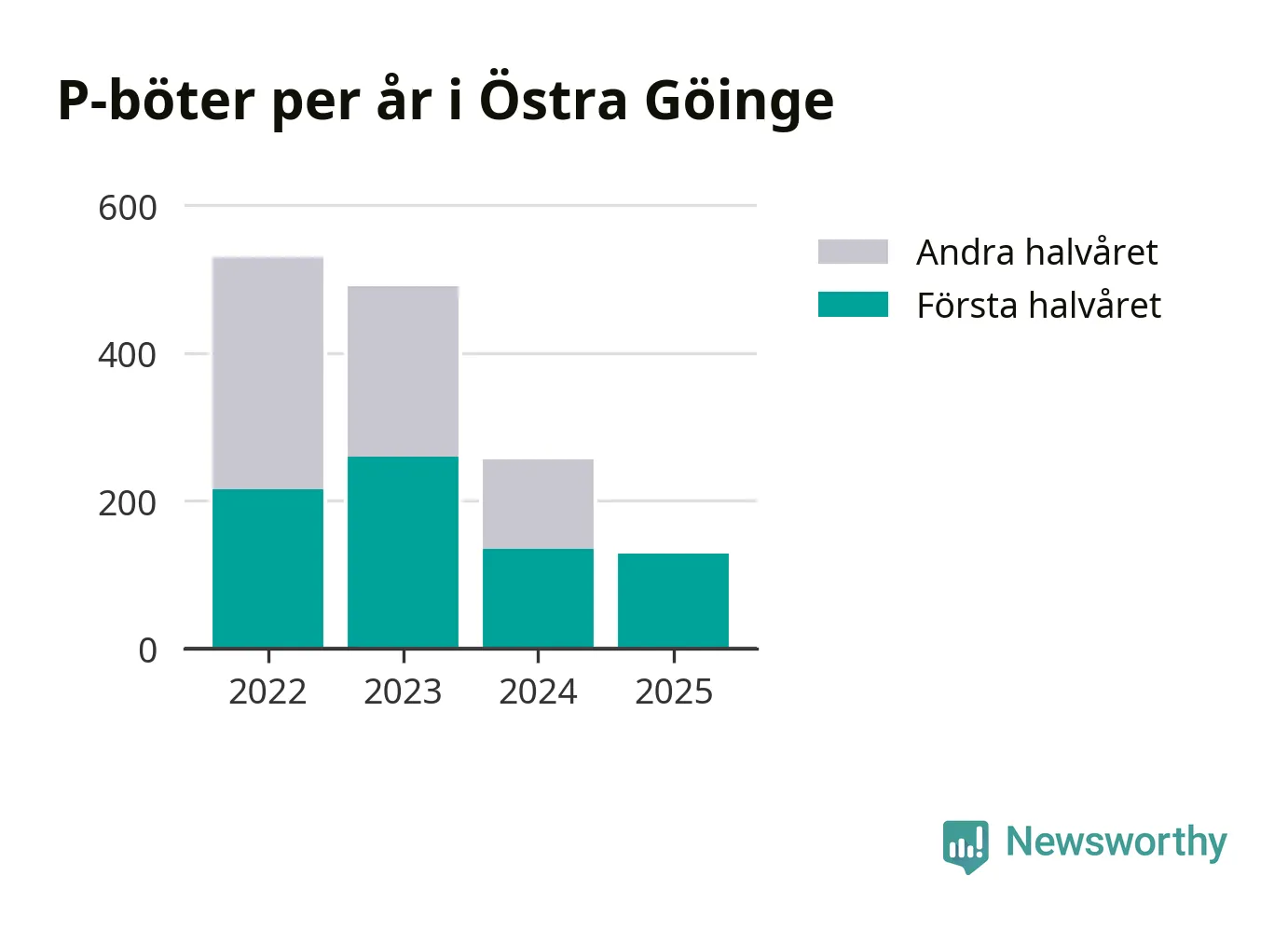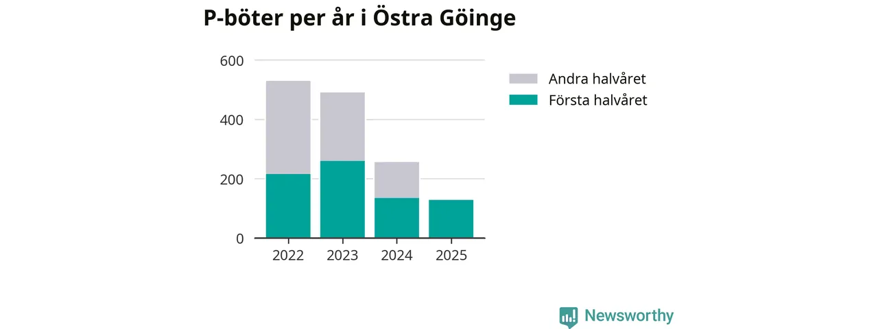 Under första halvåret 2025 har 129 parkeringsanmärkningar, med en total felparkeringsavgift på 56 000 kronor, delats ut på gatumark i Östra Göinge kommun. Det är ungefär lika många som året innan.