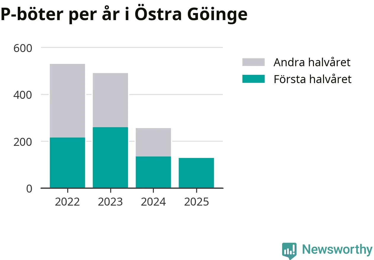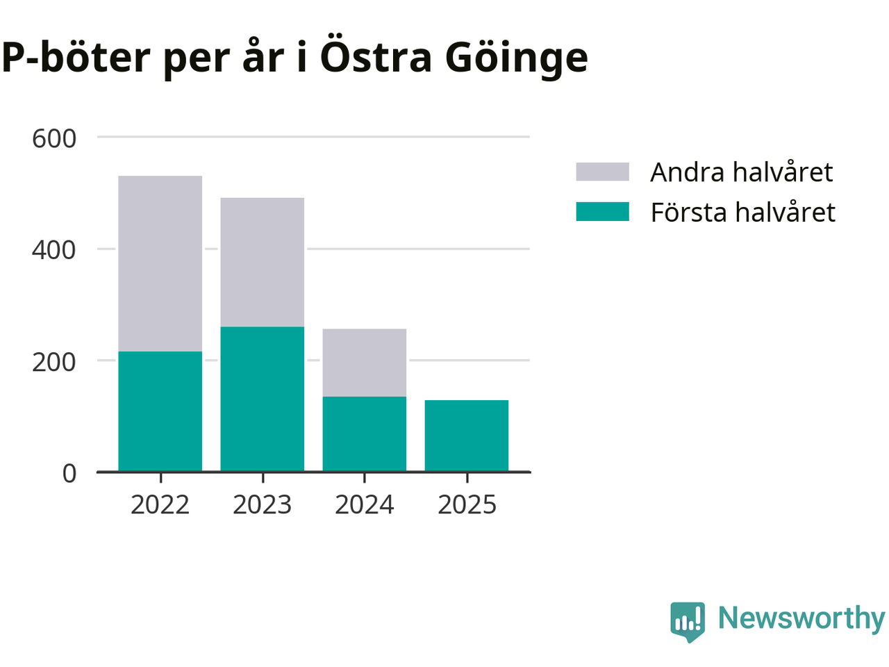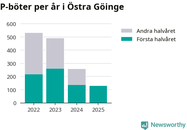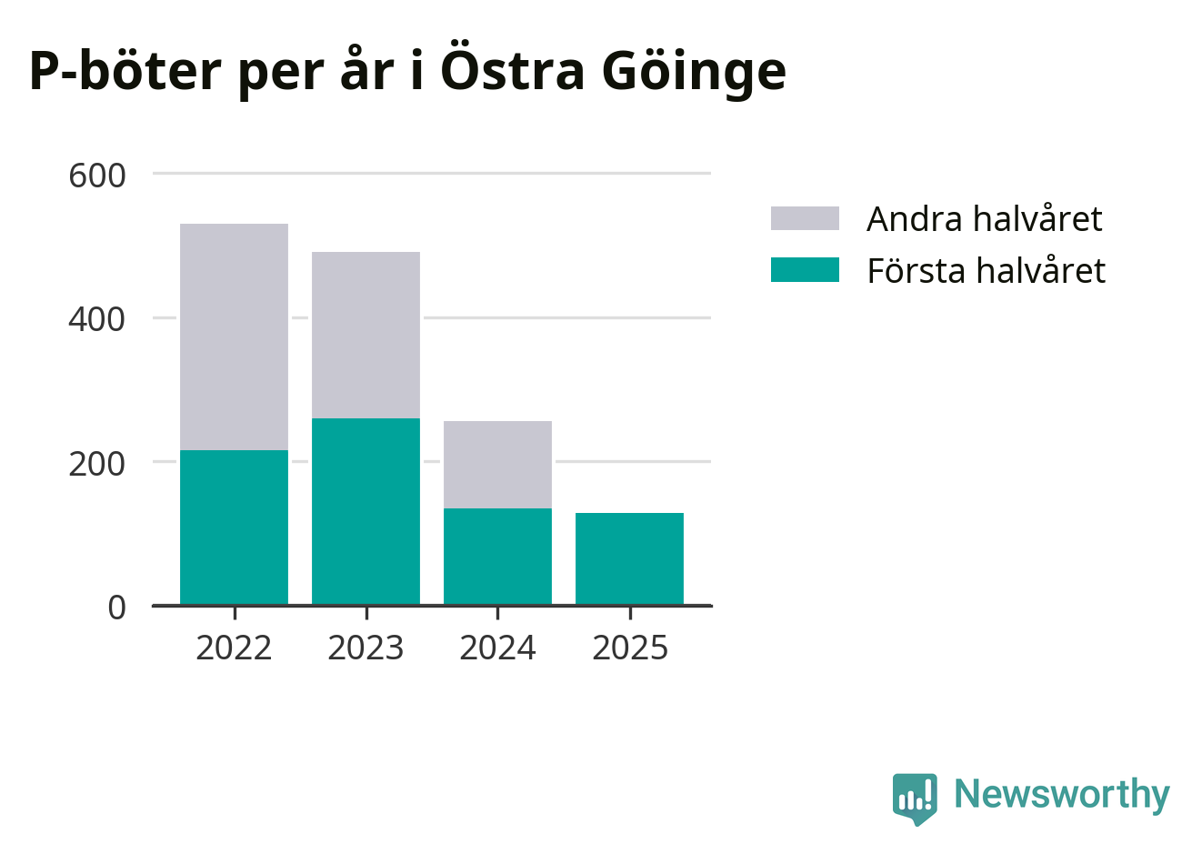 Under första halvåret 2025 har 129 parkeringsanmärkningar, med en total felparkeringsavgift på 56 000 kronor, delats ut på gatumark i Östra Göinge kommun. Det är ungefär lika många som året innan.