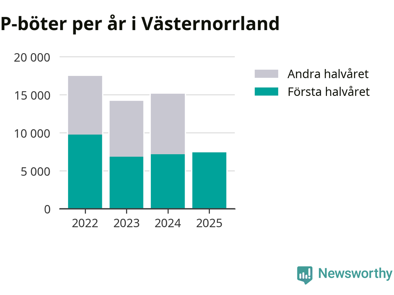 Totalt, från 1 januari 2022 till och med juni 2025, rör det sig om 54 231 parkeringsförsyndelser med ett totalt bötesbelopp på omkring 37,9 miljoner kronor i länet, visar Newsworthys genomgång av kommunernas parkeringsanmärkningar i Transportstyrelsens databas. Flest parkeringsanmärkningar i Västernorrland har delats ut i Sundsvall under de senaste tre och ett halvt åren.