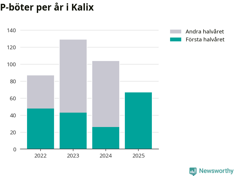Under första halvåret 2025 har 67 parkeringsanmärkningar, med en total felparkeringsavgift på 30 700 kronor, delats ut på gatumark i Kalix kommun. Det är mer än dubbelt så många som under första halvåret 2024, då 26 böter utfärdades.
