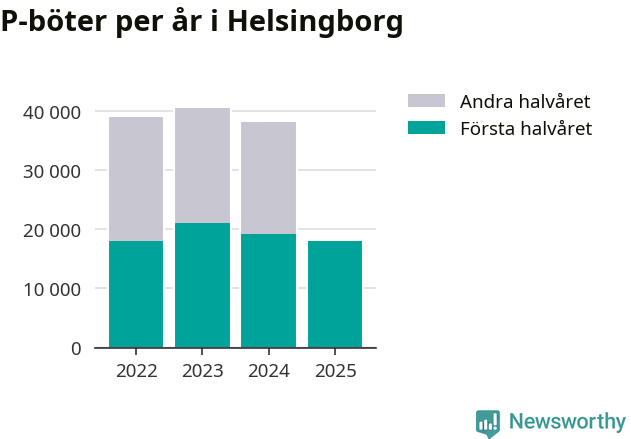 Under första halvåret 2025 har 18 074 parkeringsanmärkningar, med en total felparkeringsavgift på omkring 14,8 miljoner kronor, delats ut på gatumark i Helsingborgs kommun. Det är 1 153 färre än under första halvåret 2024.