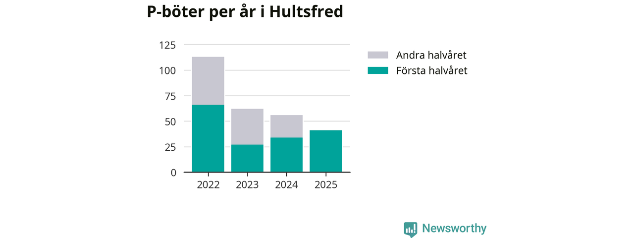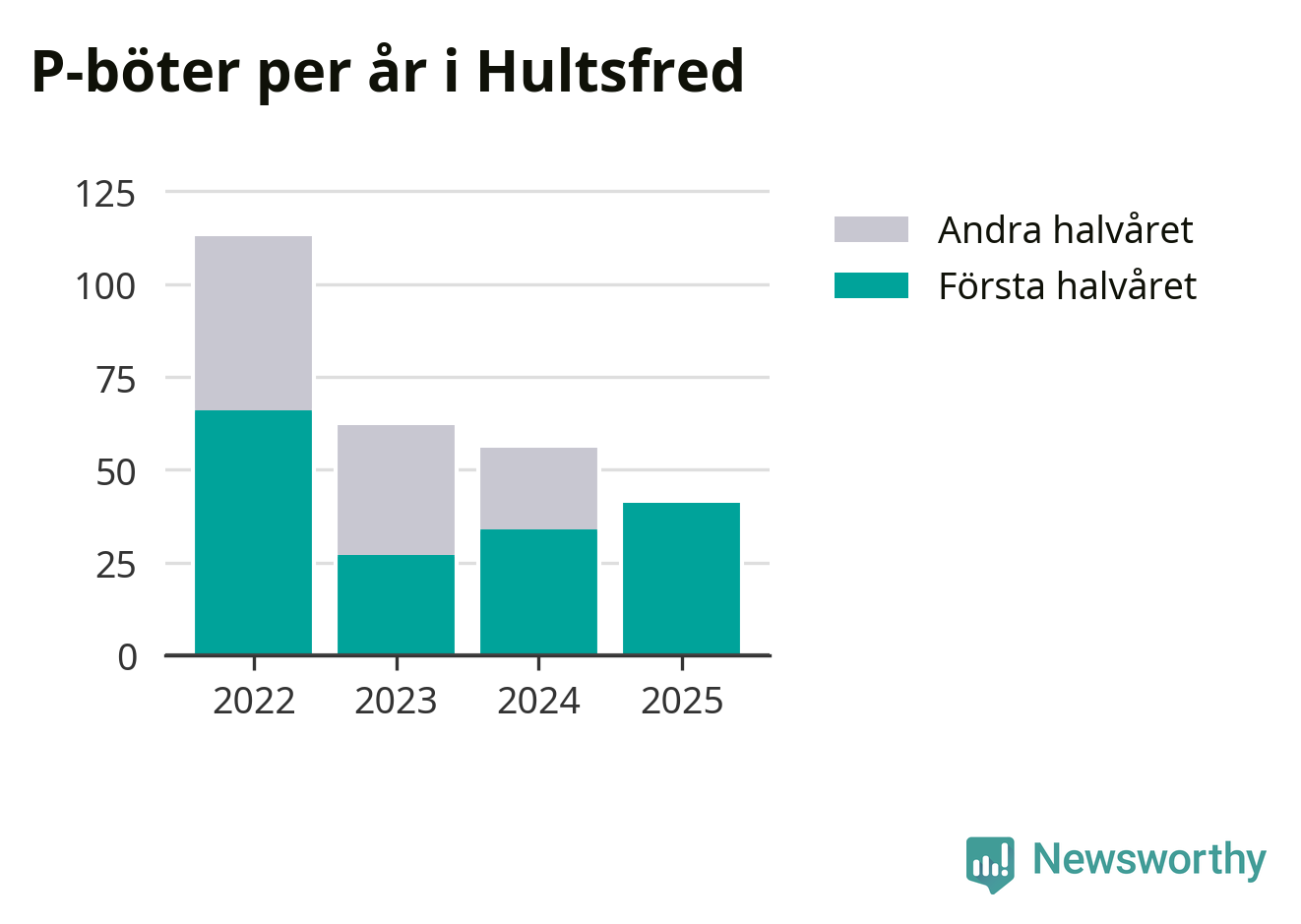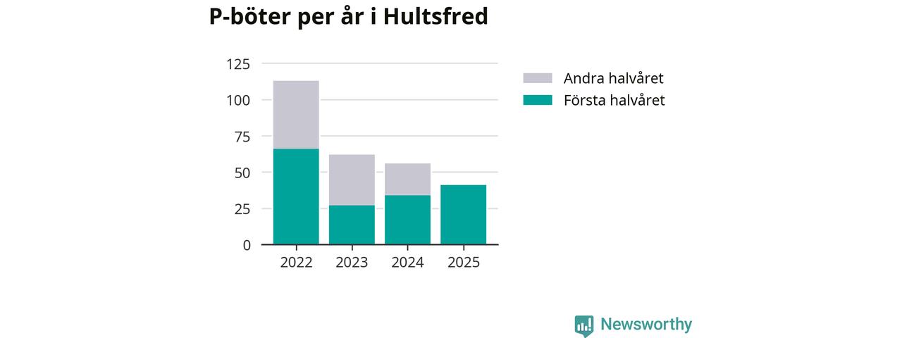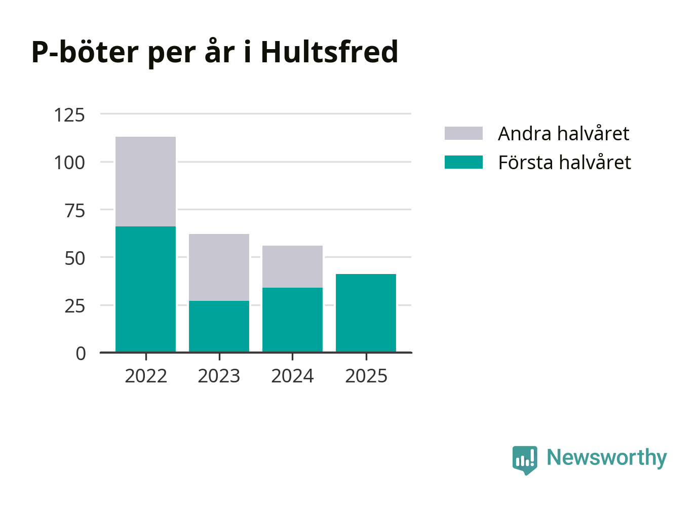 Under första halvåret 2025 har 41 parkeringsanmärkningar, med en total felparkeringsavgift på 15 000 kronor, delats ut på gatumark i Hultsfreds kommun. Det är ungefär lika många som året innan.