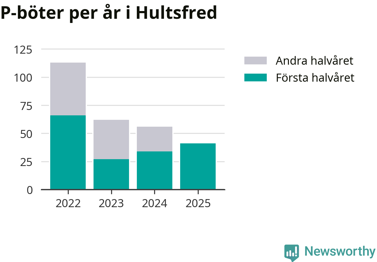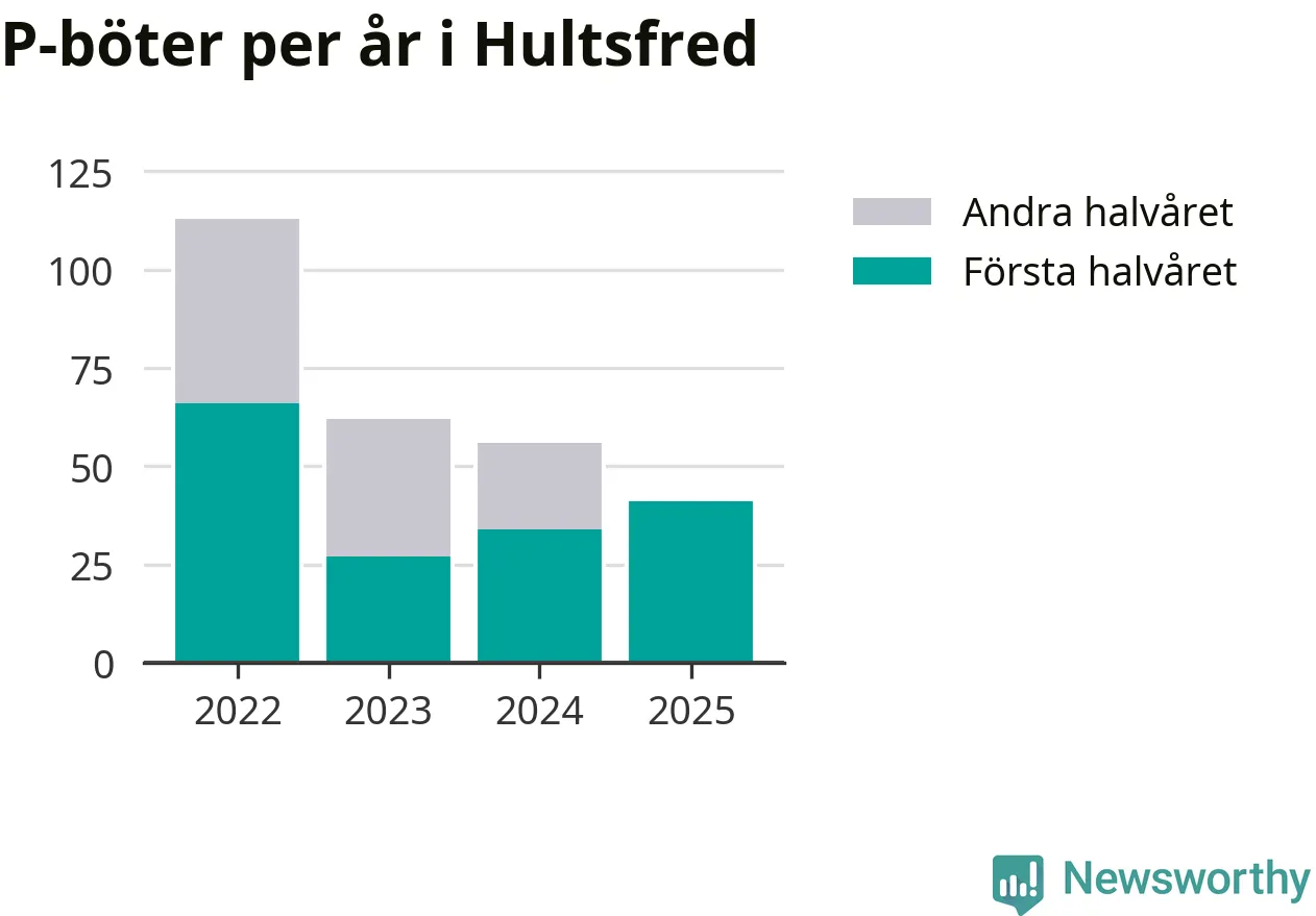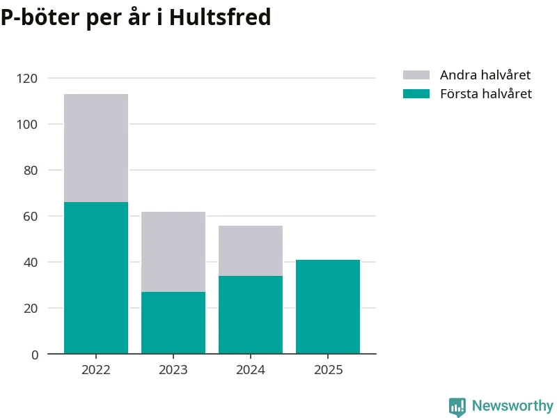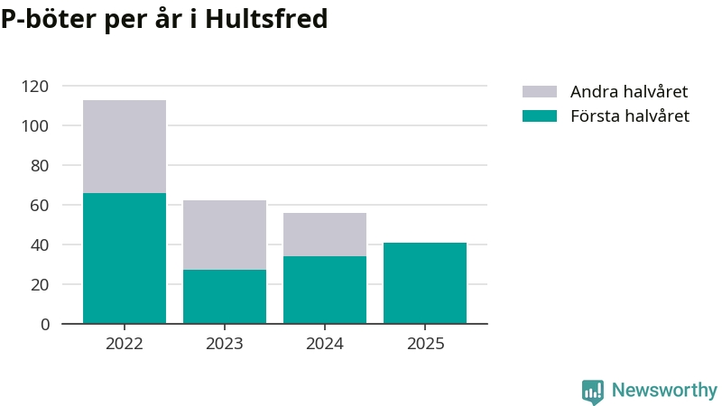 Under första halvåret 2025 har 41 parkeringsanmärkningar, med en total felparkeringsavgift på 15 000 kronor, delats ut på gatumark i Hultsfreds kommun. Det är ungefär lika många som året innan.