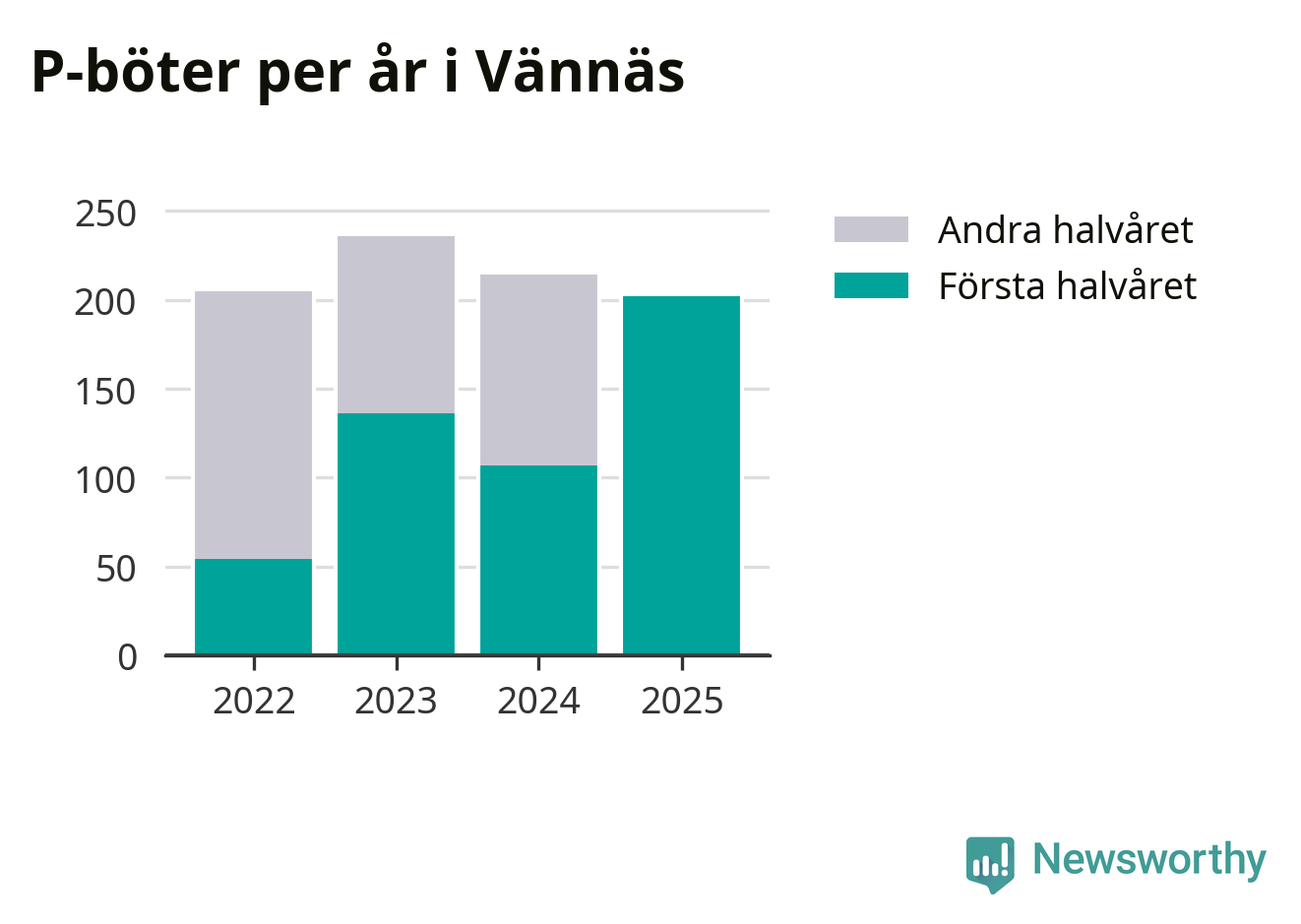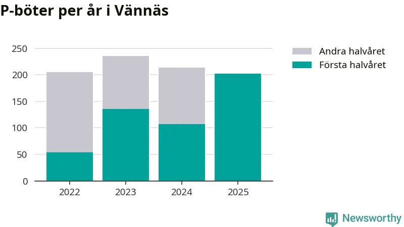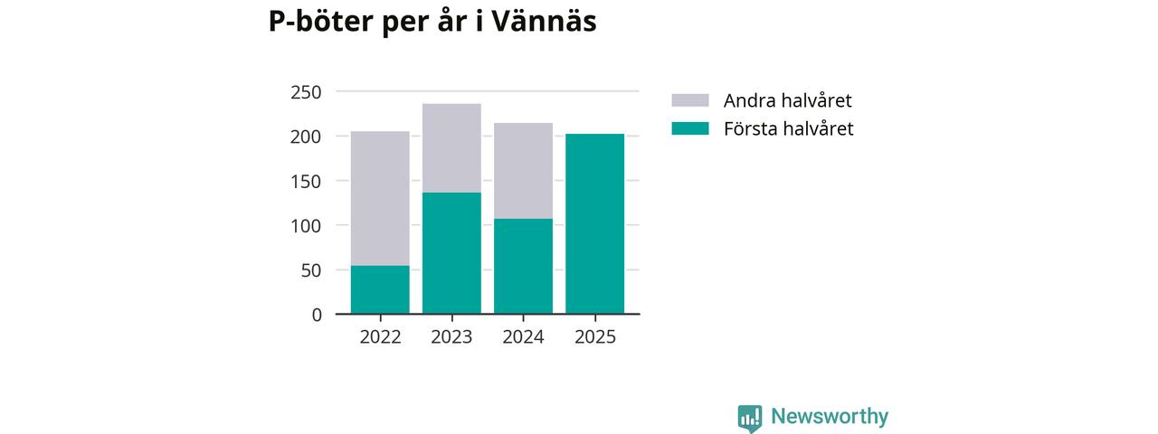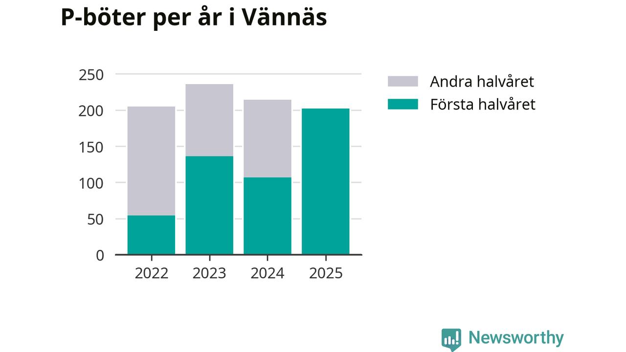 Under första halvåret 2025 har 202 parkeringsanmärkningar, med en total felparkeringsavgift på omkring 92 100 kronor, delats ut på gatumark i Vännäs kommun. Det är nästan dubbelt så många som under första halvåret 2024, då 107 böter utfärdades.