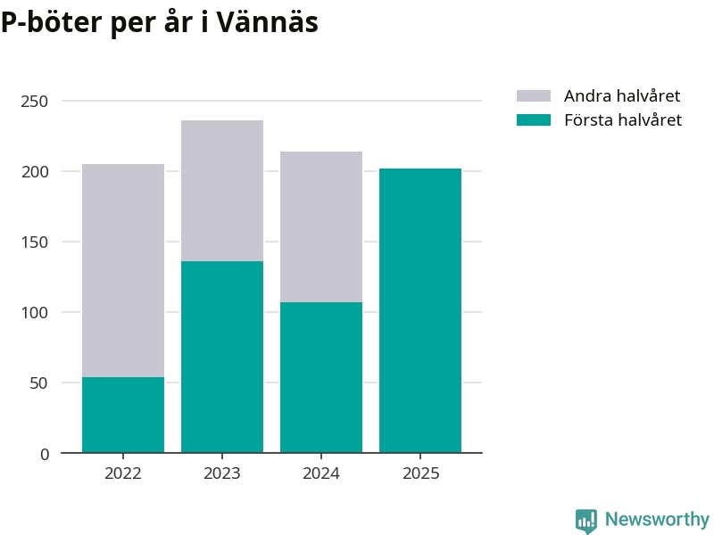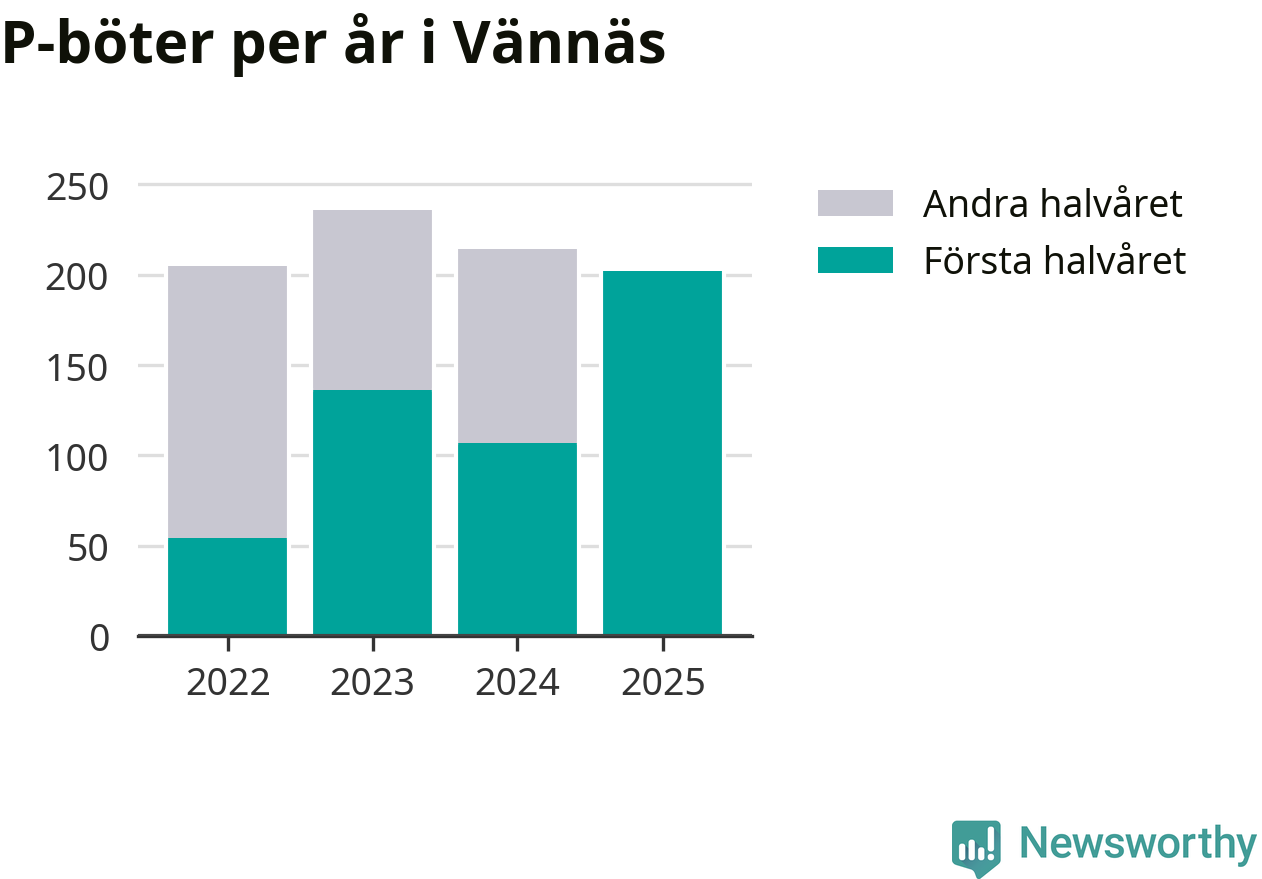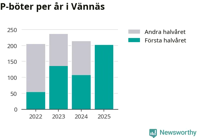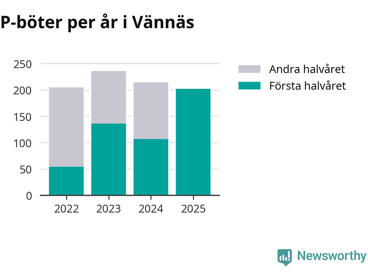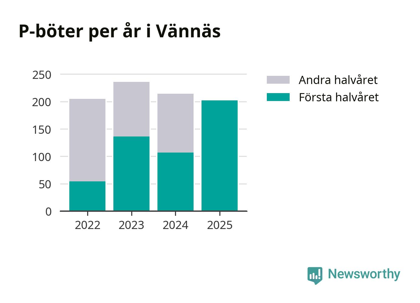 Under första halvåret 2025 har 202 parkeringsanmärkningar, med en total felparkeringsavgift på omkring 92 100 kronor, delats ut på gatumark i Vännäs kommun. Det är nästan dubbelt så många som under första halvåret 2024, då 107 böter utfärdades.