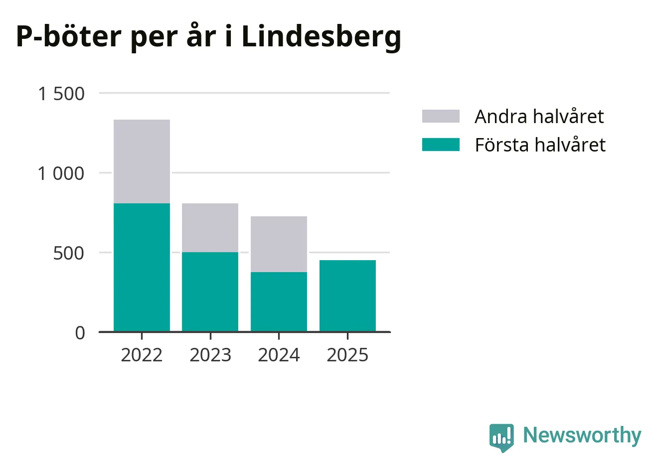 Under första halvåret 2025 har 450 parkeringsanmärkningar, med en total felparkeringsavgift på 292 200 kronor, delats ut på gatumark i Lindesbergs kommun. Det är 75 fler än under första halvåret 2024.