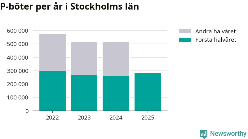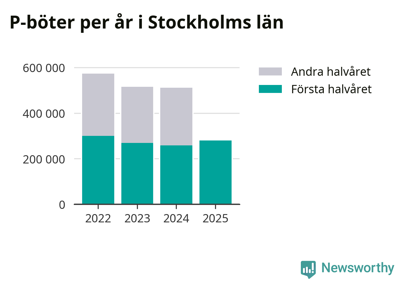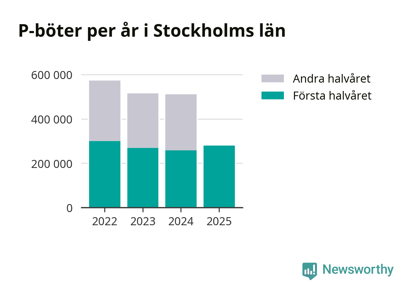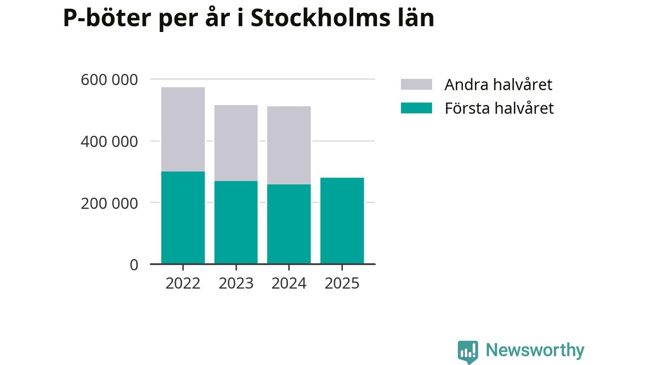 Tittar man på helårssifforna har p-böterna i länet blivit färre varje år sedan 2022. 2024 handlade det om totalt 511 153 parkeringsanmärkningar, till ett totalt värde av omkring 495,2 miljoner kronor. De flesta, 338 837 stycken, utfärdades i Stockholms kommun.