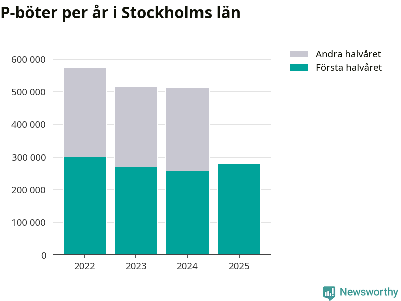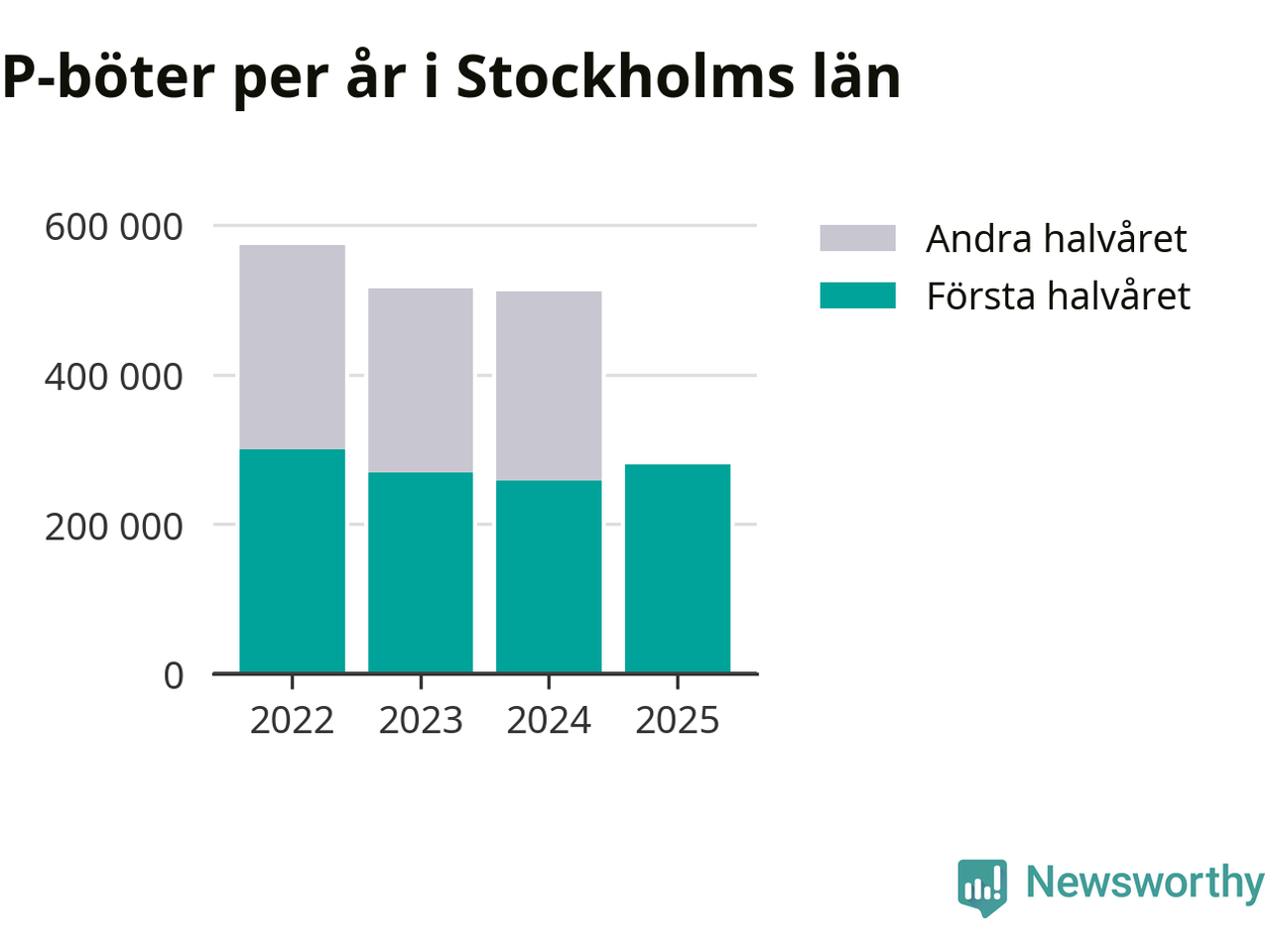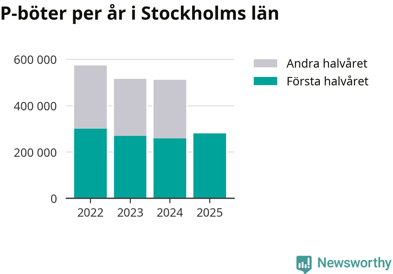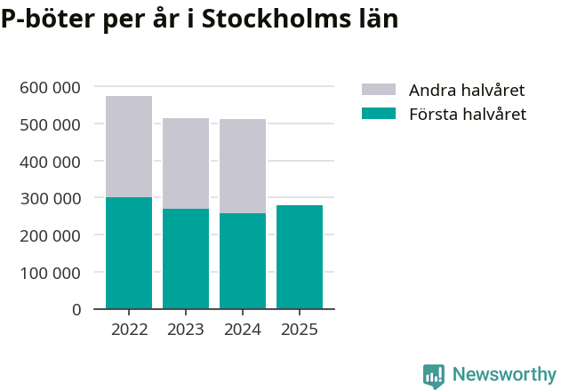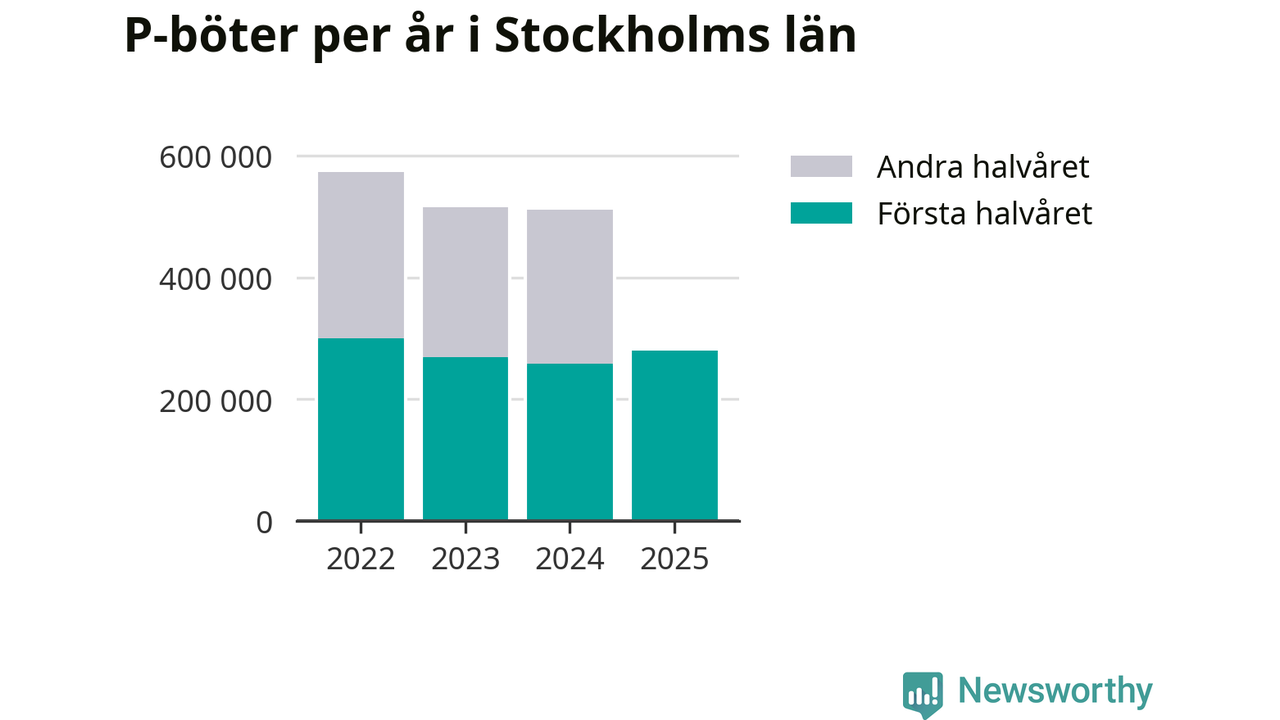 Tittar man på helårssifforna har p-böterna i länet blivit färre varje år sedan 2022. 2024 handlade det om totalt 511 153 parkeringsanmärkningar, till ett totalt värde av omkring 495,2 miljoner kronor. De flesta, 338 837 stycken, utfärdades i Stockholms kommun.