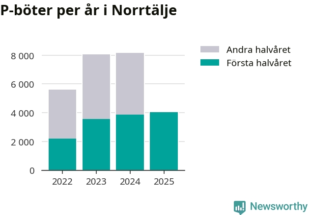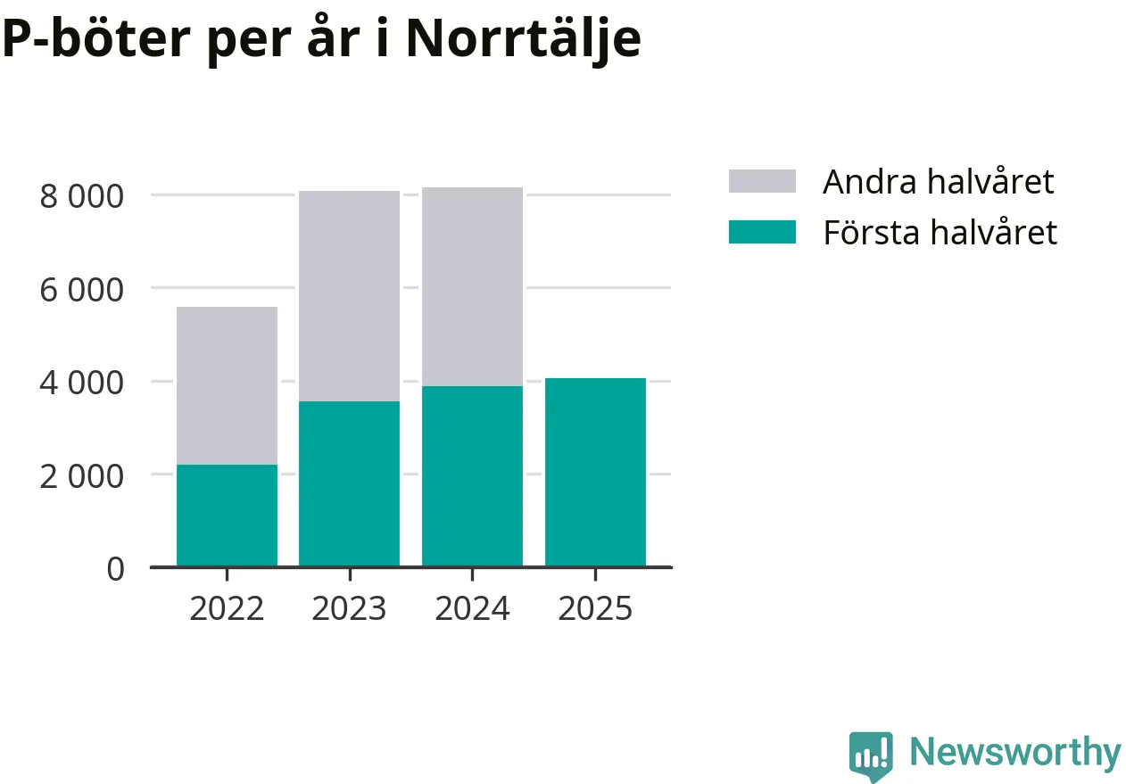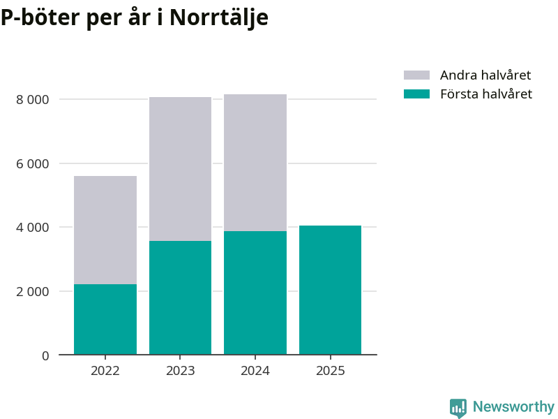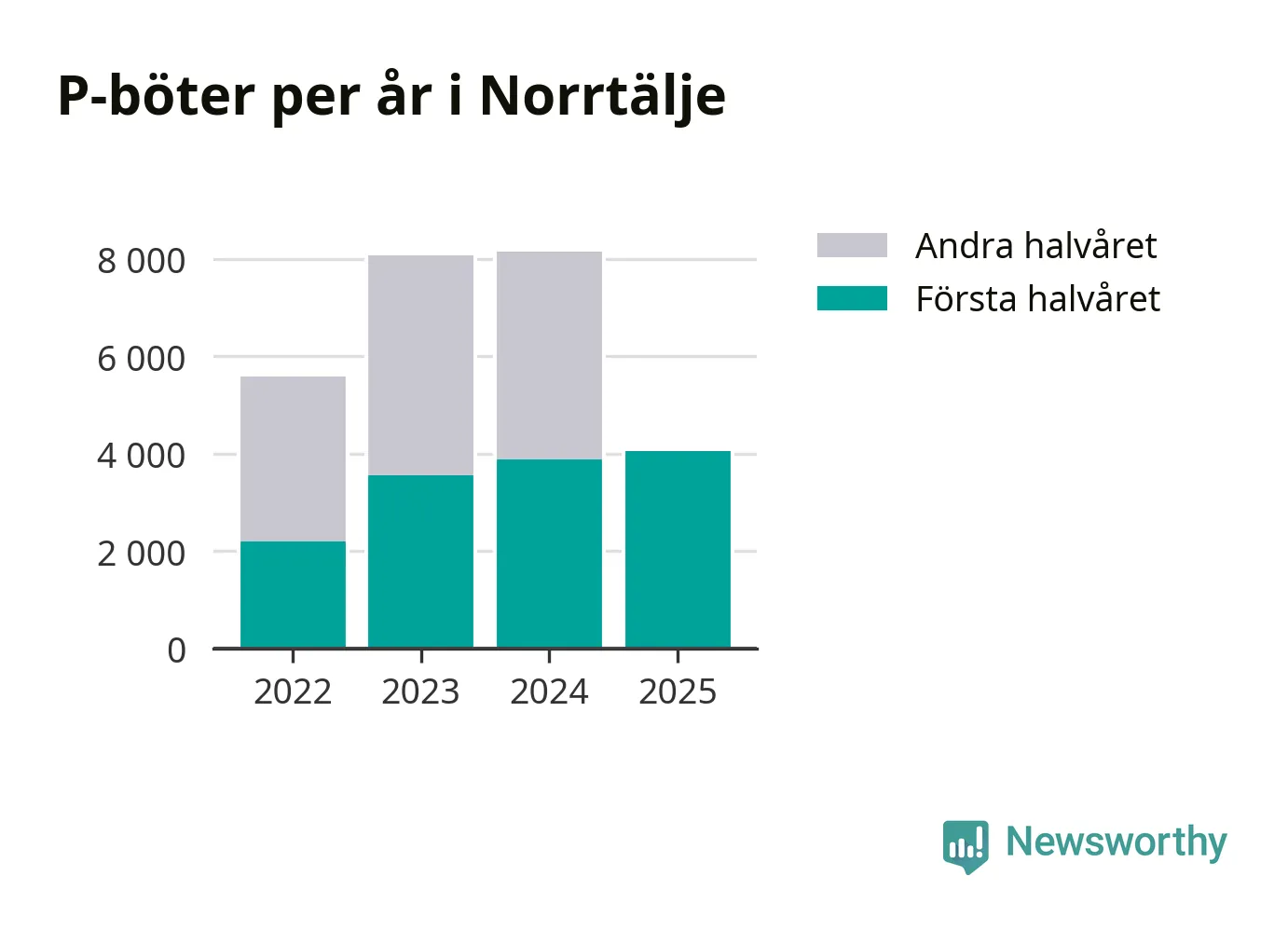 Under första halvåret 2025 har 4 054 parkeringsanmärkningar, med en total felparkeringsavgift på omkring 1,9 miljoner kronor, delats ut på gatumark i Norrtälje kommun. Det är 176 fler än under första halvåret 2024.