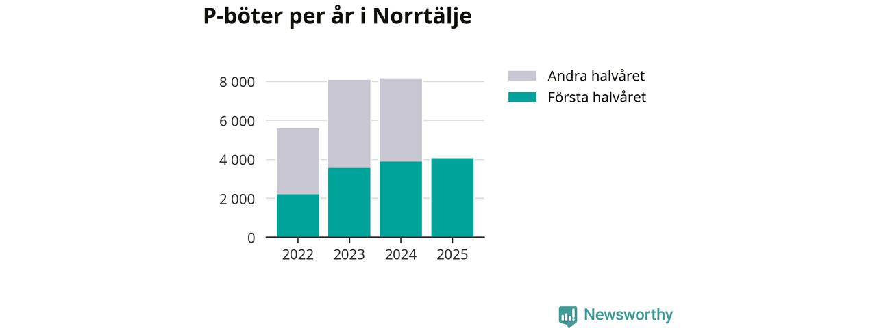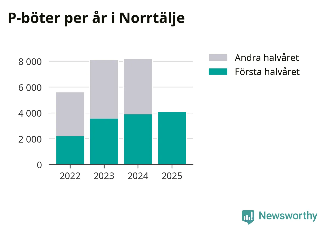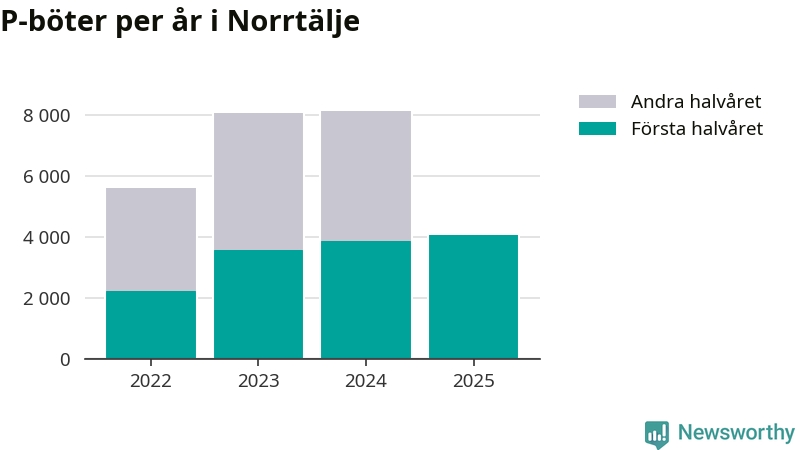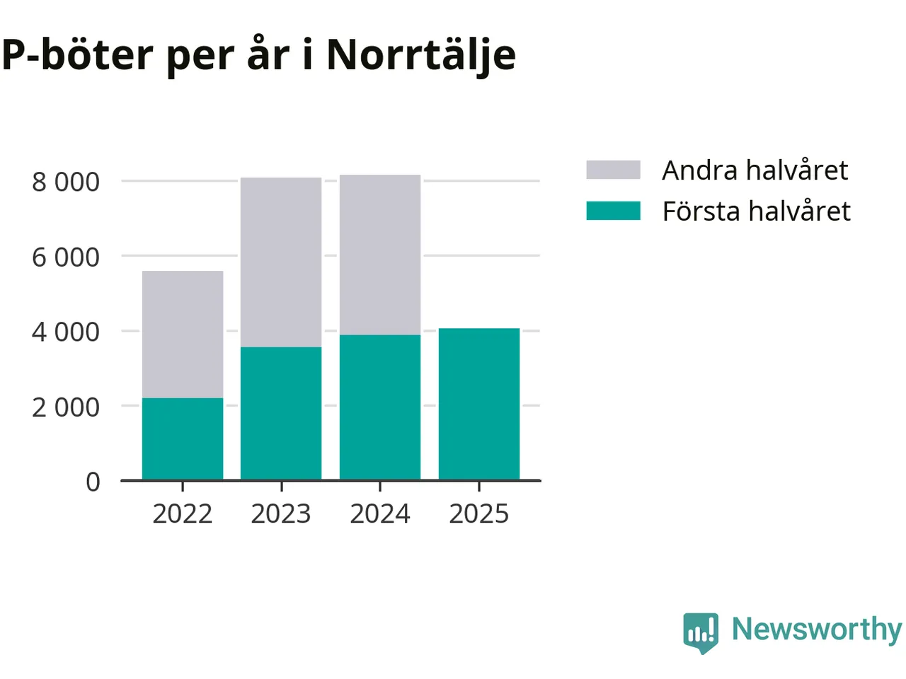 Under första halvåret 2025 har 4 054 parkeringsanmärkningar, med en total felparkeringsavgift på omkring 1,9 miljoner kronor, delats ut på gatumark i Norrtälje kommun. Det är 176 fler än under första halvåret 2024.
