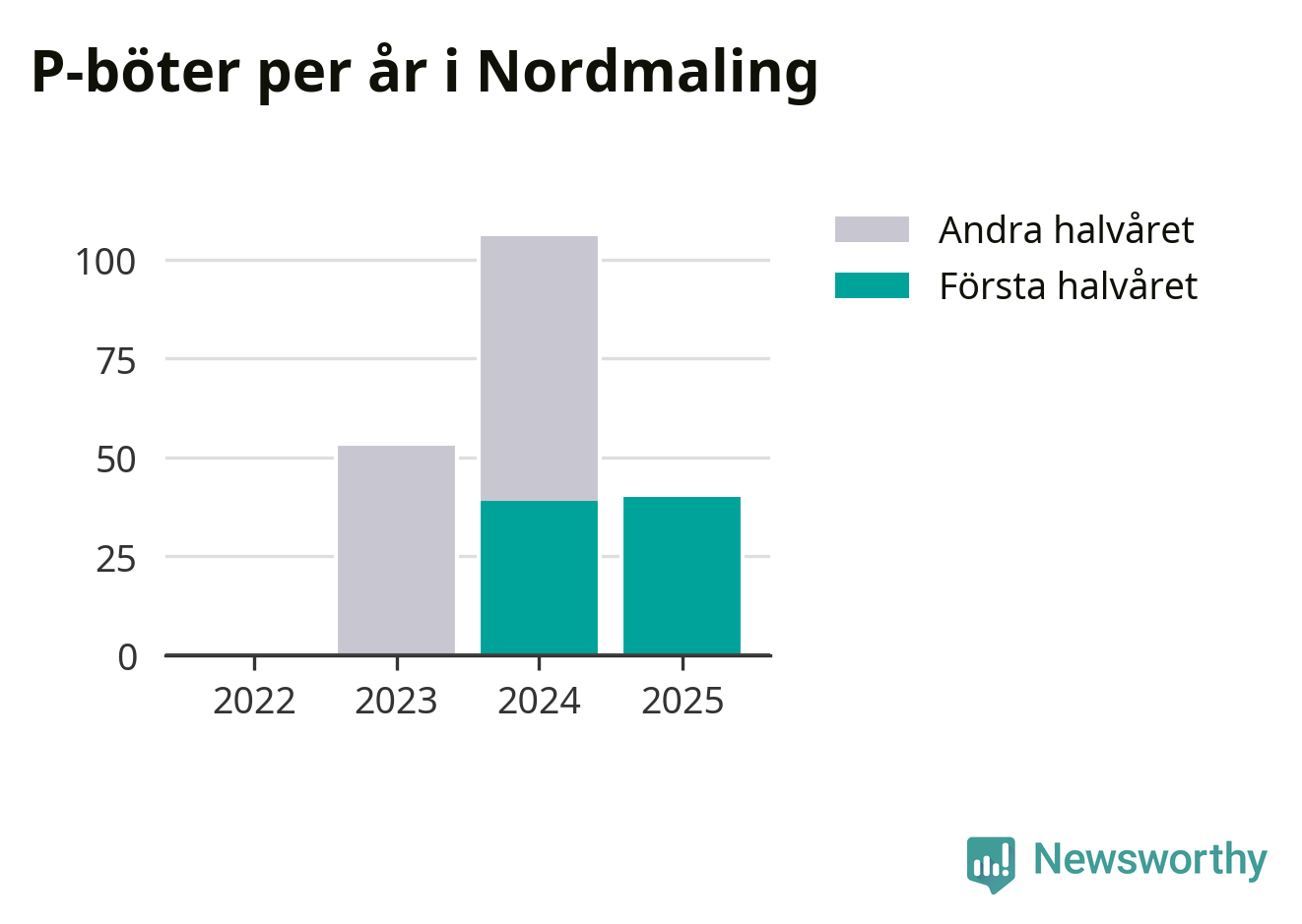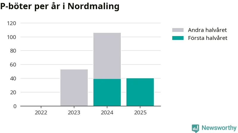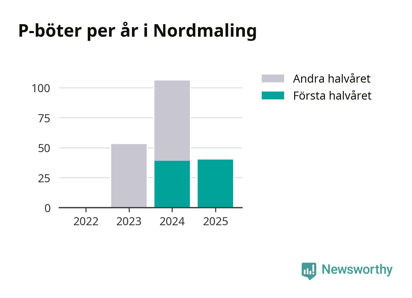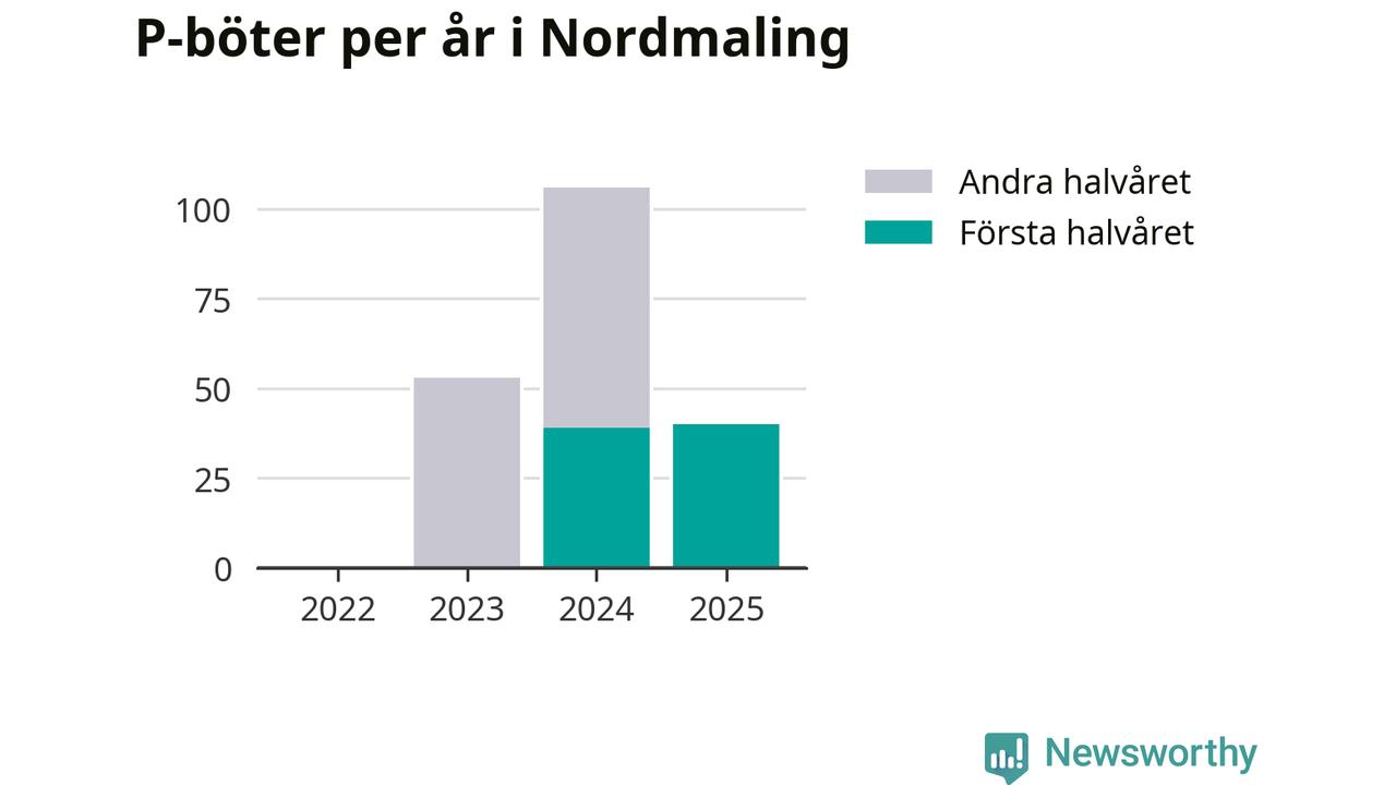 Under första halvåret 2025 har 40 parkeringsanmärkningar, med en total felparkeringsavgift på omkring 16 400 kronor, delats ut på gatumark i Nordmalings kommun. Det är ungefär lika många som året innan.