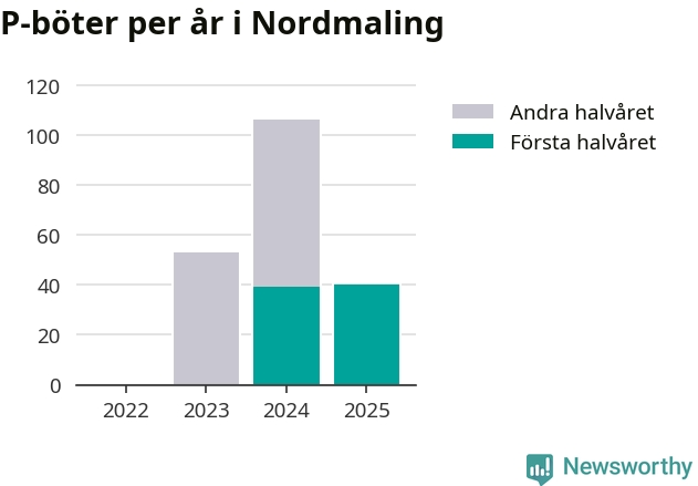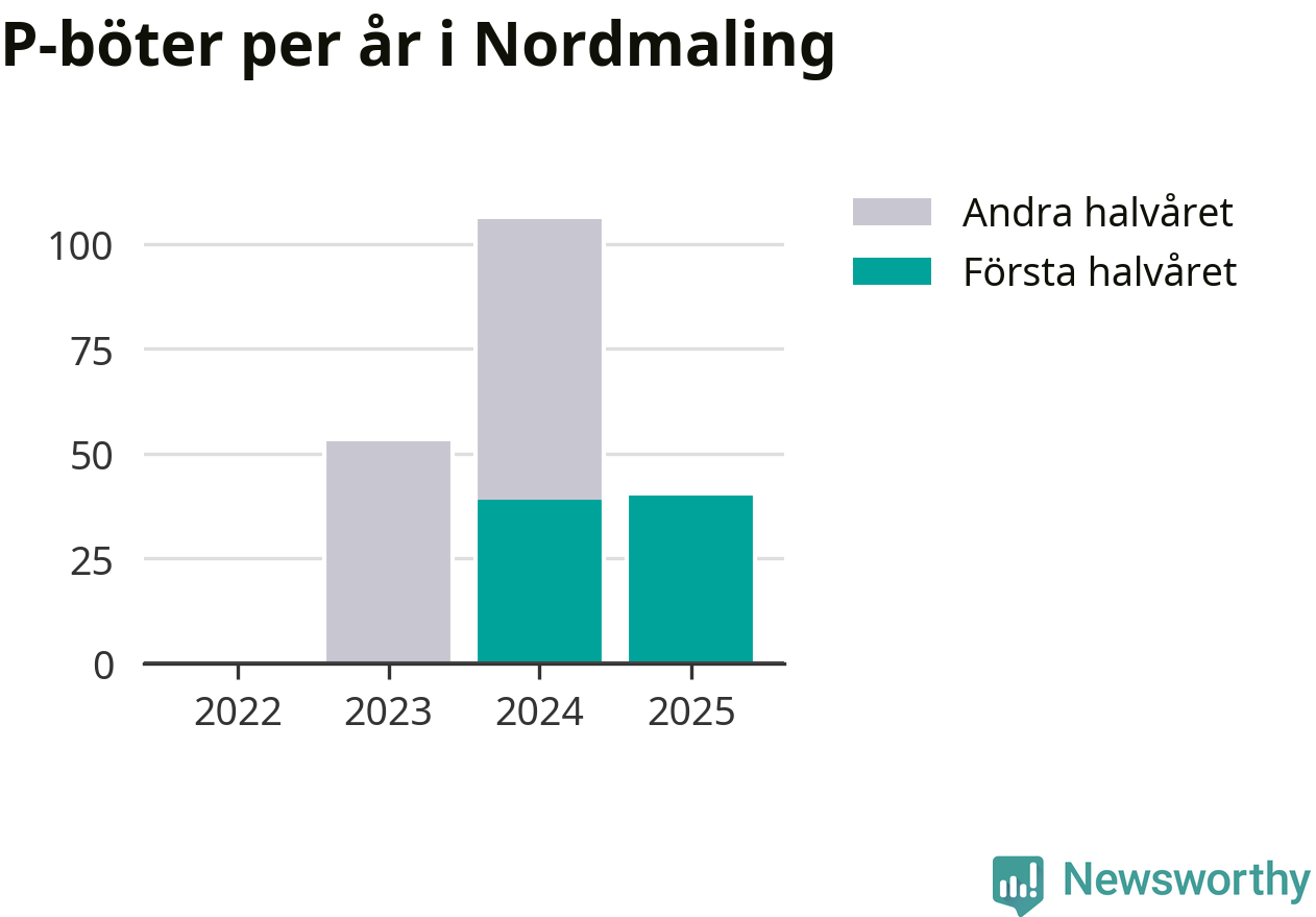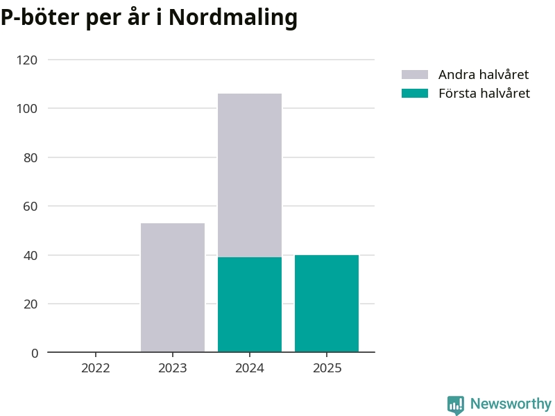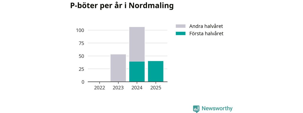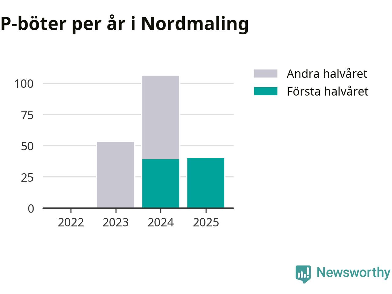 Under första halvåret 2025 har 40 parkeringsanmärkningar, med en total felparkeringsavgift på omkring 16 400 kronor, delats ut på gatumark i Nordmalings kommun. Det är ungefär lika många som året innan.