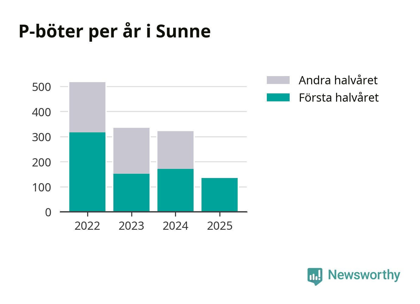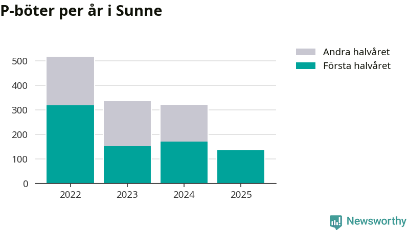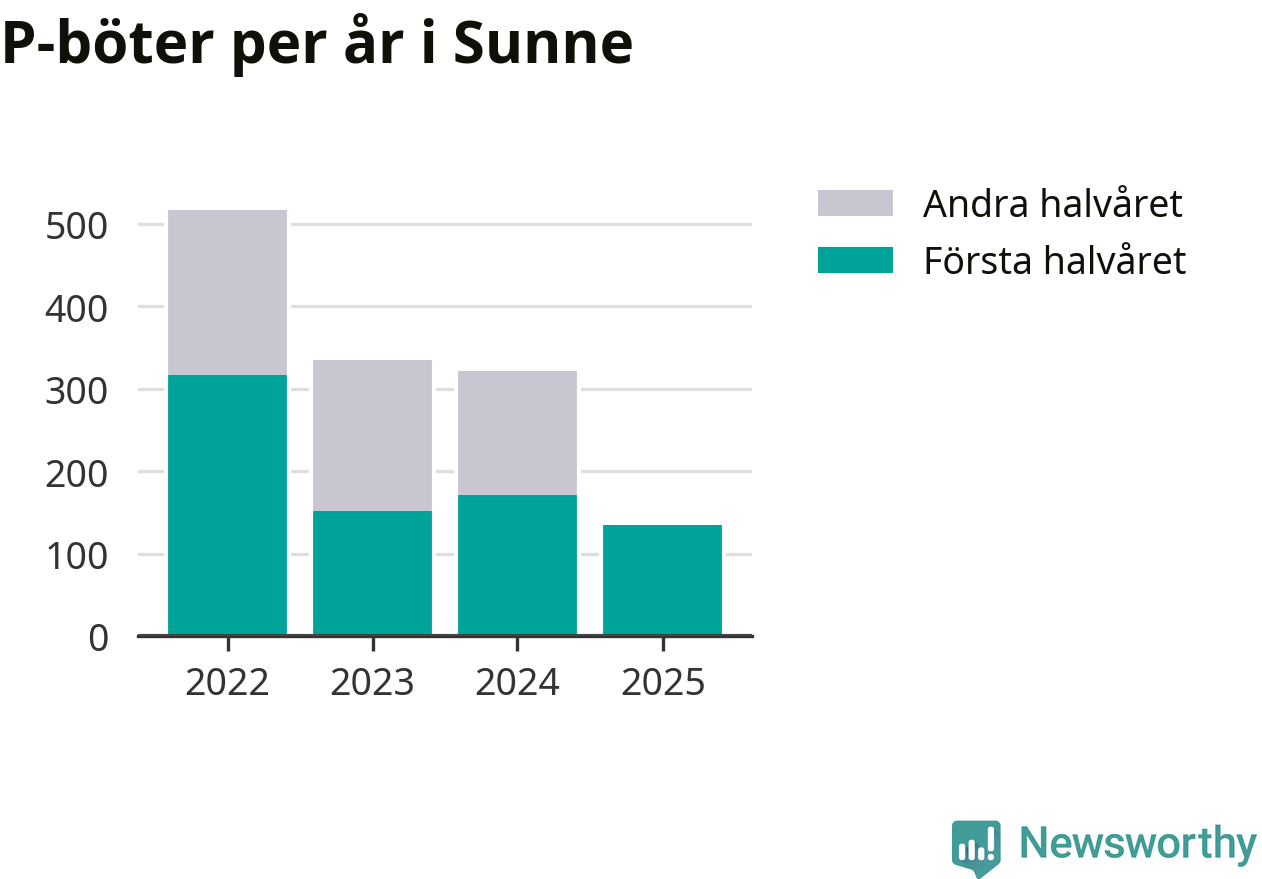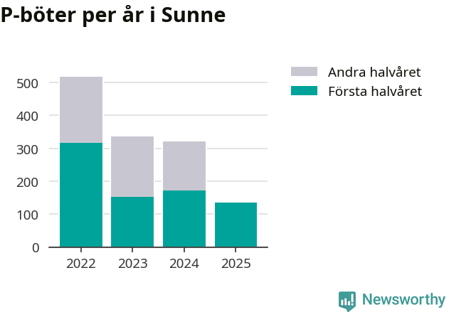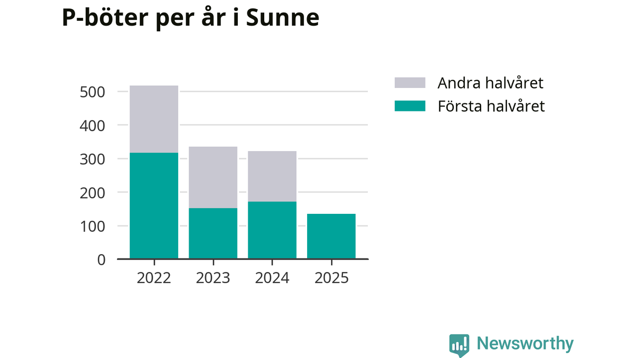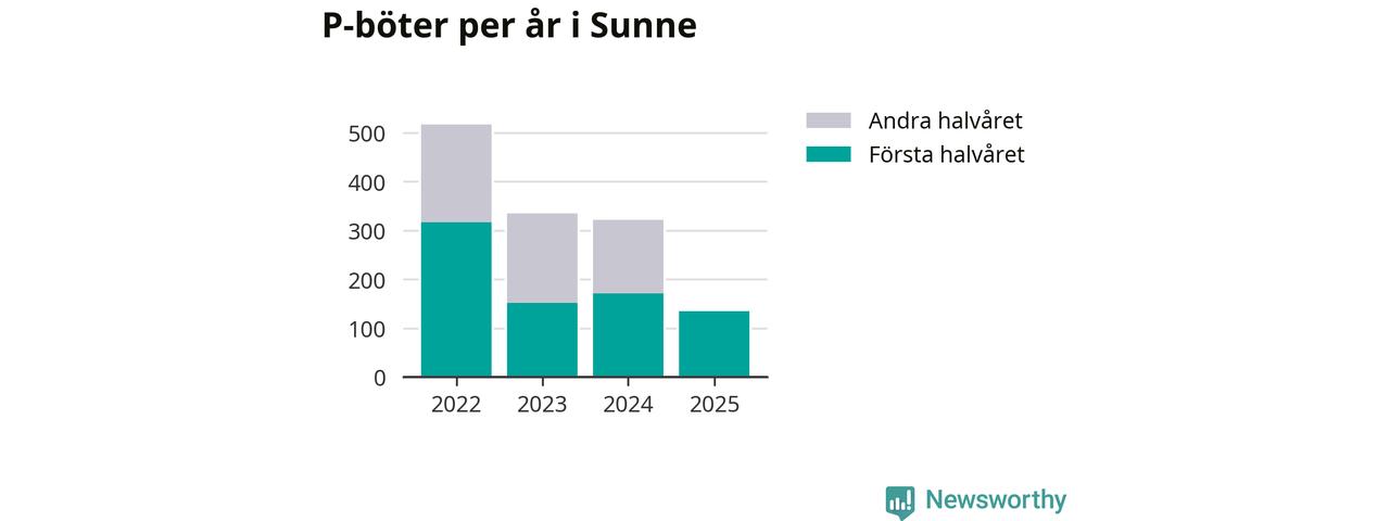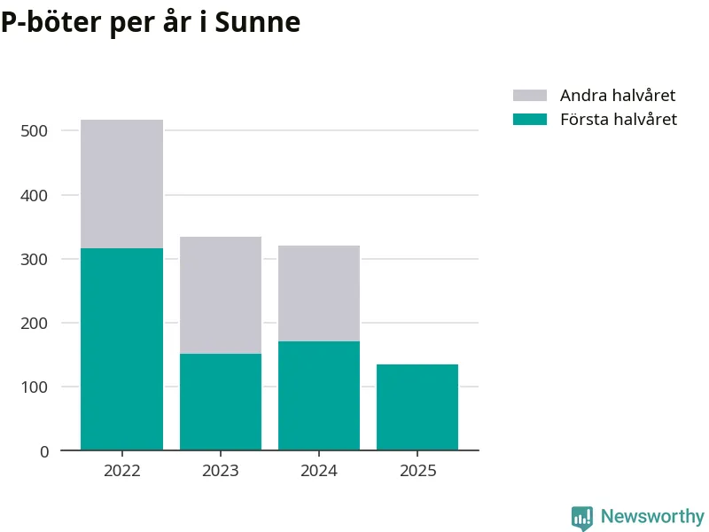 Under första halvåret 2025 har 135 parkeringsanmärkningar, med en total felparkeringsavgift på 43 500 kronor, delats ut på gatumark i Sunne kommun. Det är 36 färre än under första halvåret 2024.