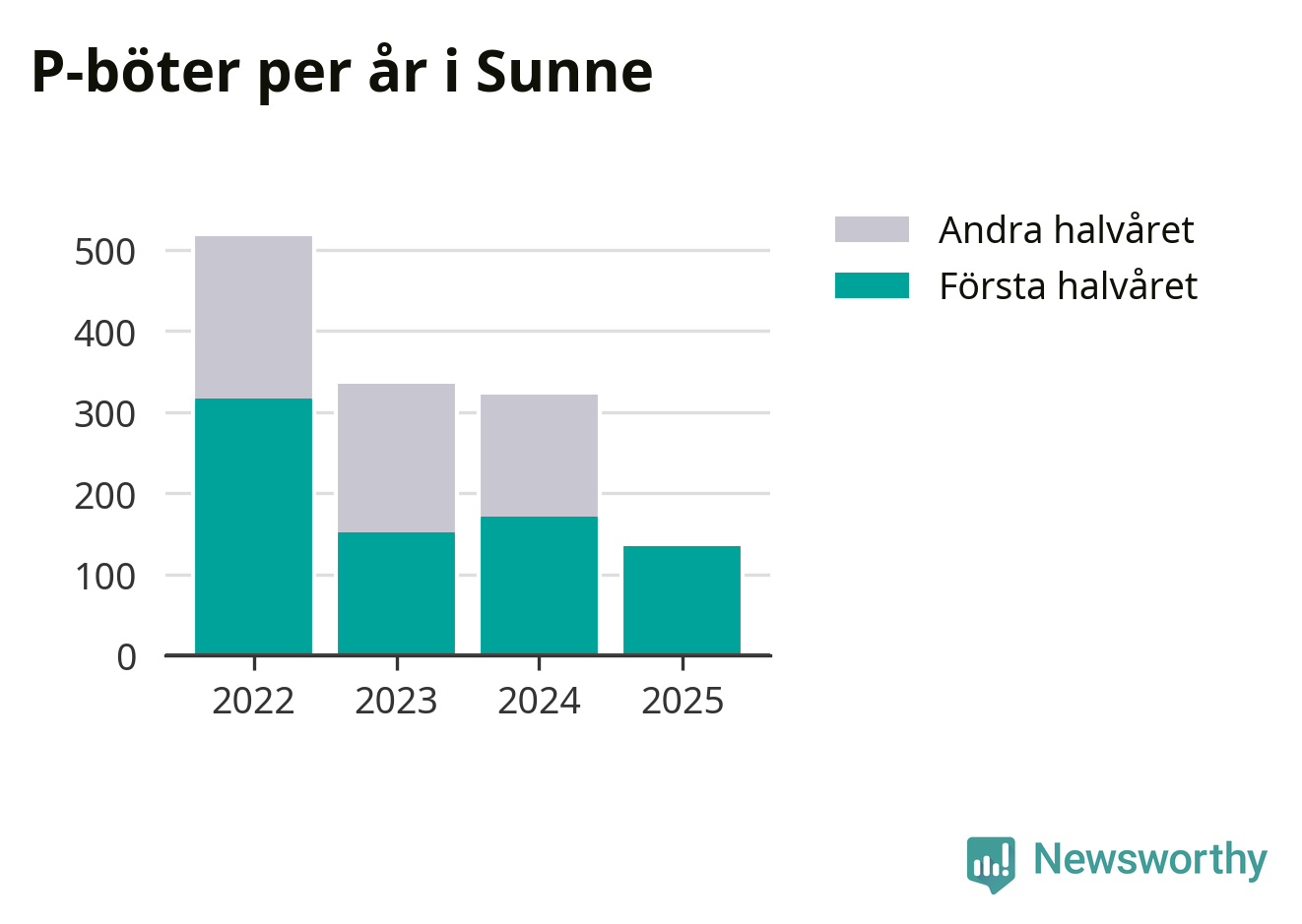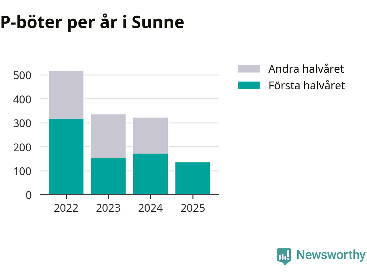 Totalt, från 1 januari 2022 till och med juni 2025, rör det sig om 1 308 parkeringsförsyndelser med ett totalt bötesbelopp på 406 200 kronor i kommunen, visar Newsworthys genomgång av kommunernas parkeringsanmärkningar i Transportstyrelsens databas.
