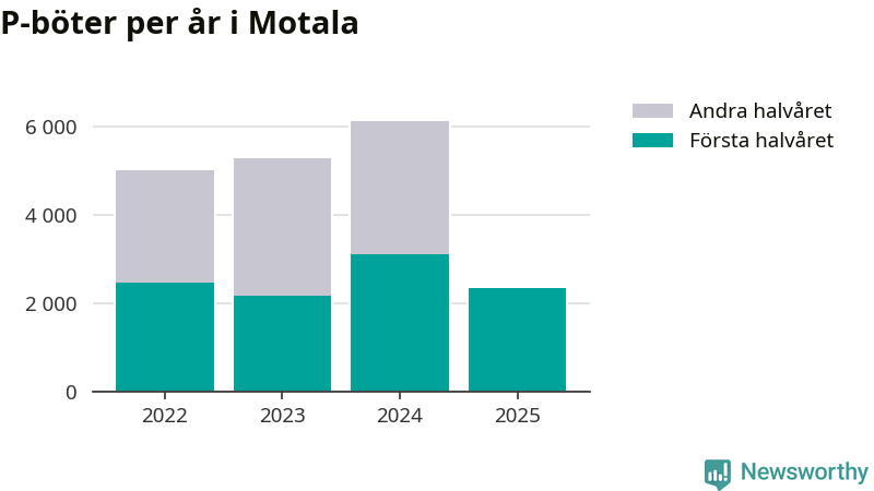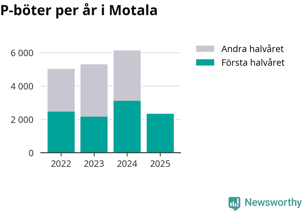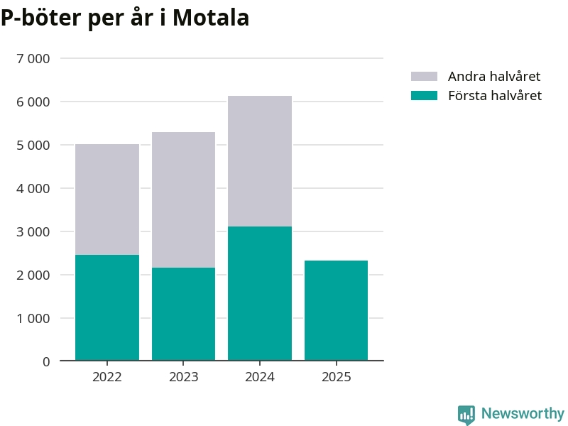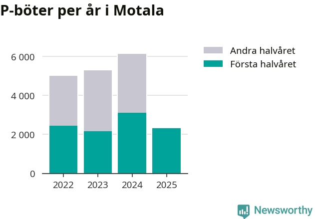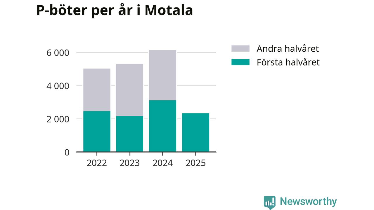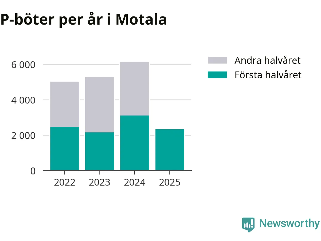 Under första halvåret 2025 har 2 332 parkeringsanmärkningar, med en total felparkeringsavgift på omkring 1,4 miljoner kronor, delats ut på gatumark i Motala kommun. Det är 781 färre än under första halvåret 2024.