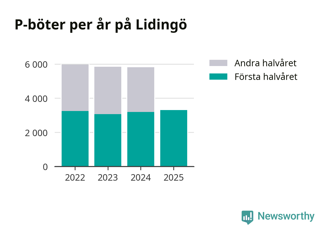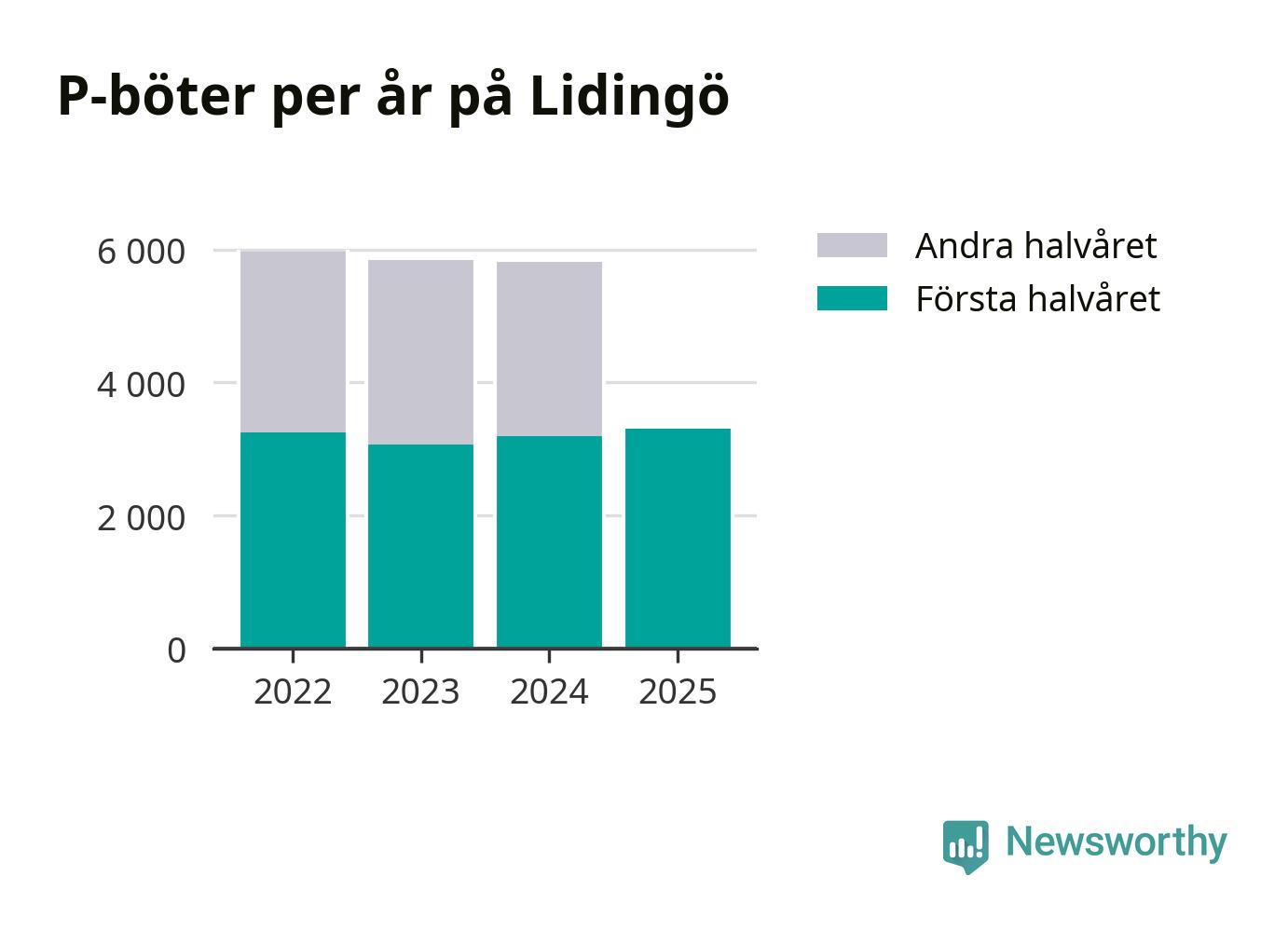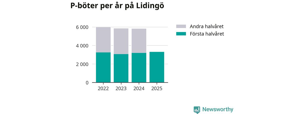 Under första halvåret 2025 har 3 311 parkeringsanmärkningar, med en total felparkeringsavgift på omkring två miljoner kronor, delats ut på gatumark i Lidingö kommun. Det är 119 fler än under första halvåret 2024.