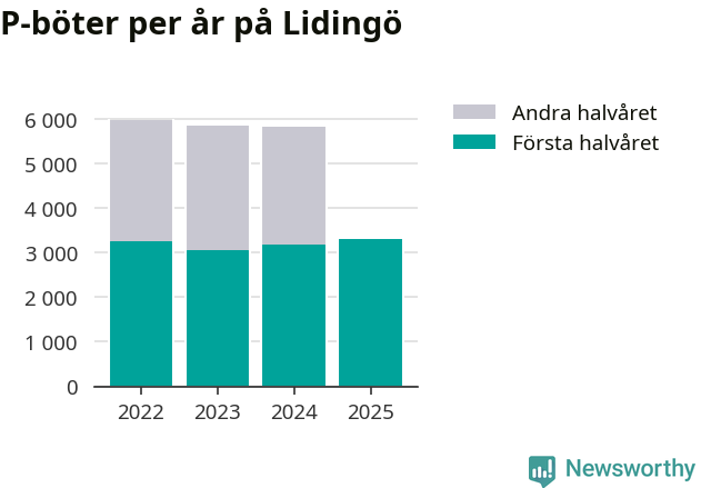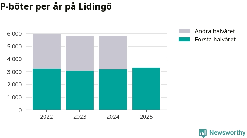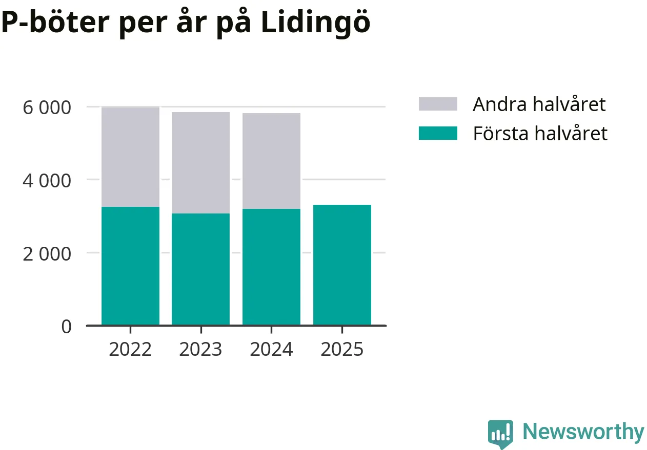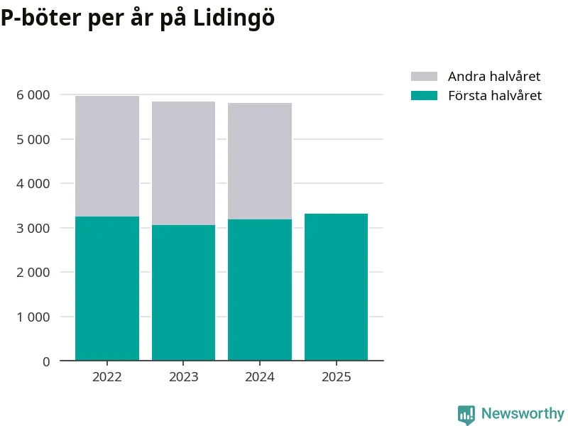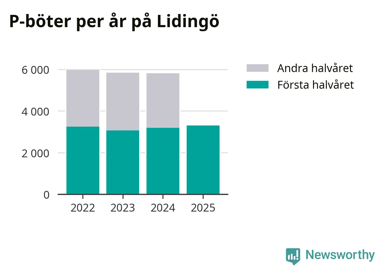 Under första halvåret 2025 har 3 311 parkeringsanmärkningar, med en total felparkeringsavgift på omkring två miljoner kronor, delats ut på gatumark i Lidingö kommun. Det är 119 fler än under första halvåret 2024.