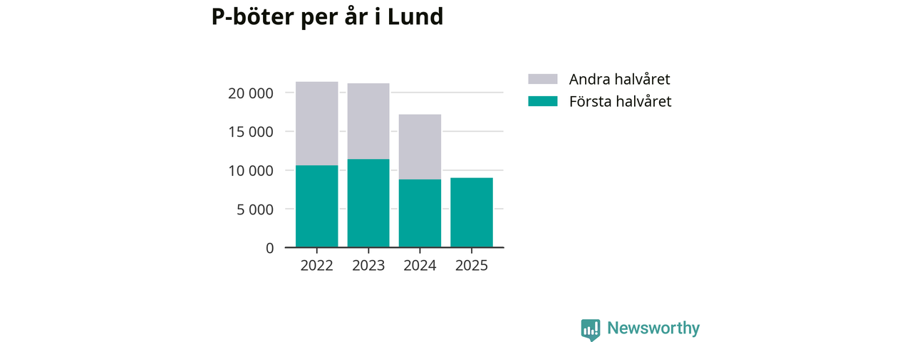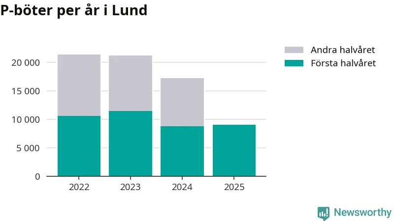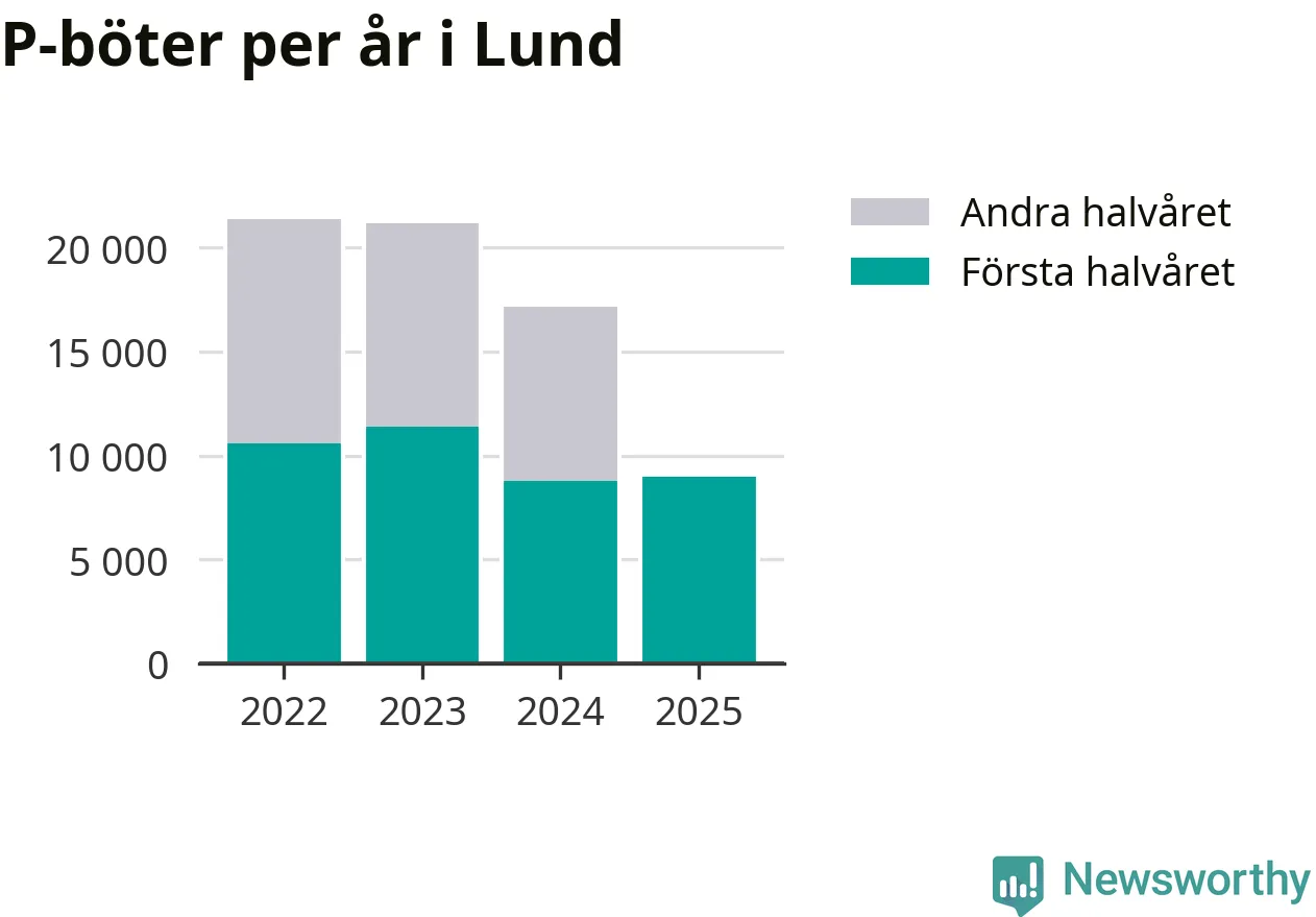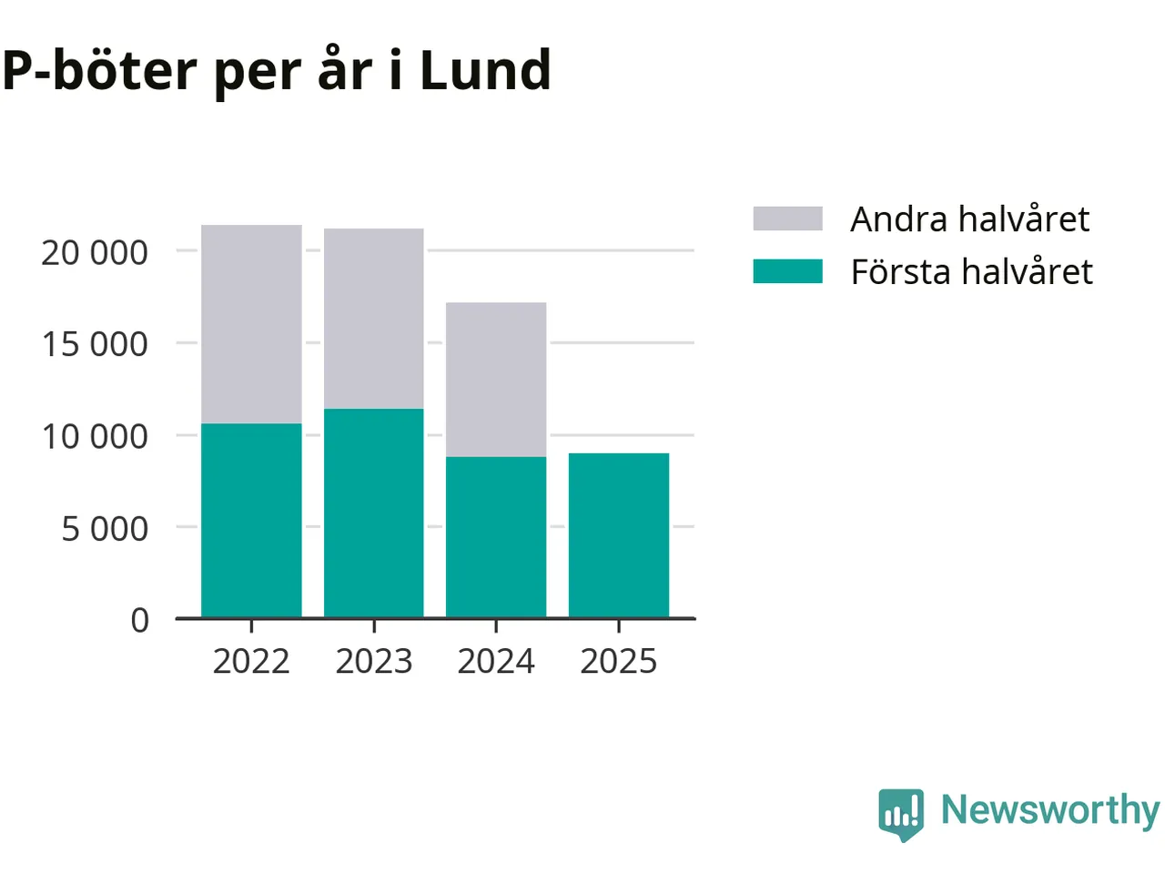 Under första halvåret 2025 har 8 975 parkeringsanmärkningar, med en total felparkeringsavgift på omkring 6,6 miljoner kronor, delats ut på gatumark i Lunds kommun. Det är 208 fler än under första halvåret 2024.