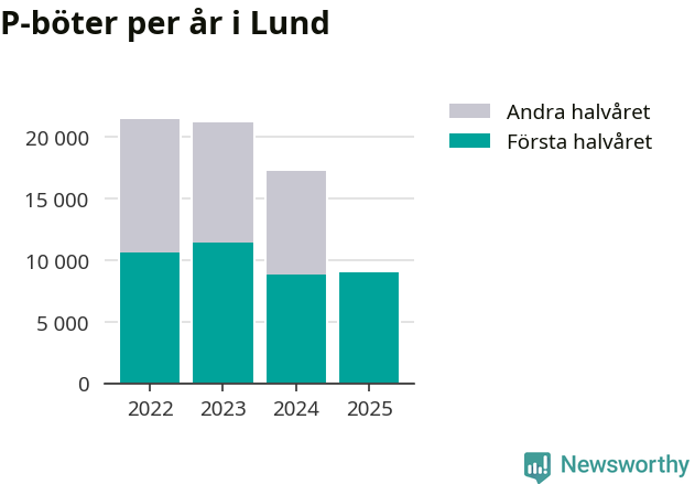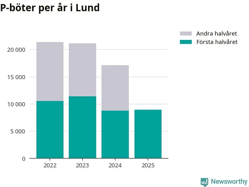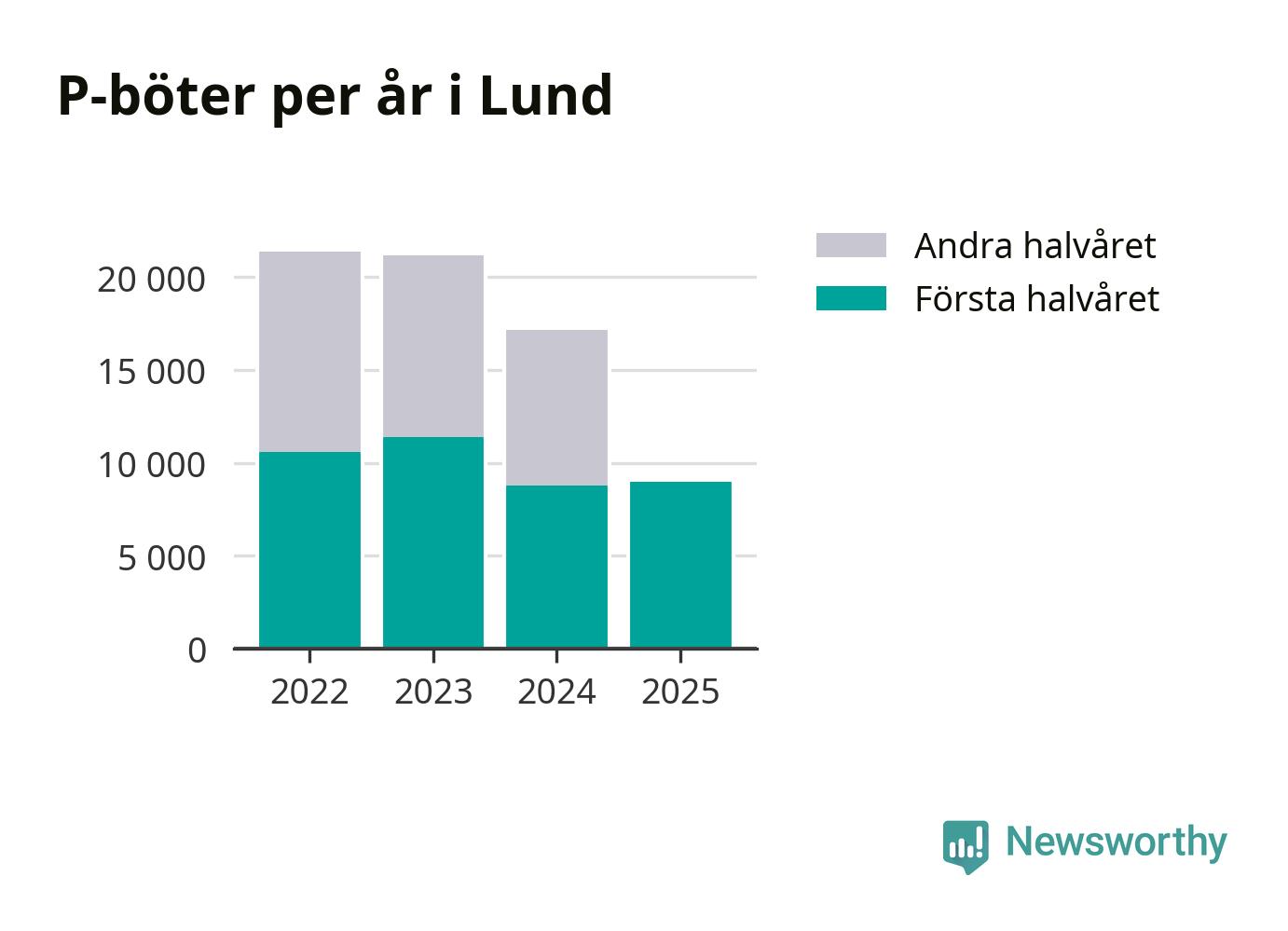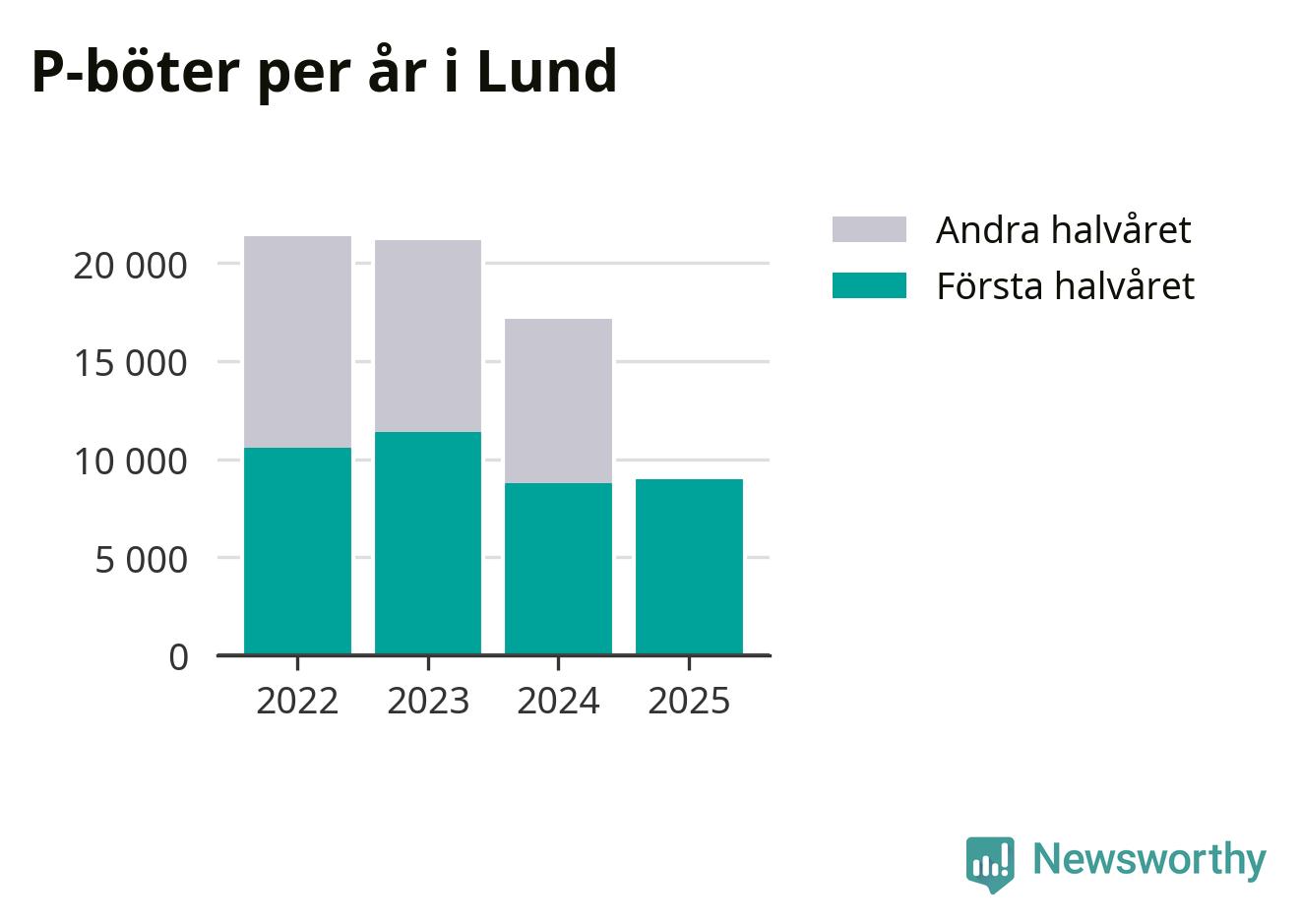 Under första halvåret 2025 har 8 975 parkeringsanmärkningar, med en total felparkeringsavgift på omkring 6,6 miljoner kronor, delats ut på gatumark i Lunds kommun. Det är 208 fler än under första halvåret 2024.