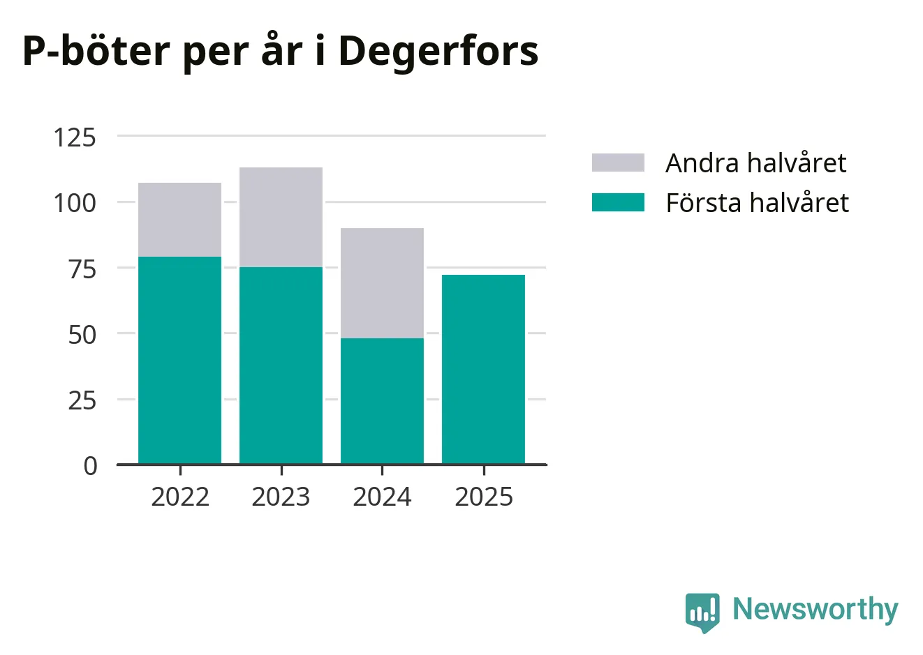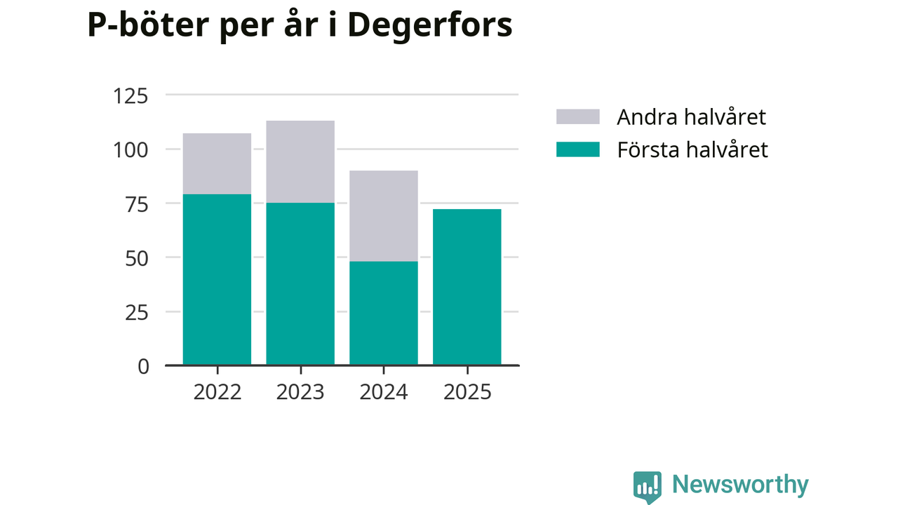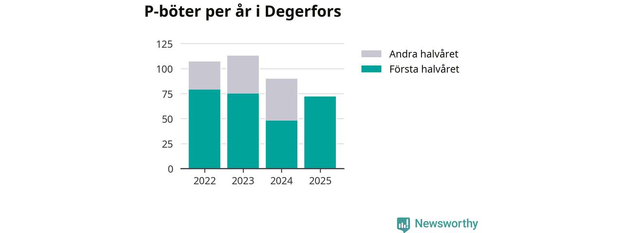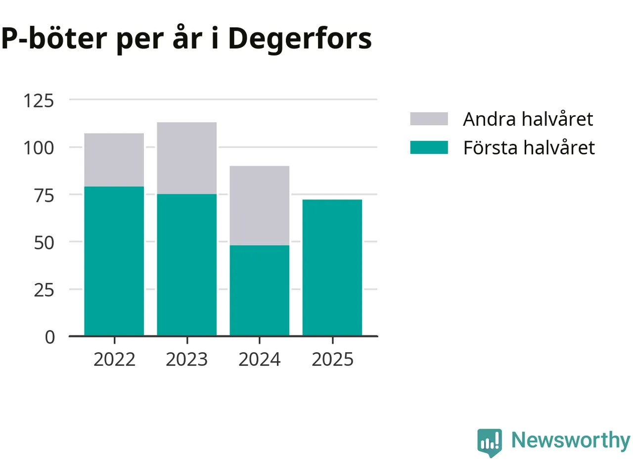 Under första halvåret 2025 har 72 parkeringsanmärkningar, med en total felparkeringsavgift på 38 100 kronor, delats ut på gatumark i Degerfors kommun. Det är 24 fler än under första halvåret 2024.