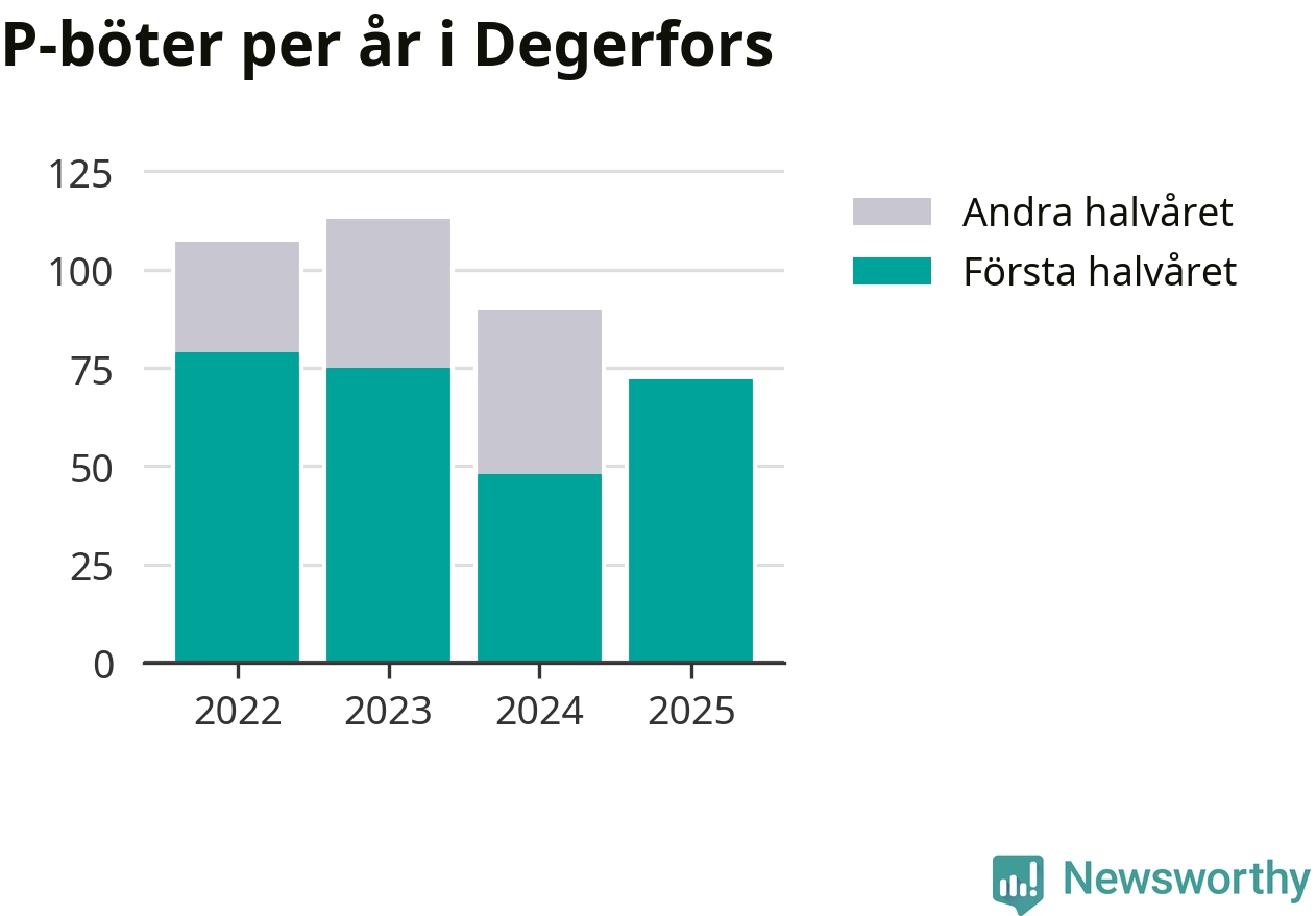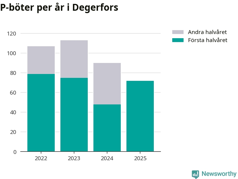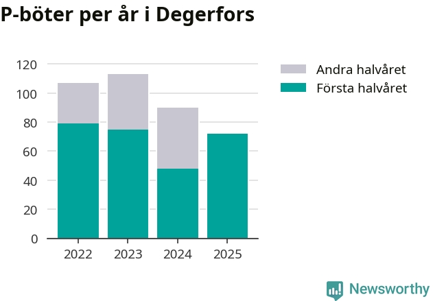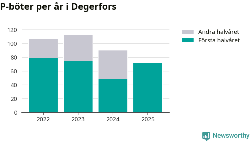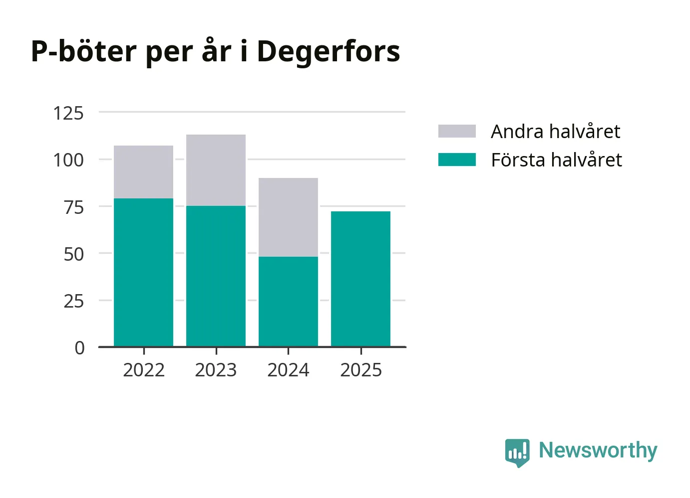 Under första halvåret 2025 har 72 parkeringsanmärkningar, med en total felparkeringsavgift på 38 100 kronor, delats ut på gatumark i Degerfors kommun. Det är 24 fler än under första halvåret 2024.