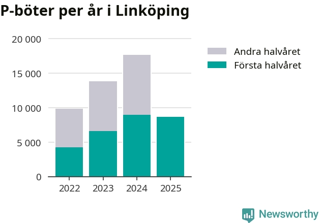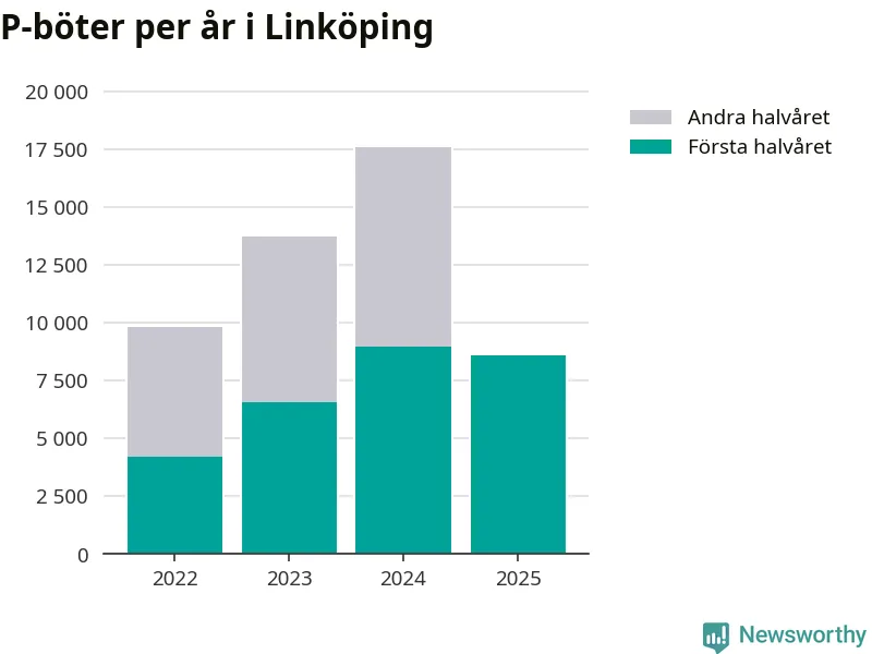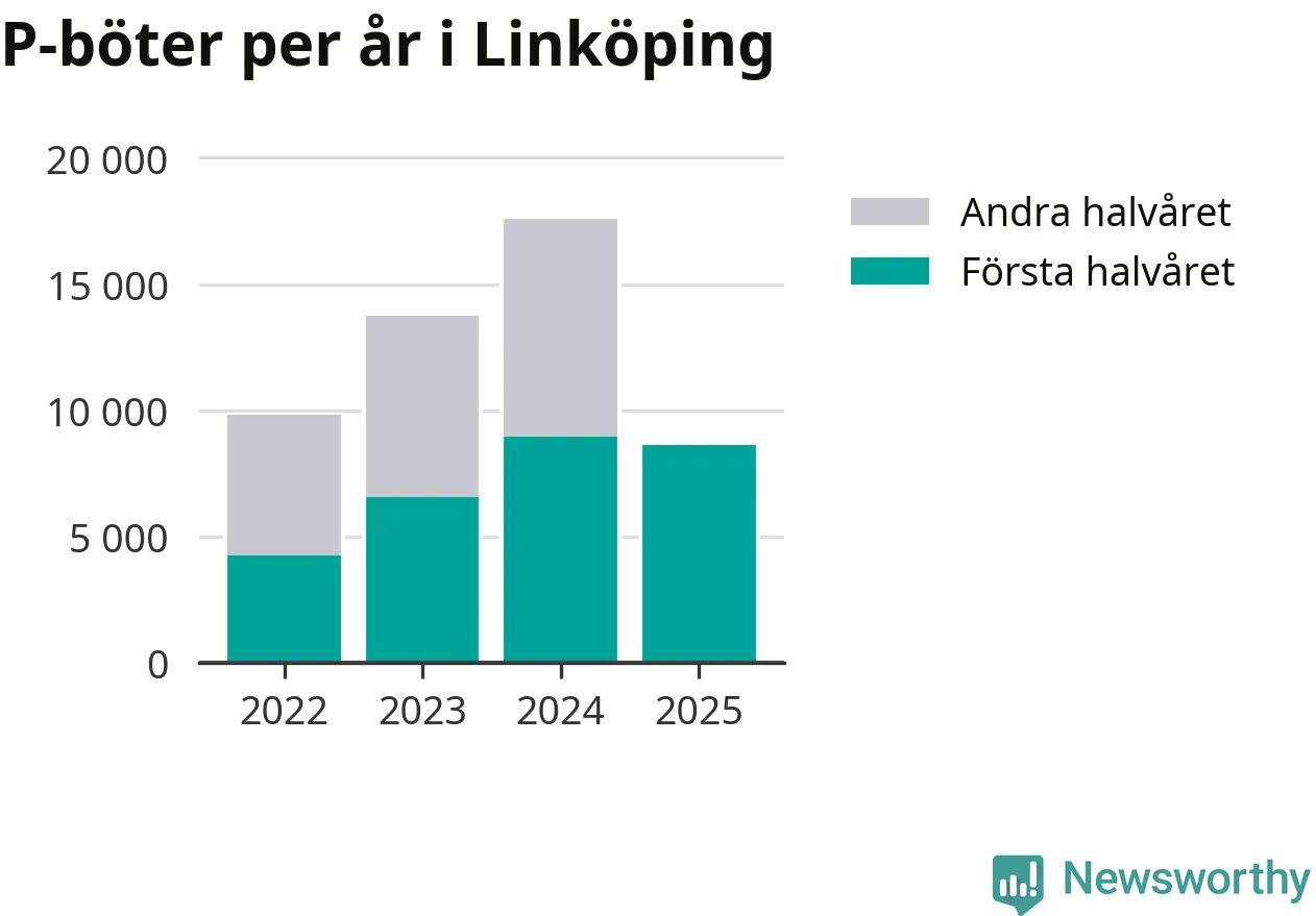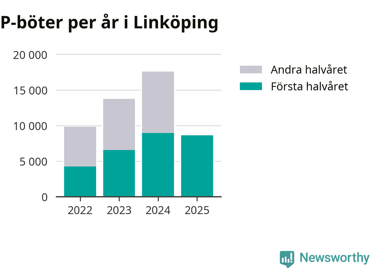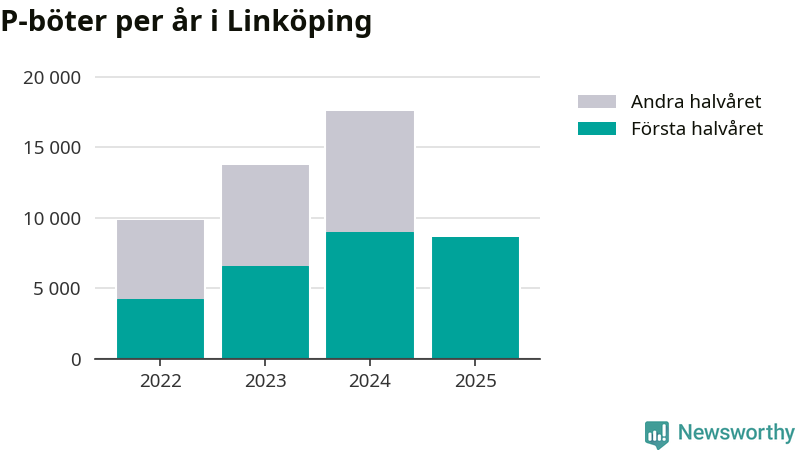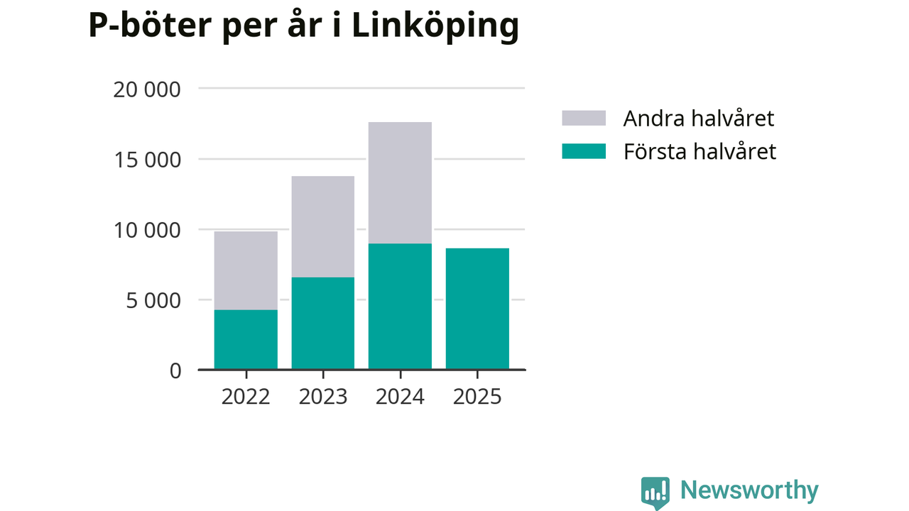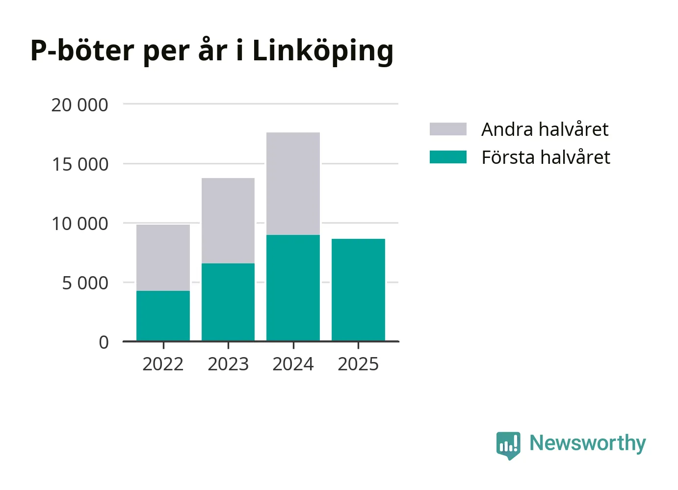 Totalt, från 1 januari 2022 till och med juni 2025, rör det sig om 49 814 parkeringsförsyndelser med ett totalt bötesbelopp på omkring 28 miljoner kronor i kommunen, visar Newsworthys genomgång av kommunernas parkeringsanmärkningar i Transportstyrelsens databas.