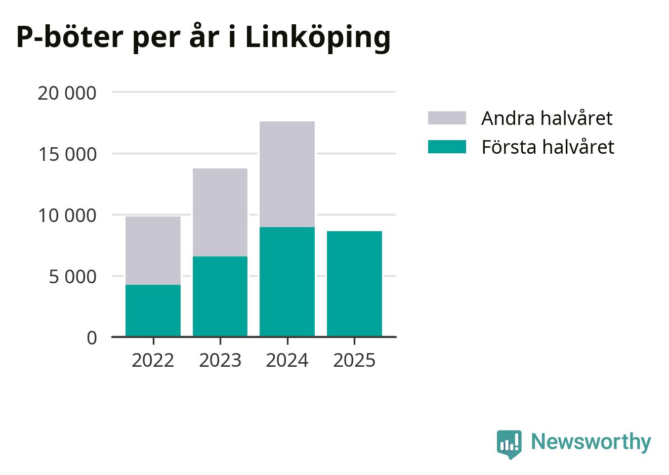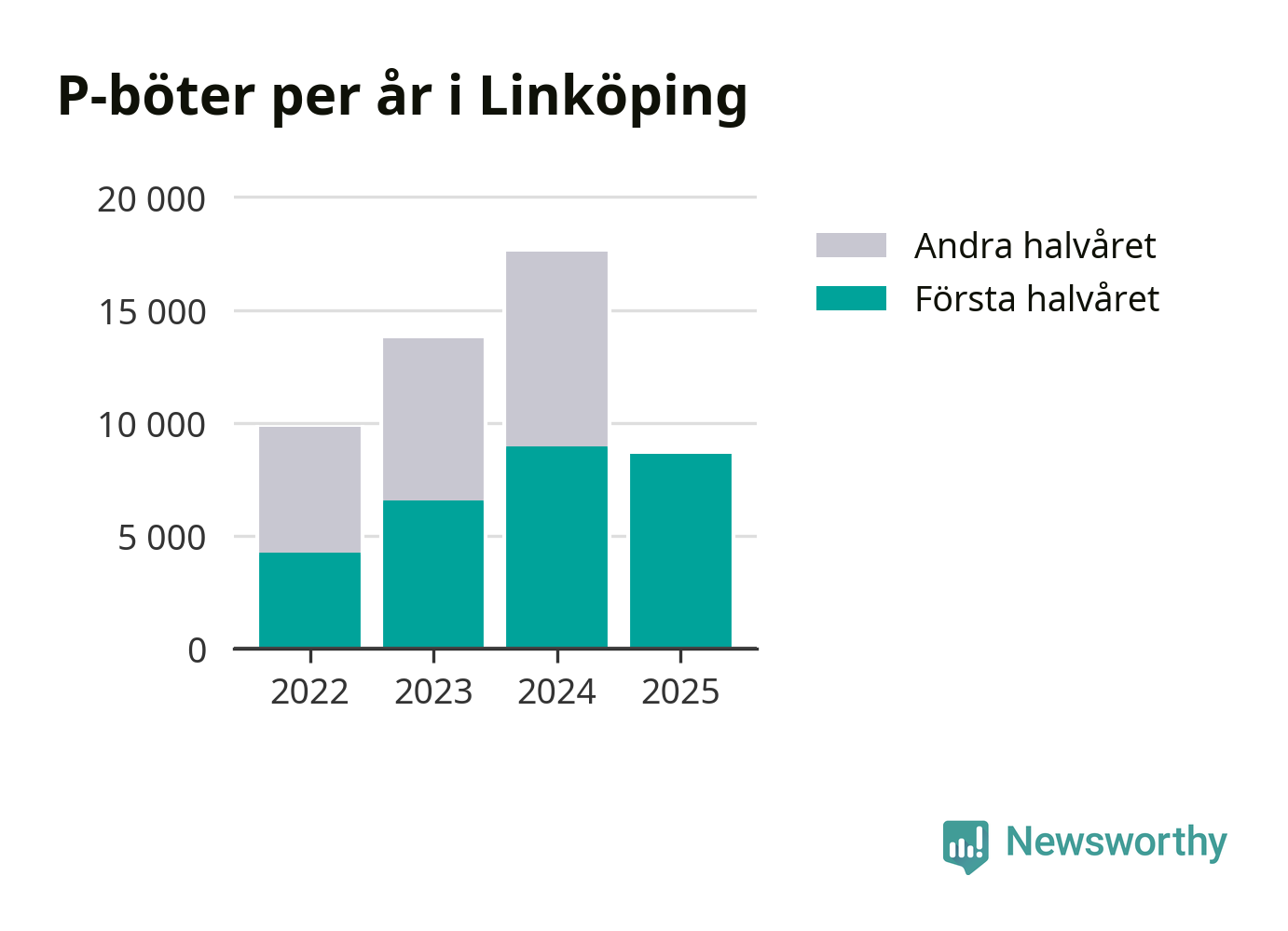 Under första halvåret 2025 har 8 625 parkeringsanmärkningar, med en total felparkeringsavgift på omkring 4,7 miljoner kronor, delats ut på gatumark i Linköpings kommun. Det är 331 färre än under första halvåret 2024.