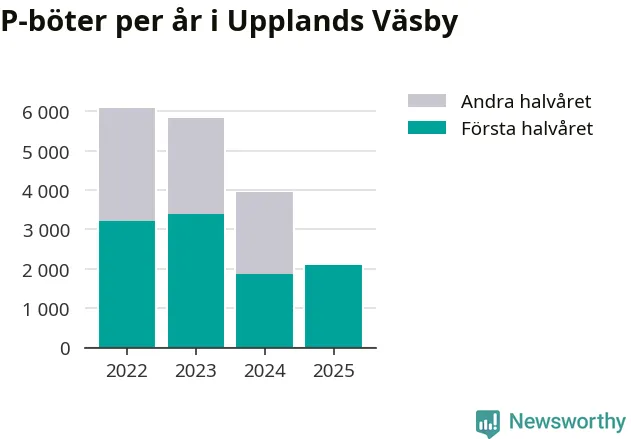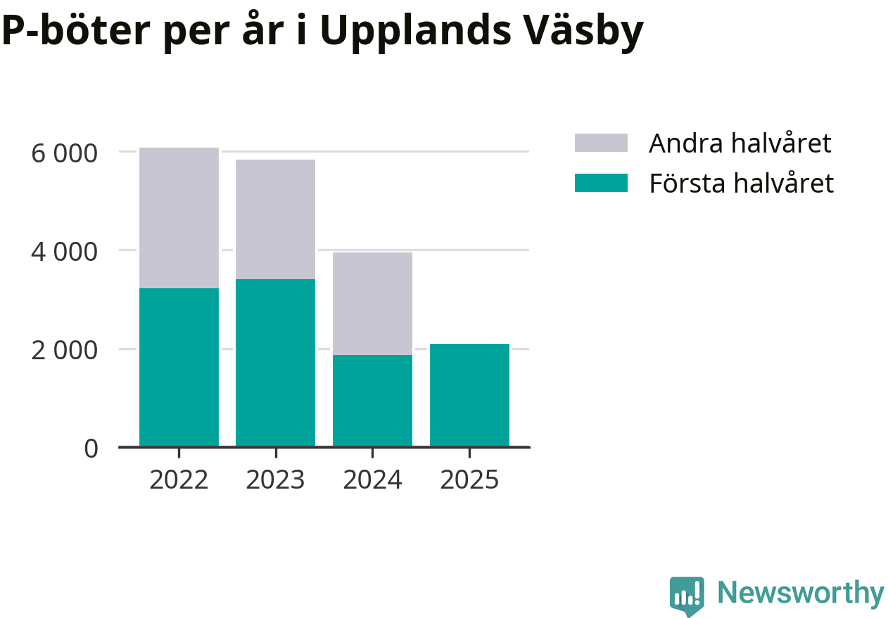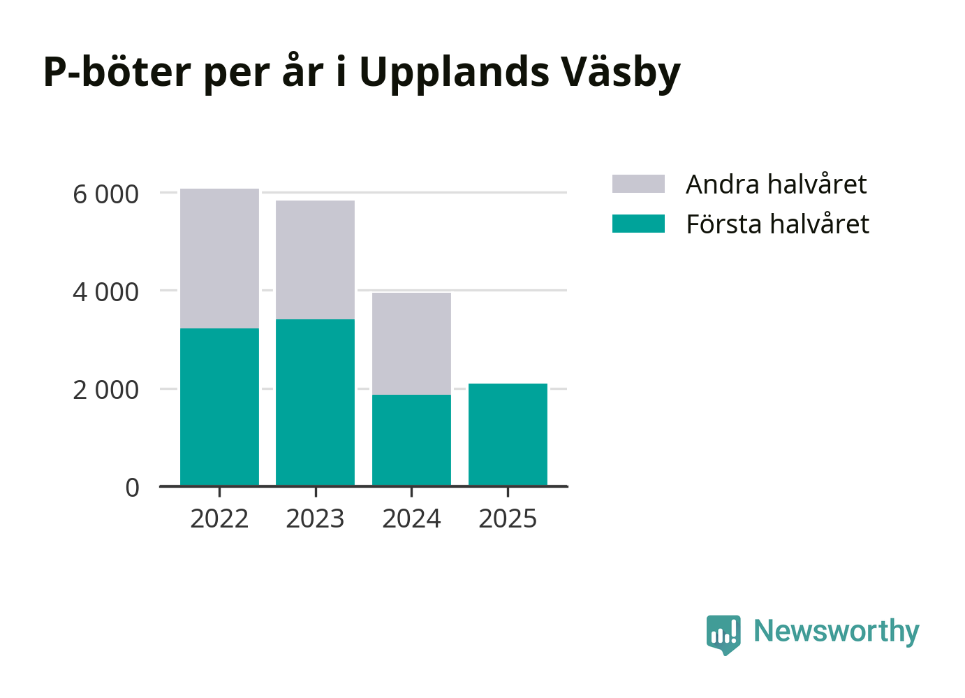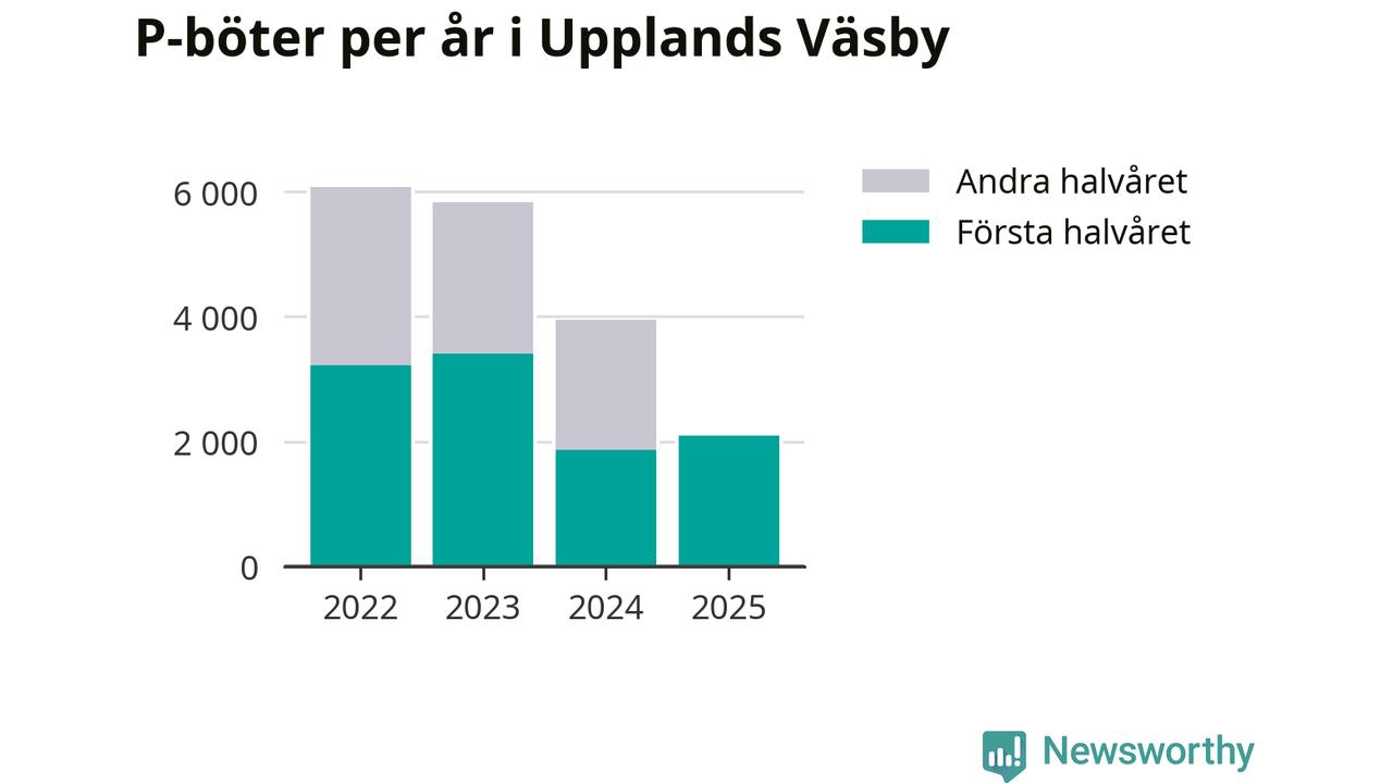 Under första halvåret 2025 har 2 091 parkeringsanmärkningar, med en total felparkeringsavgift på omkring en miljon kronor, delats ut på gatumark i Upplands Väsby kommun. Det är 221 fler än under första halvåret 2024.