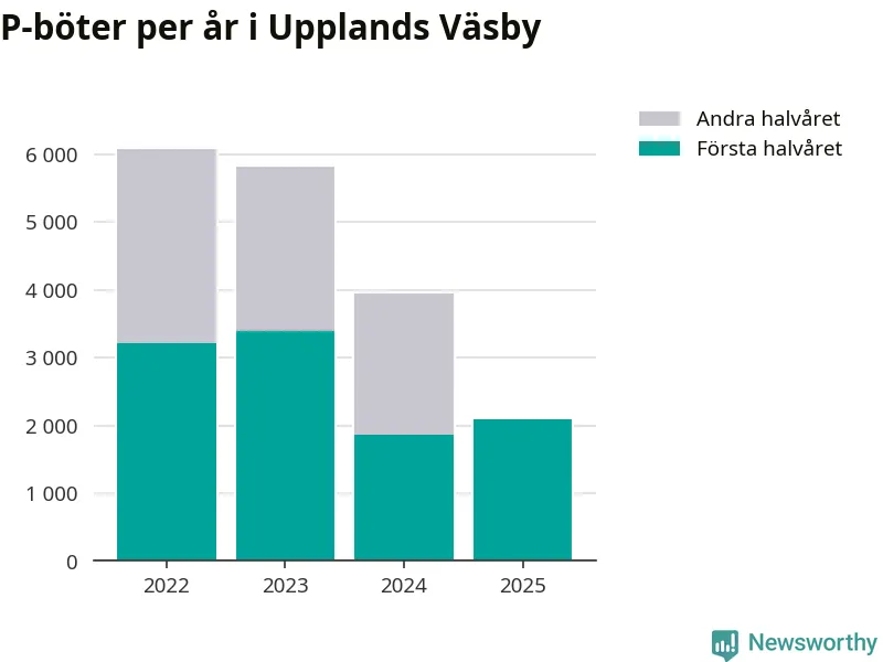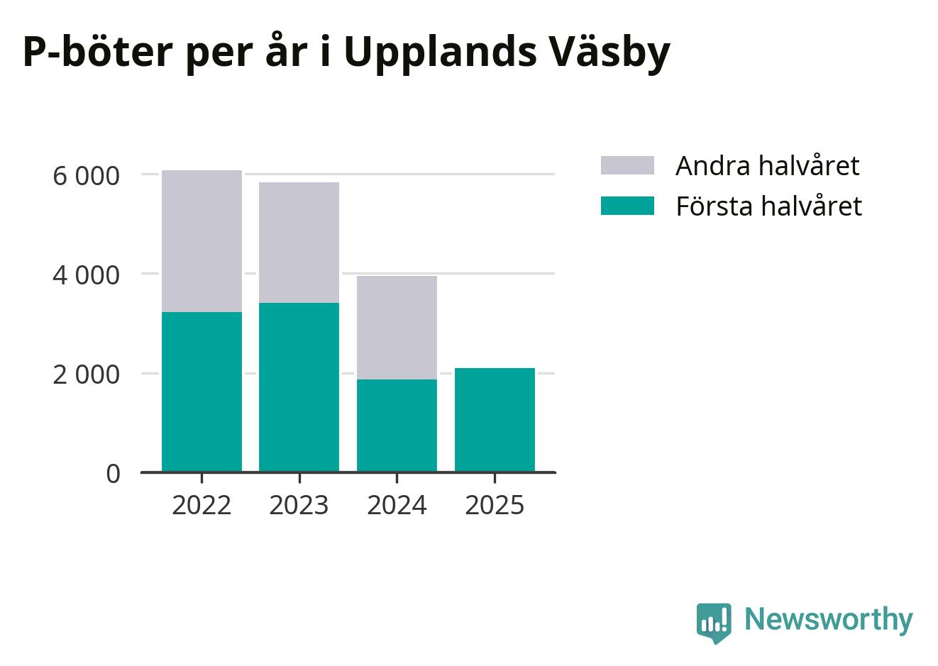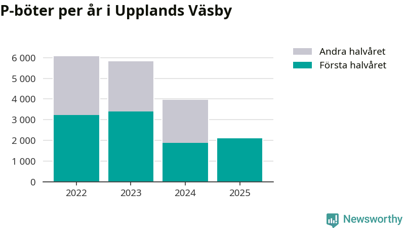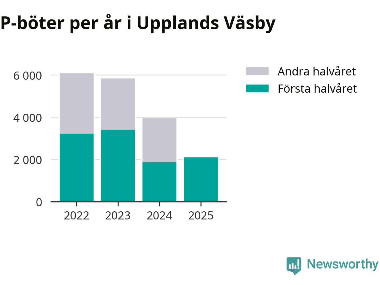 Under första halvåret 2025 har 2 091 parkeringsanmärkningar, med en total felparkeringsavgift på omkring en miljon kronor, delats ut på gatumark i Upplands Väsby kommun. Det är 221 fler än under första halvåret 2024.