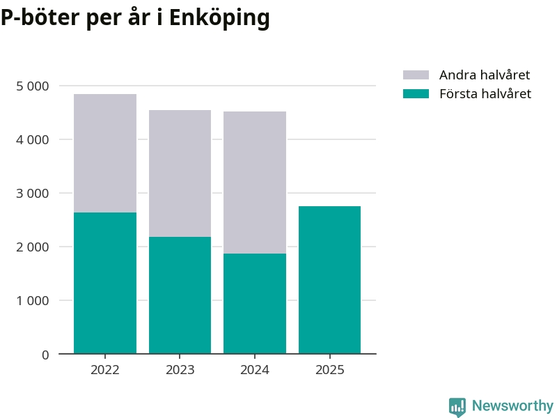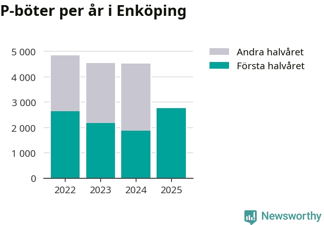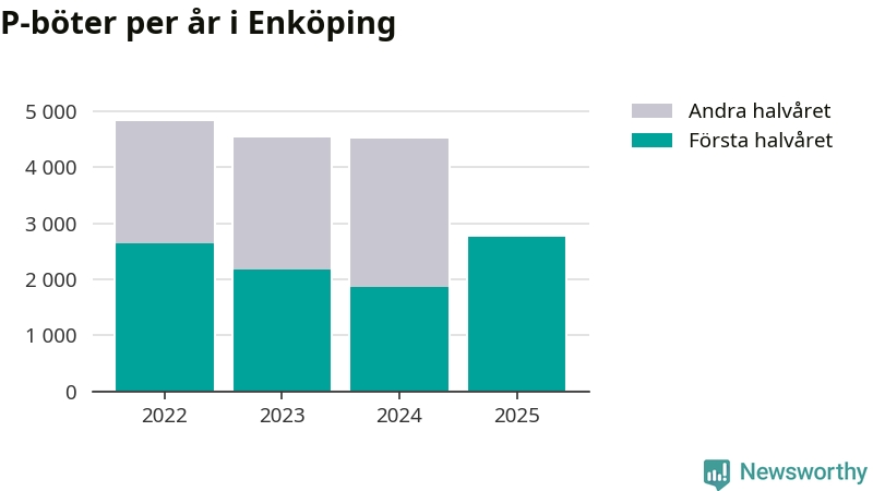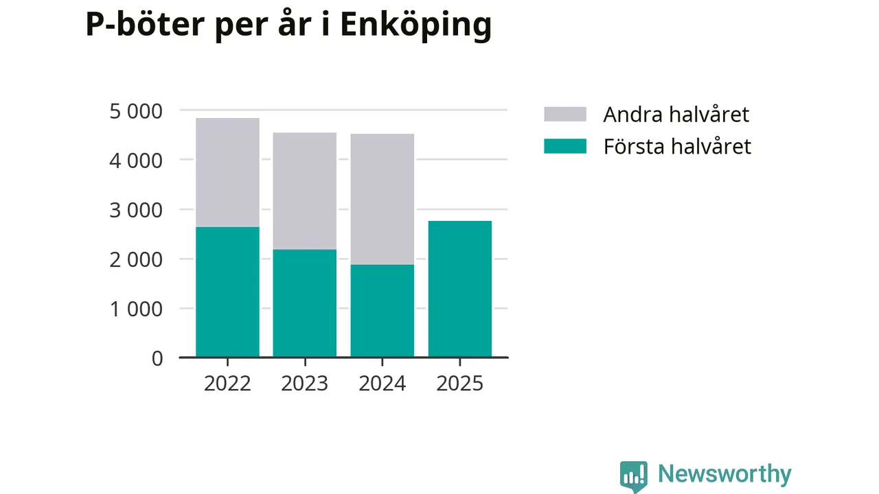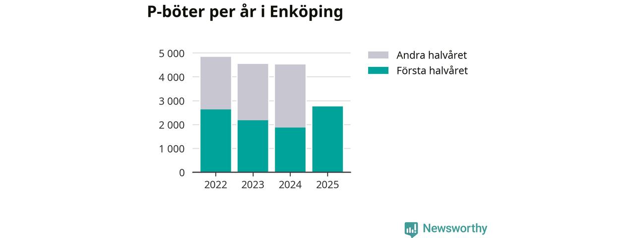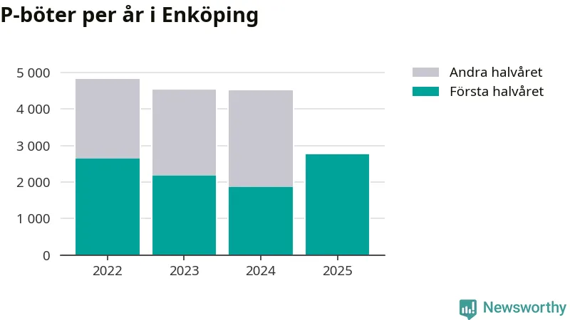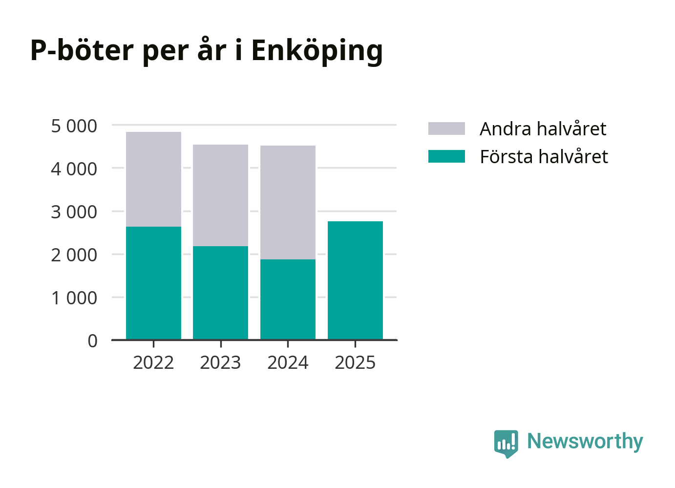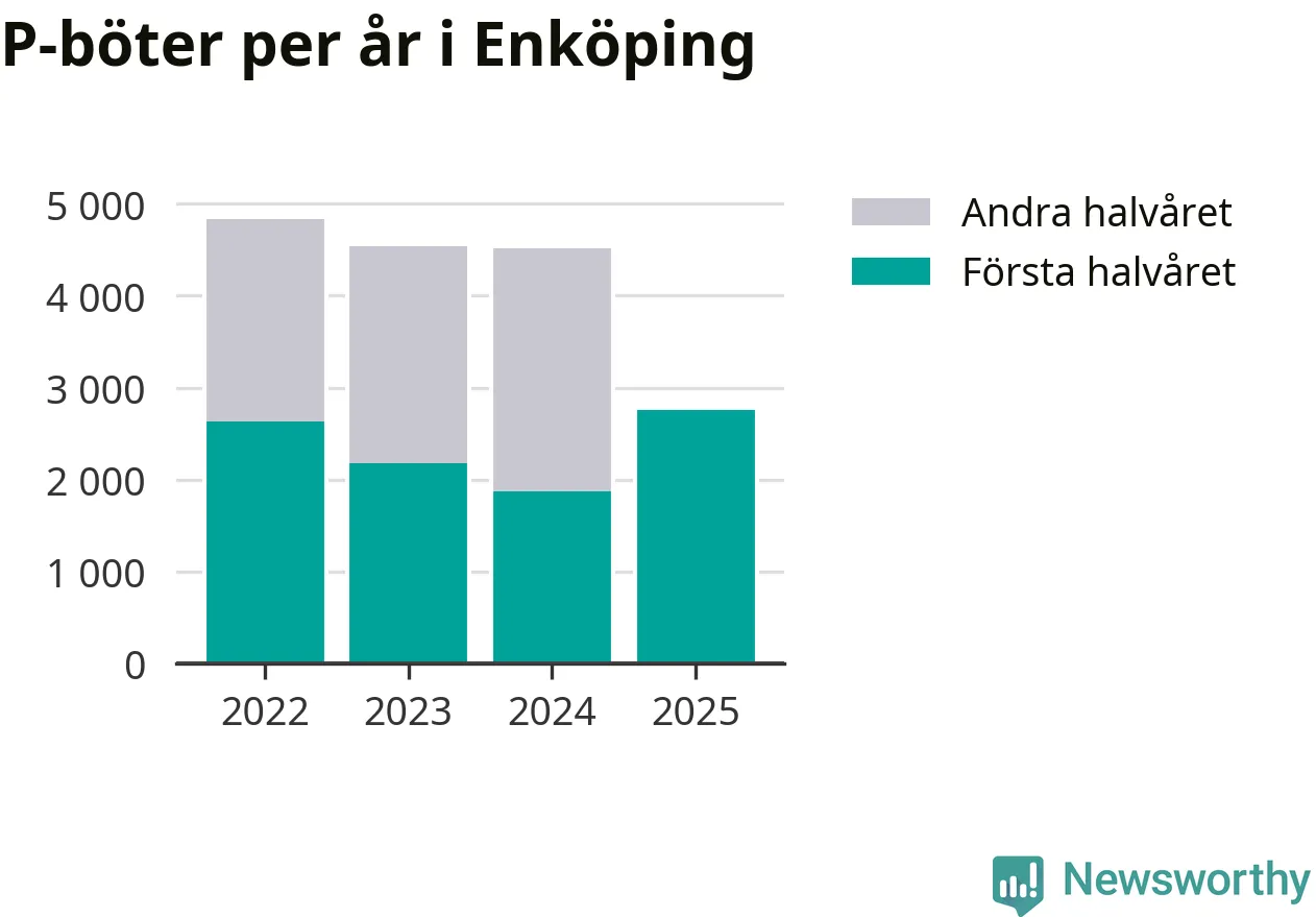 Under första halvåret 2025 har 2 755 parkeringsanmärkningar, med en total felparkeringsavgift på omkring 2,2 miljoner kronor, delats ut på gatumark i Enköpings kommun. Det är 888 fler än under första halvåret 2024.