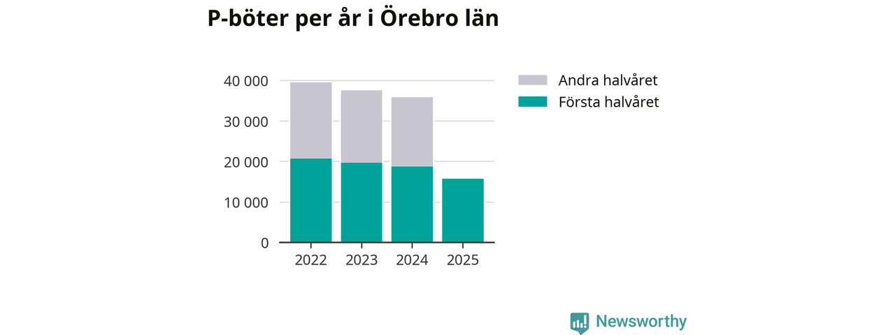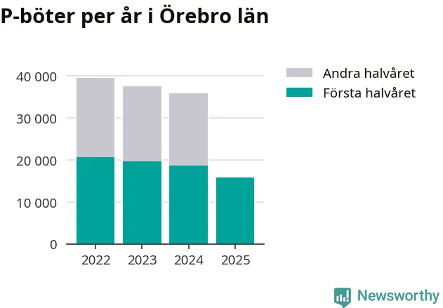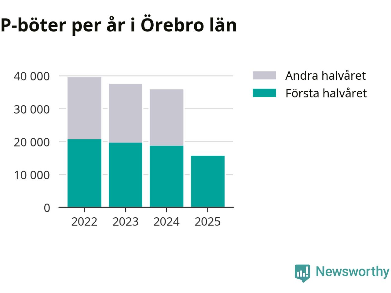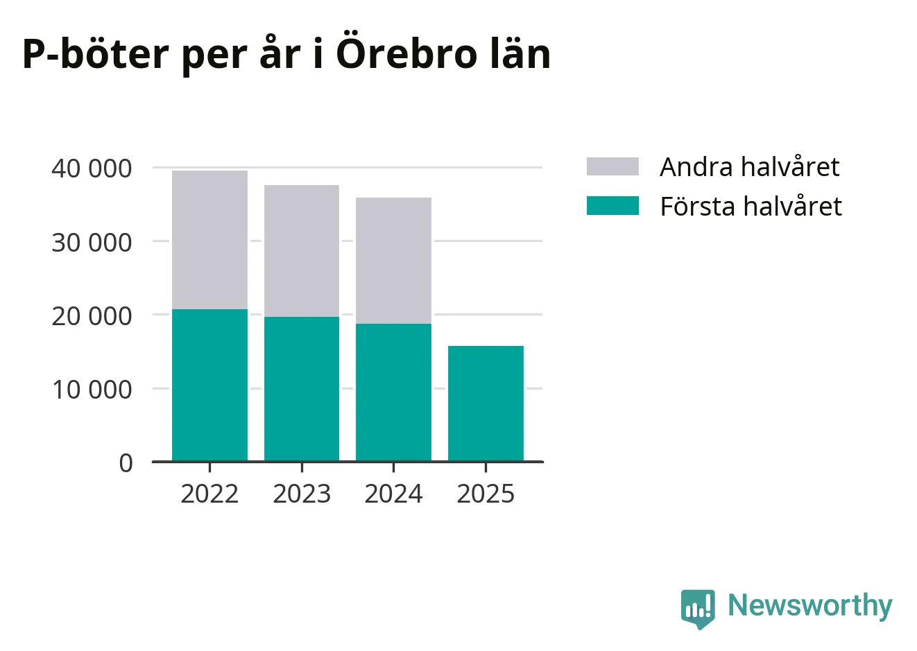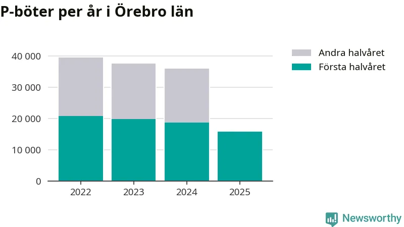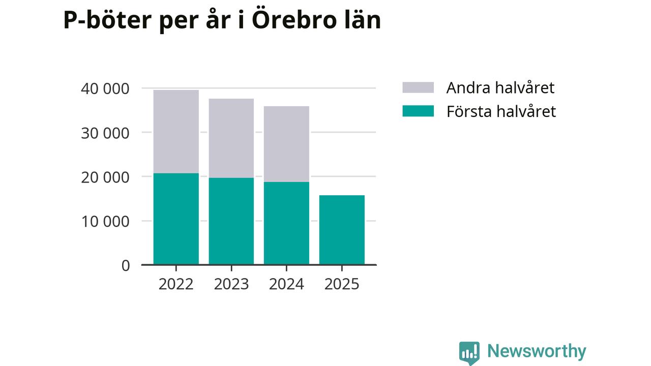 Totalt, från 1 januari 2022 till och med juni 2025, rör det sig om 128 625 parkeringsförsyndelser med ett totalt bötesbelopp på omkring 103,4 miljoner kronor i länet, visar Newsworthys genomgång av kommunernas parkeringsanmärkningar i Transportstyrelsens databas. Flest parkeringsanmärkningar i Örebro län har delats ut i Örebro kommun under de senaste tre och ett halvt åren.